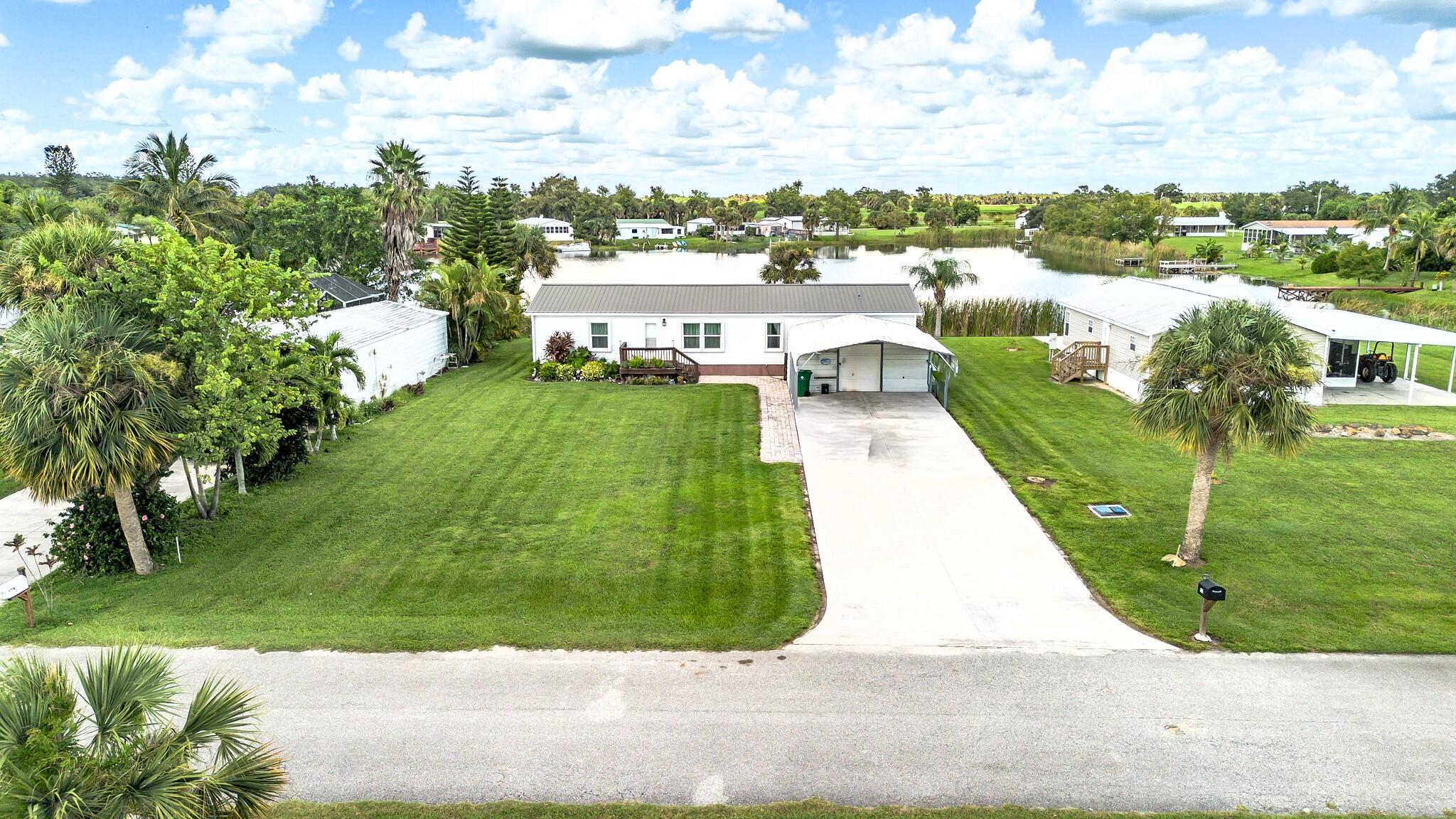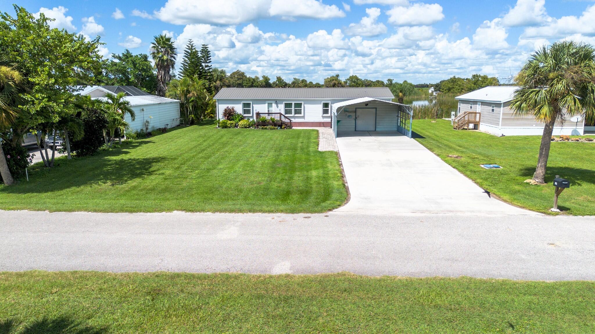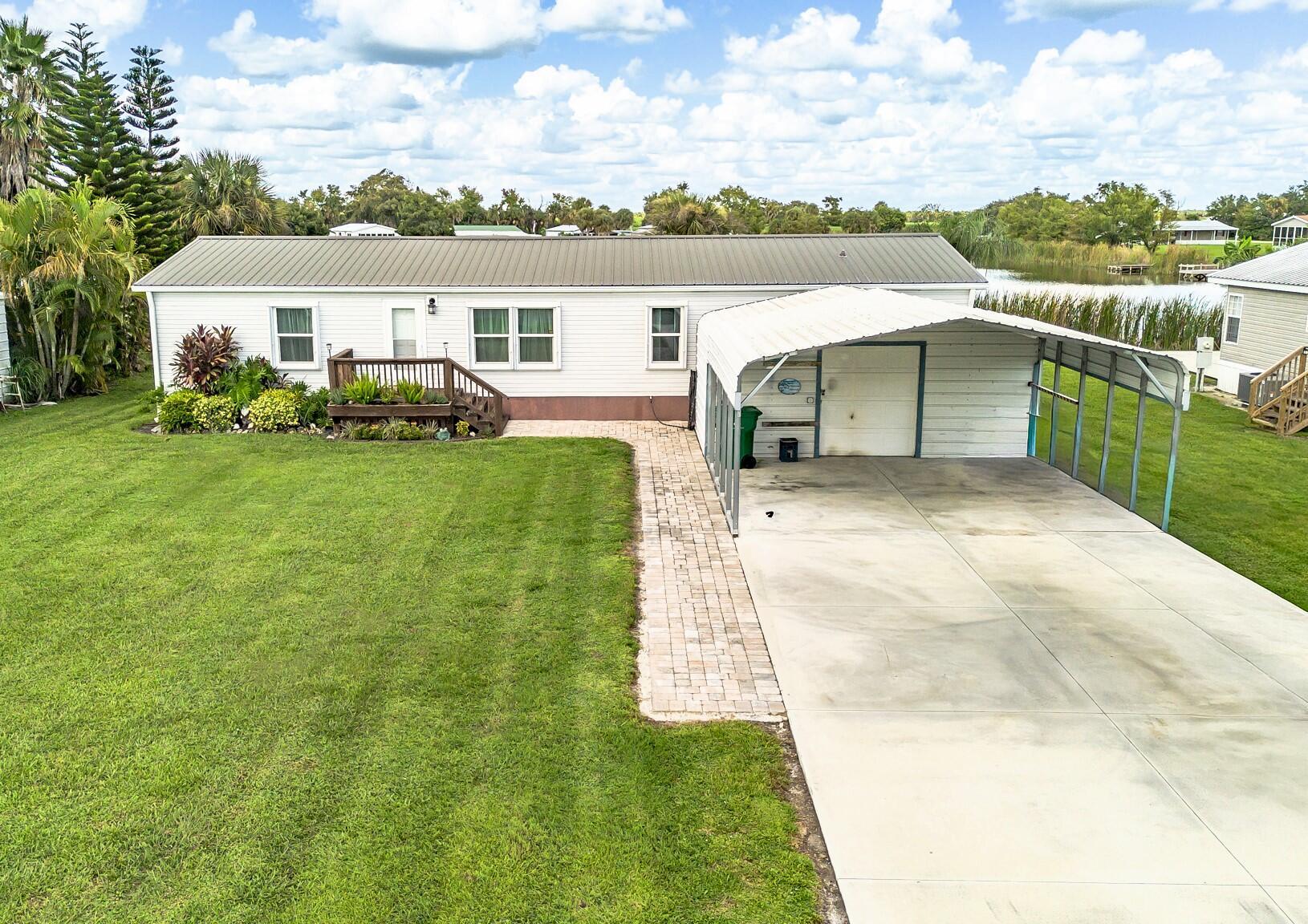 LAKEPORT - 1999 Homes of Merit 3 bd 2 ba DWMH w/1620 sf under air and a total of 1,692 sf. Spacious living room leads to family room w/fireplace overlooking the 16' x 24' deck and Lake Miller; a perfect setting for views of sunrise & sunsets. Kitchen features island, closet pantry, and newer appliances. Upgrades include Windows w/Accordion Hurricane Shutters and an Impact-rated Sliding Glass Door, Fireplace, Ceiling Fans, and New Flooring. Baths updated with walk-in shower, tub & new hardware. Office/Craft Room. Walk-in Closets. Newer 5 ton AC w/new ductwork. Metal Roof. Irrigation. Wired for generator. Paver walkway & drive. 11'x20' Shed/workshop w/tons of storage. Carport. Close access to Lake Okeechobee boat ramp & Brighton Casino; perfect location for outdoor enthusiasts.