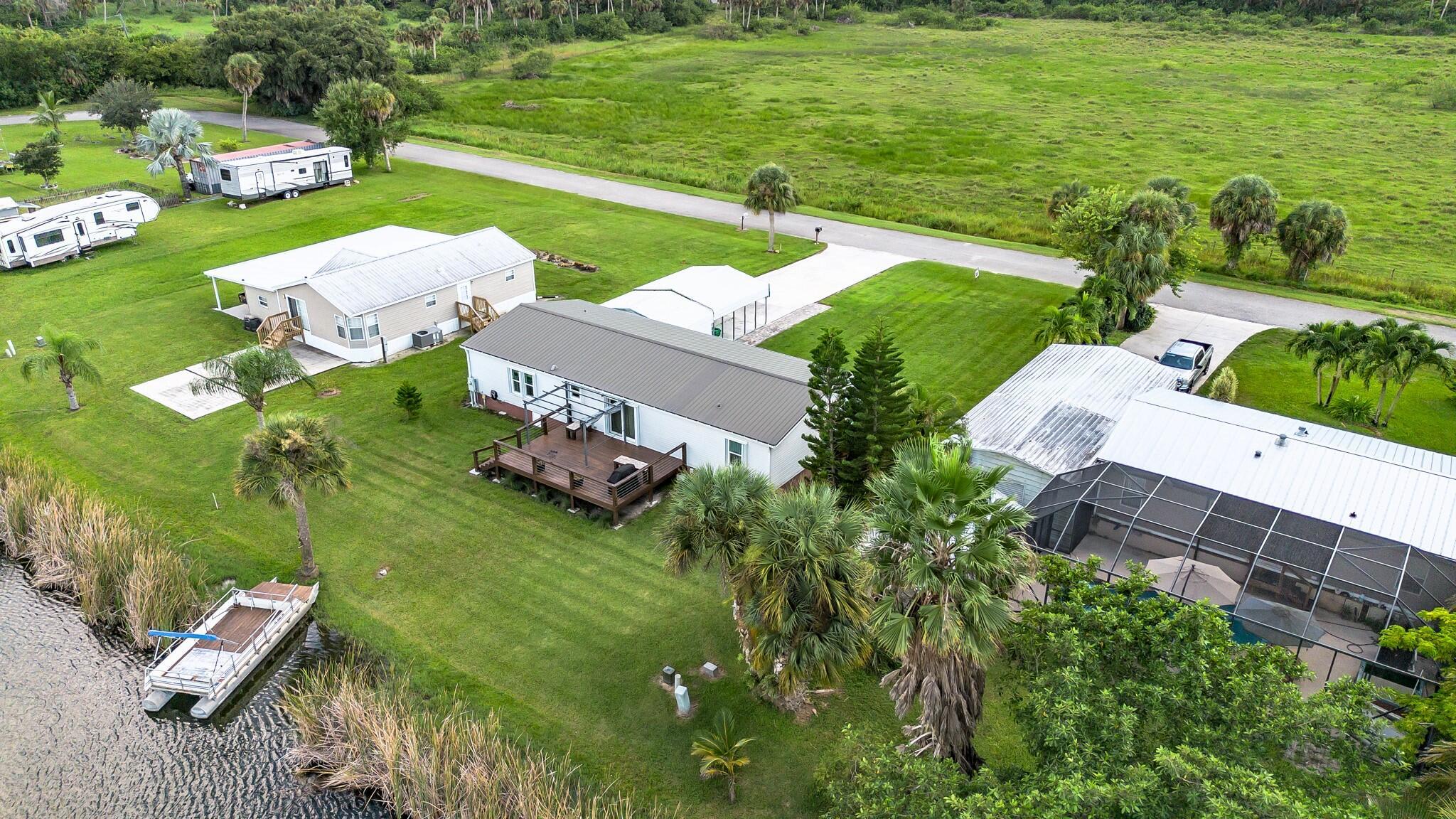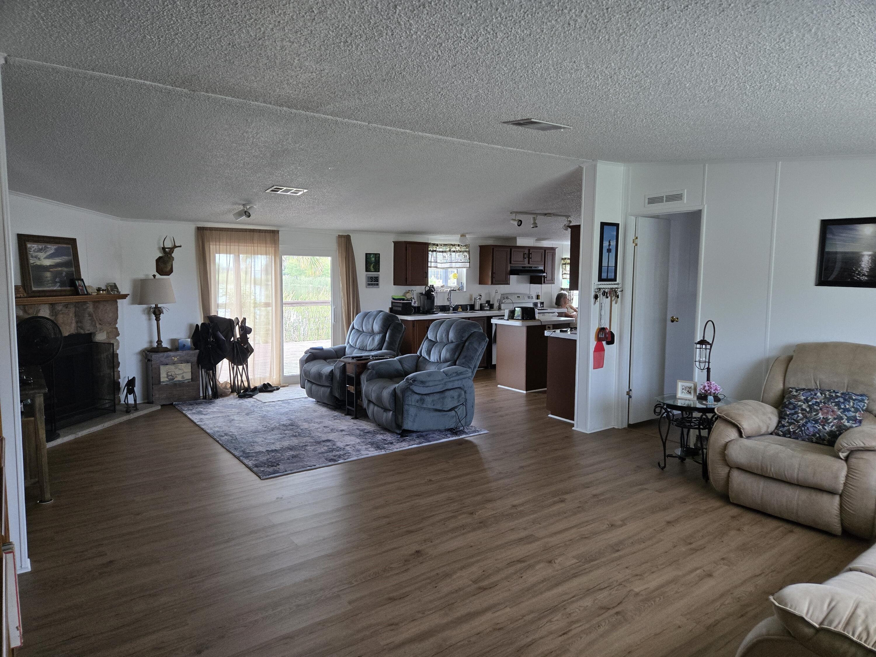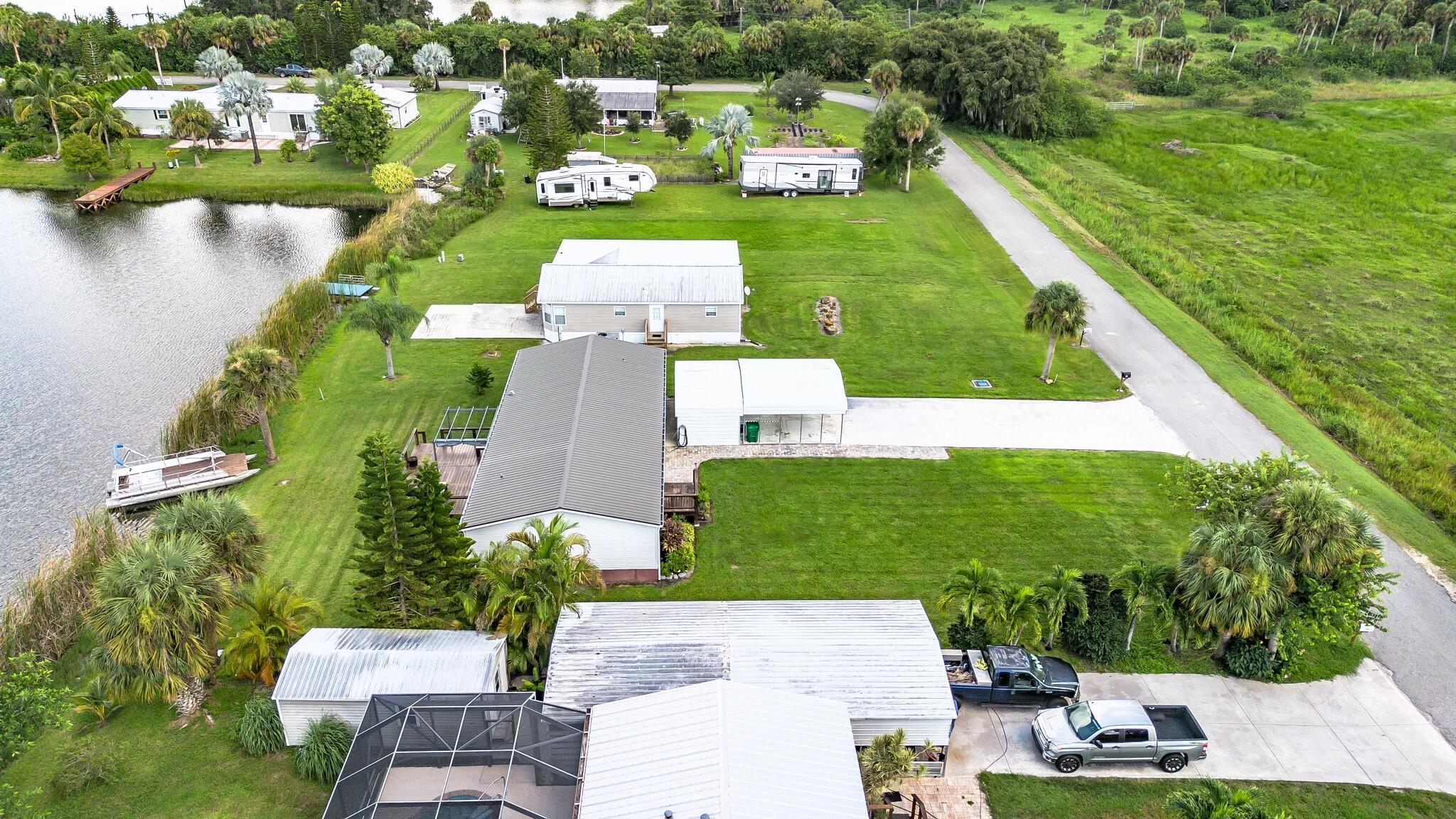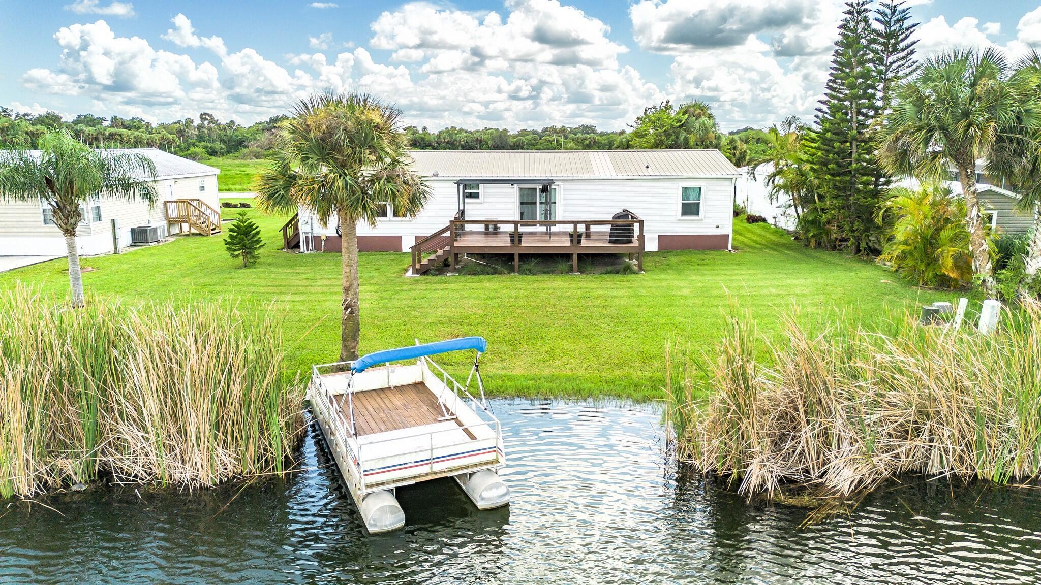 LAKEPORT - 1999 Homes of Merit 3 bd 2 ba DWMH w/1620 sf under air and a total of 1,692 sf. Spacious living room leads to family room w/fireplace overlooking the 16' x 24' deck and Lake Miller; a perfect setting for views of sunrise & sunsets. Kitchen features island, closet pantry, and newer appliances. Upgrades include Windows w/Accordion Hurricane Shutters and an Impact-rated Sliding Glass Door, Fireplace, Ceiling Fans, and New Flooring. Baths updated with walk-in shower, tub & new hardware. Office/Craft Room. Walk-in Closets. Newer 5 ton AC w/new ductwork. Metal Roof. Irrigation. Wired for generator. Paver walkway & drive. 11'x20' Shed/workshop w/tons of storage. Carport. Close access to Lake Okeechobee boat ramp & Brighton Casino; perfect location for outdoor enthusiasts.