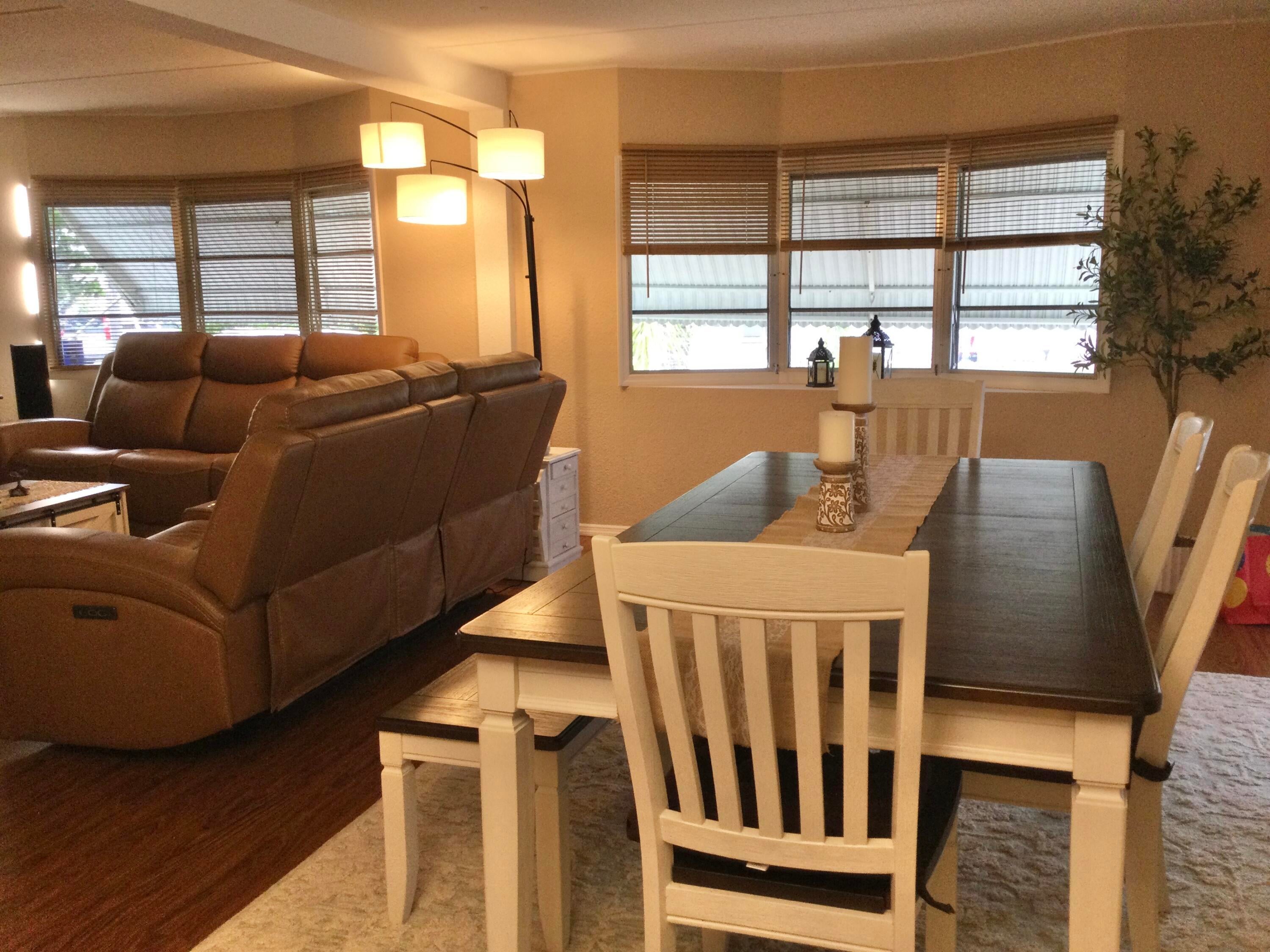 This meticulously maintained and rare three bedroom, with office, home is situated on a well maintained lot and awaits your own personal touch. Lot rent covers all amenities, taxes, lawn care and trash removal. Amenities include golf, two pools (one heated), tennis, pickleball, shuffleboard, bocce, horse shoes, billiards, game room, library, exercise room, party room, clubhouse and much much more. Join a club, sign up for a trip or just relax by the pool. Future residents must be approved by Spanish Lakes. Please call for application.