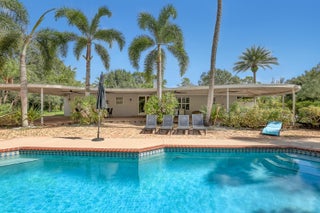 Must see Wellington Estate on over 5 acres, perfect blend of luxury, privacy & resort-style seasonal living. Just minutes from equestrian showgrounds & polo fields. Main house offers 5 bdrms, 3.5 baths, chef-inspired kitchen, brick fireplace & primary suite overlooking heated resort-style pool. Private guest house features 2 bdrms, 1 bath, spacious living area & game room. Outdoor spaces include a large covered patio, tiki hut (w/ electric), Chicago brick pavers, tranquil pond with fountain, gazebo & dock for sunset relaxation, bocce and basketball courts. Fully fenced with electric gate, impact windows, propane generator & 2 covered parking areas--fully equipped for a seamless, luxury seasonal experience. Welcome to Your Home Away from Home!