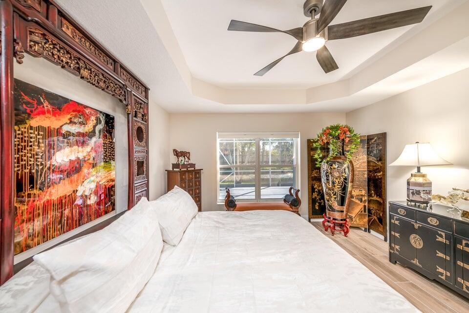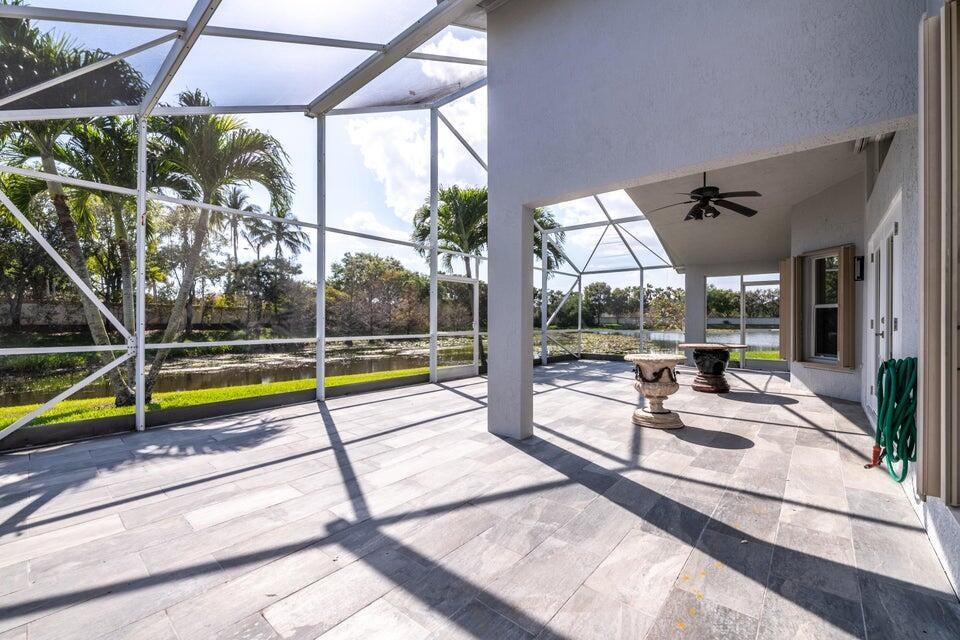 Charming lakefront three-bedroom two bath house in beautiful Bellaggio. The house has been tastefully remodeled with upgraded appliances, custom blinds, and 12-foot ceilings.3 ft. wide doors throughout the house to make it handicap and wheelchair accessible.Enjoy the safety of the custom double impact glass doors in the front and back. along with the easy built in hurricane shutters. Use the third bedroom for a guest room, office, or den with its built-in safe closet, and desk.Entertain on your beautiful screened in lanai overlooking the lake.Bellagio has first class amenities, offering indoor, outdoor pools, sauna, cafe, shows and more. Make new friends at all the classes they offer. Enjoy this country club lifestyle at your new home