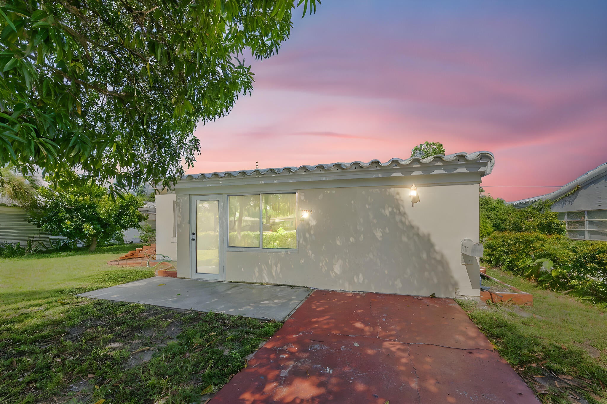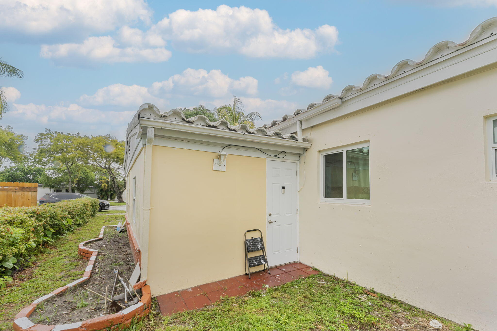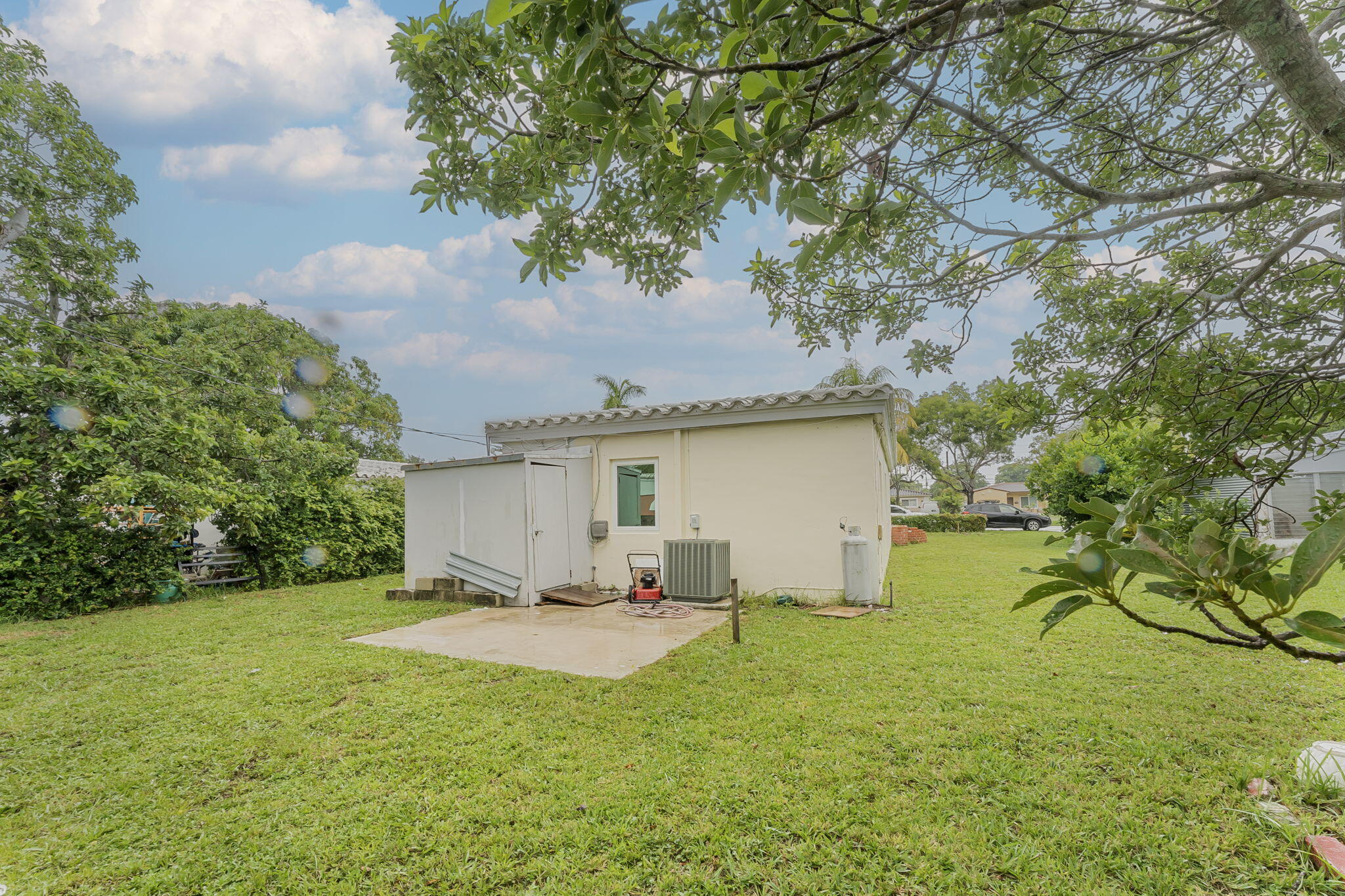 Welcome to this charming 3 bed, 1 bath single family home. Features include newly installed IMPACT windows for peace of mind. Top to bottom renovated bathroom, Tile floors throughout and a tankless water heater. Lots of storage provided with walk in closets, outside shed, & inside large enclosed storage room, plus bonus entry room. Enjoy the added convenience of an inside laundry room and spacious backyard with mango, avocado, plum, cashew and coconut trees. Ideally located close to shopping, dining, major highways and the beach. This home combines comfort, convenience, and value in one great package. This home qualifies for a grant with PNC bank up to 10k plus 1% of the purchase price that can be used towards closing costs, rate buy down, etc.
