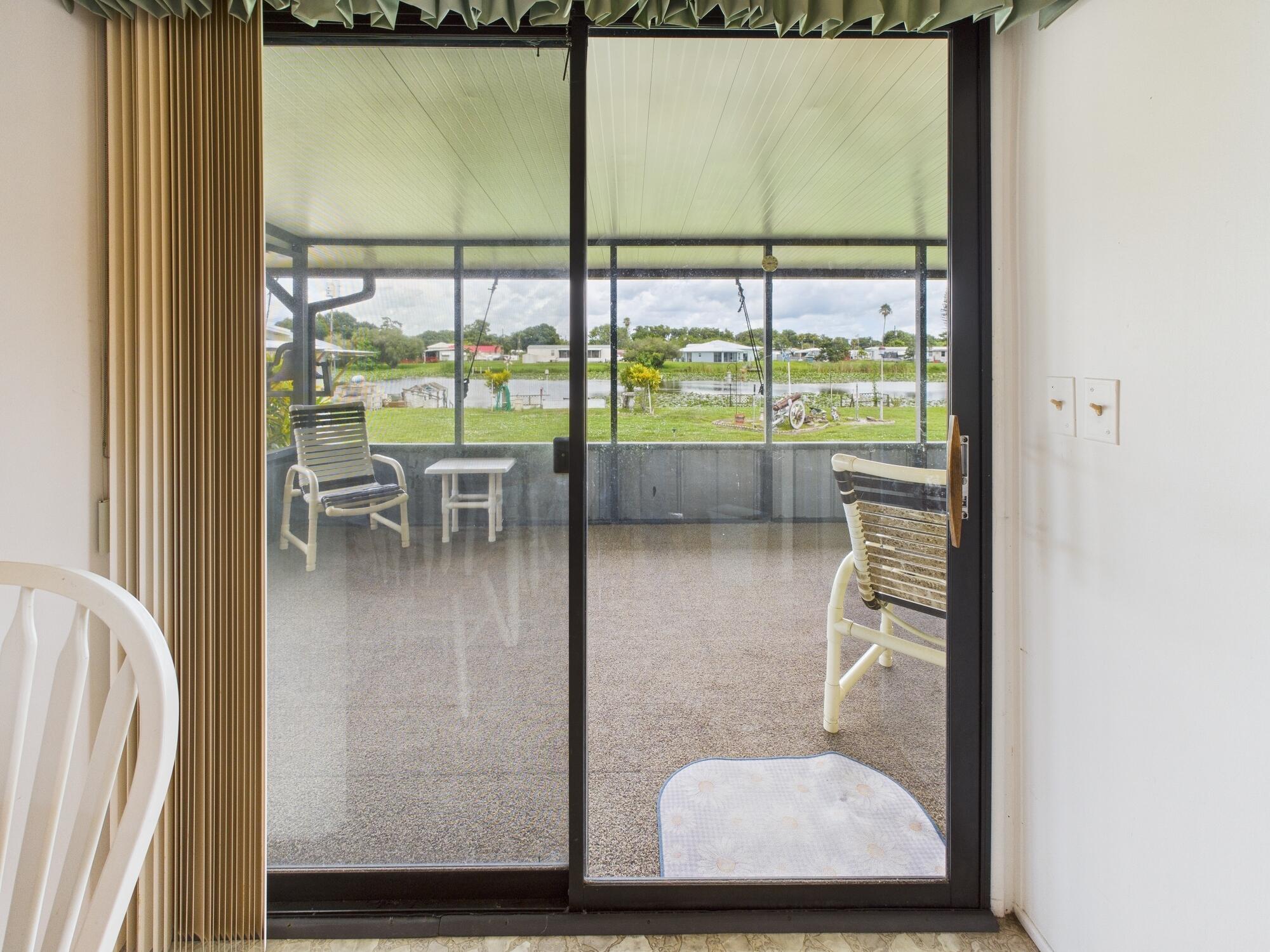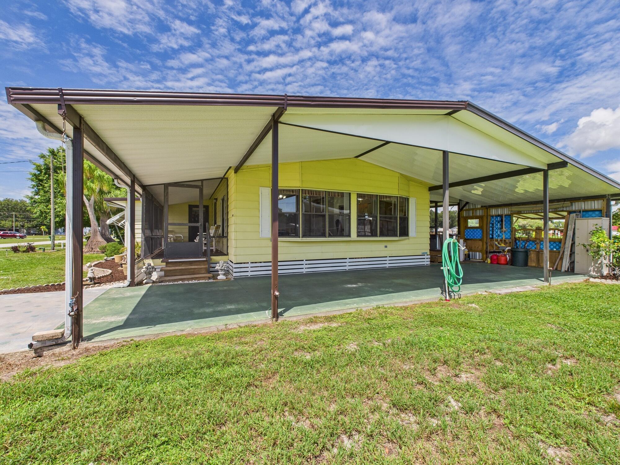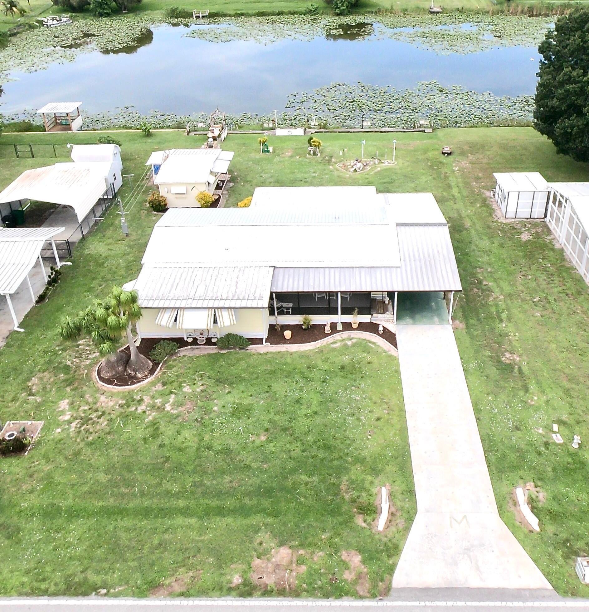 This spacious 2BD/2BA double-wide offers a mother-in-law suite/second master in the front addition and sits on a 15-acre pond with the same water as Lake Okeechobee--perfect for fishing, paddle boating, and relaxing by the picturesque wooden seawall. Inside, enjoy an open layout with a second living area off the guest room. Outside features include a screened front porch, huge screened back porch, full carport, two sheds/workshops, city water/sewer, and no HOA. Peaceful waterfront living just minutes from town!