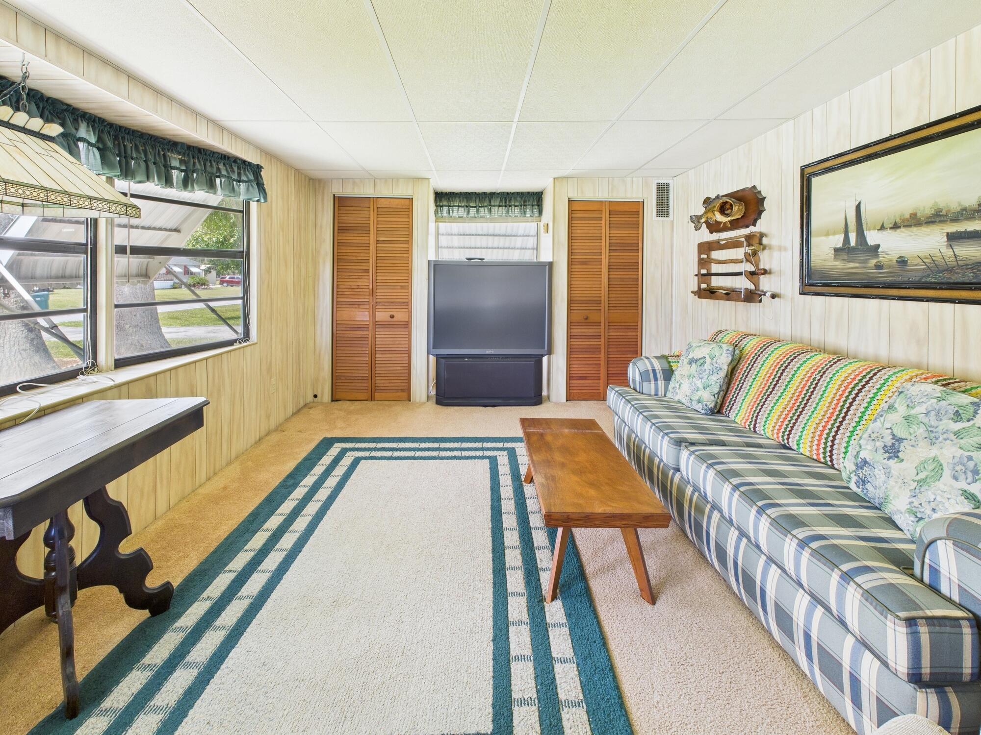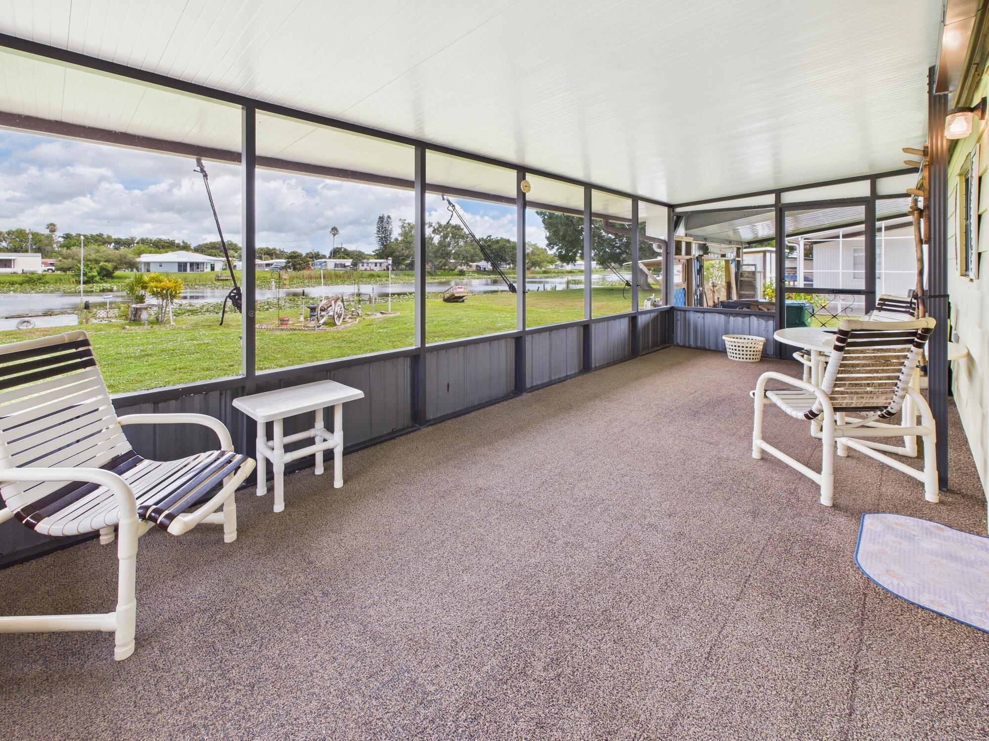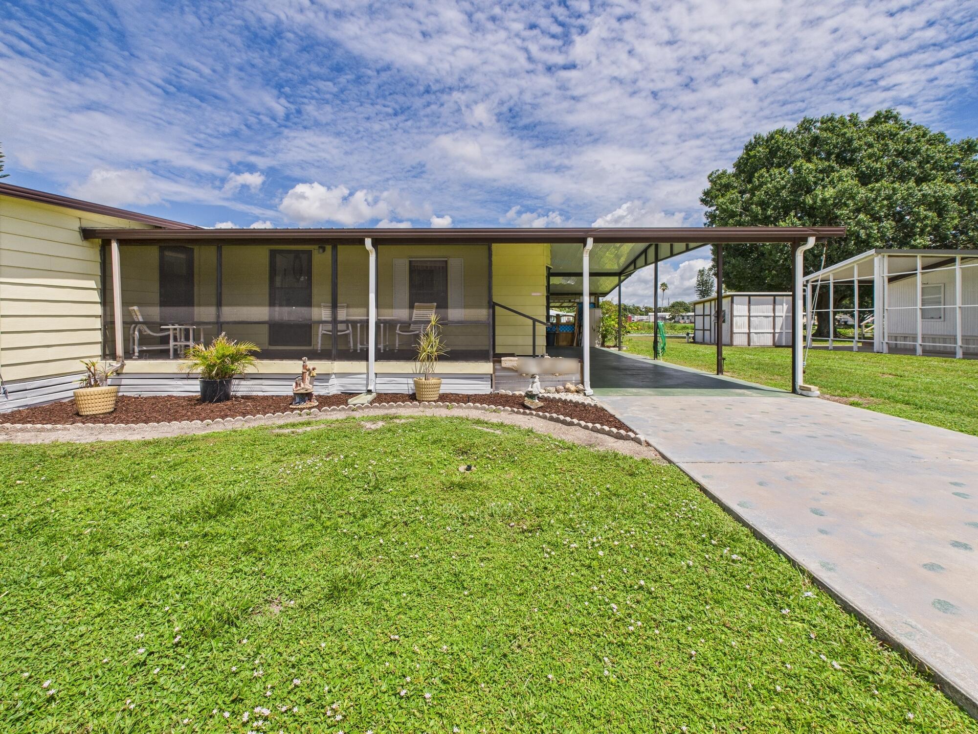 This spacious 2BD/2BA double-wide offers a mother-in-law suite/second master in the front addition and sits on a 15-acre pond with the same water as Lake Okeechobee--perfect for fishing, paddle boating, and relaxing by the picturesque wooden seawall. Inside, enjoy an open layout with a second living area off the guest room. Outside features include a screened front porch, huge screened back porch, full carport, two sheds/workshops, city water/sewer, and no HOA. Peaceful waterfront living just minutes from town!