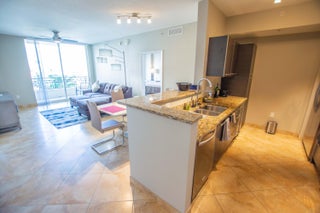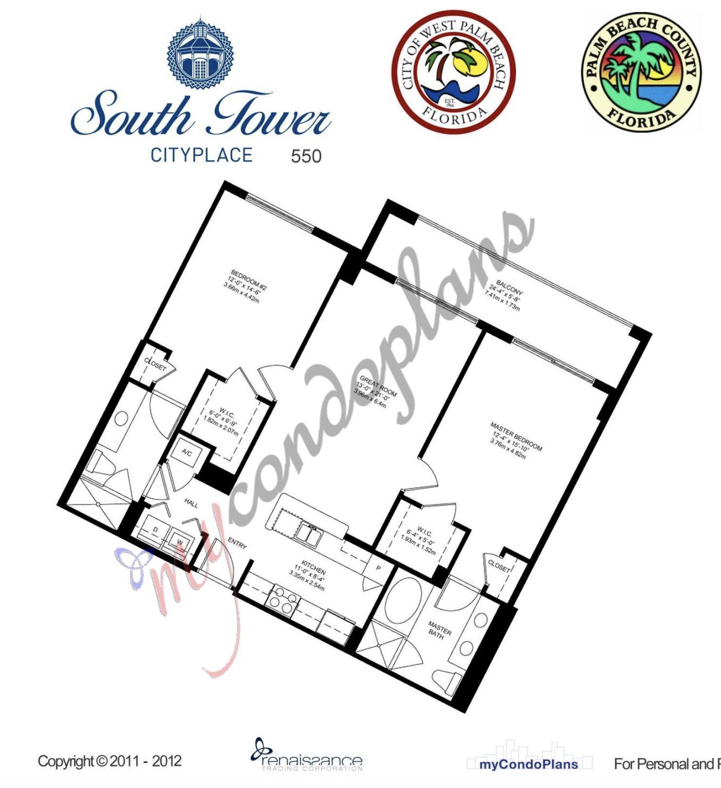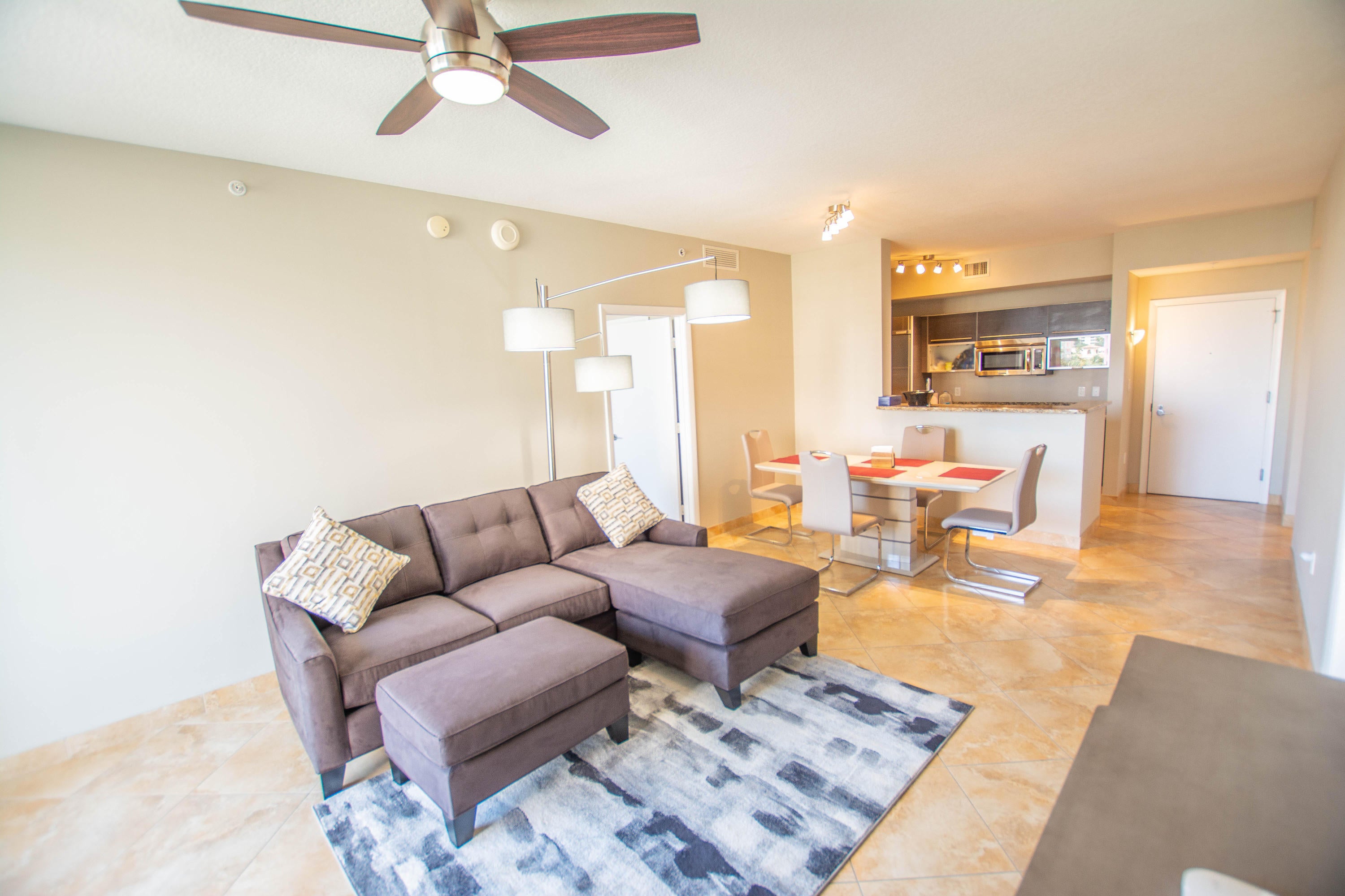 Nicely furnished 2-bedroom, 2-bath condo with tile floors throughout, located on the 5th floor of a full-service building. Enjoy city views toward the Restoration Hardware building, a desirable split-bedroom layout, and spacious walk-in closets in both bedrooms. The building offers outstanding amenities, including a stunning pool deck on the 9th floor. One conveniently located parking space is included on the same level as the unit. Just a short walk to The Square (CityPlace) and Clematis Street with their vibrant restaurants and shops, and only minutes from Palm Beach and the Atlantic Ocean. Available seasonally from November through May at $7,000 per month. It is also available annually.