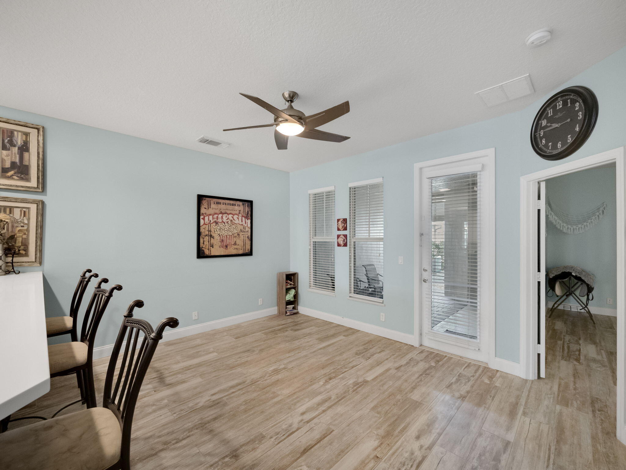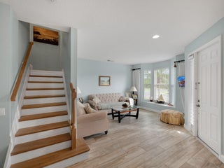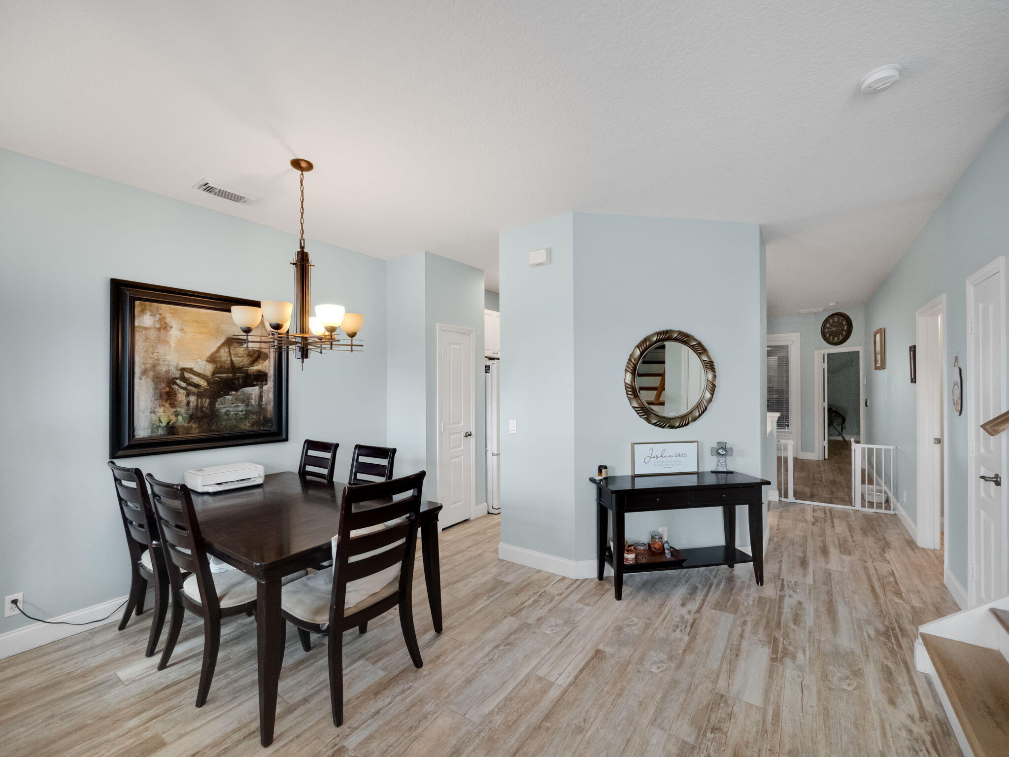 Beautifully maintained 3-bedroom, 2.5-bathroom townhome in the sought-after community of Bedford Park at Tradition. This home offers a spacious, thoughtfully designed floor plan that blends comfort and style. Step inside to find elegant 8'' x 48'' Mediterranea Boardwalk - Myrtle Beach porcelain plank tile flooring throughout, lending a sleek and modern feel. The open-concept living and dining areas create the perfect setting for gatherings, while the well-appointed kitchen provides ample cabinetry and counter space for everyday living and entertaining. For peace of mind, the home features impact glass windows in the front and metal shutters in the rear, covering both windows and the entry door for added storm protection.Enjoy the outdoors from the covered lanai, ideal for morning coffee or evening relaxation. The Bedford Park HOA covers cable, internet, landline phone, alarm monitoring, lawn care, roof reserves, exterior painting, community pool, clubhouse, and moreoffering true low-maintenance living. Perfectly situated in the heart of Tradition, this home is just minutes from shopping, dining, parks, and walking trails. Experience the best of community living with top-tier amenities in a vibrant and welcoming neighborhood.