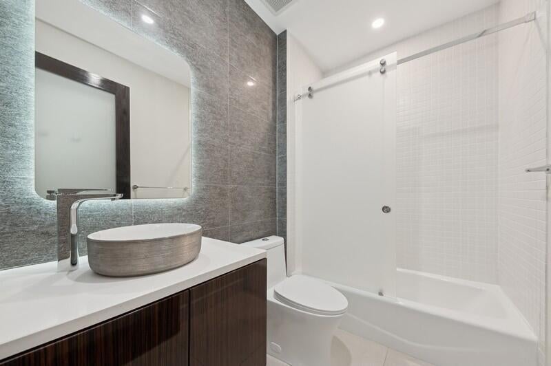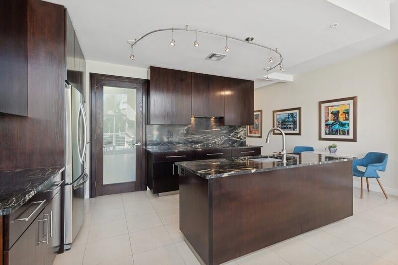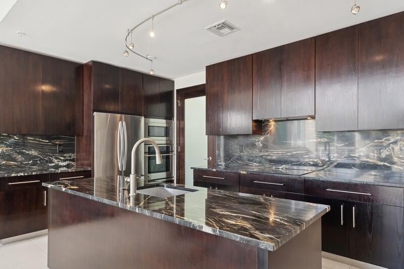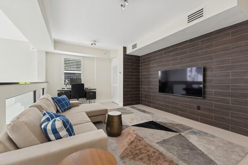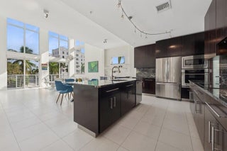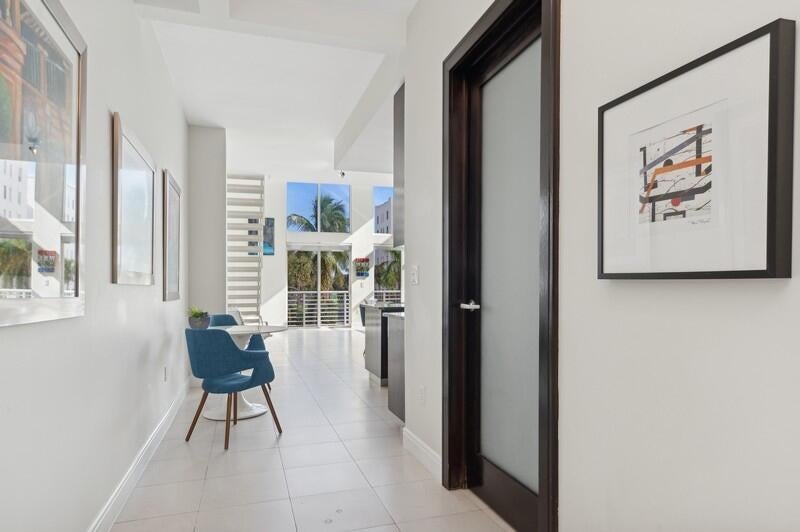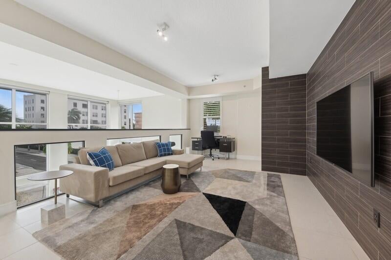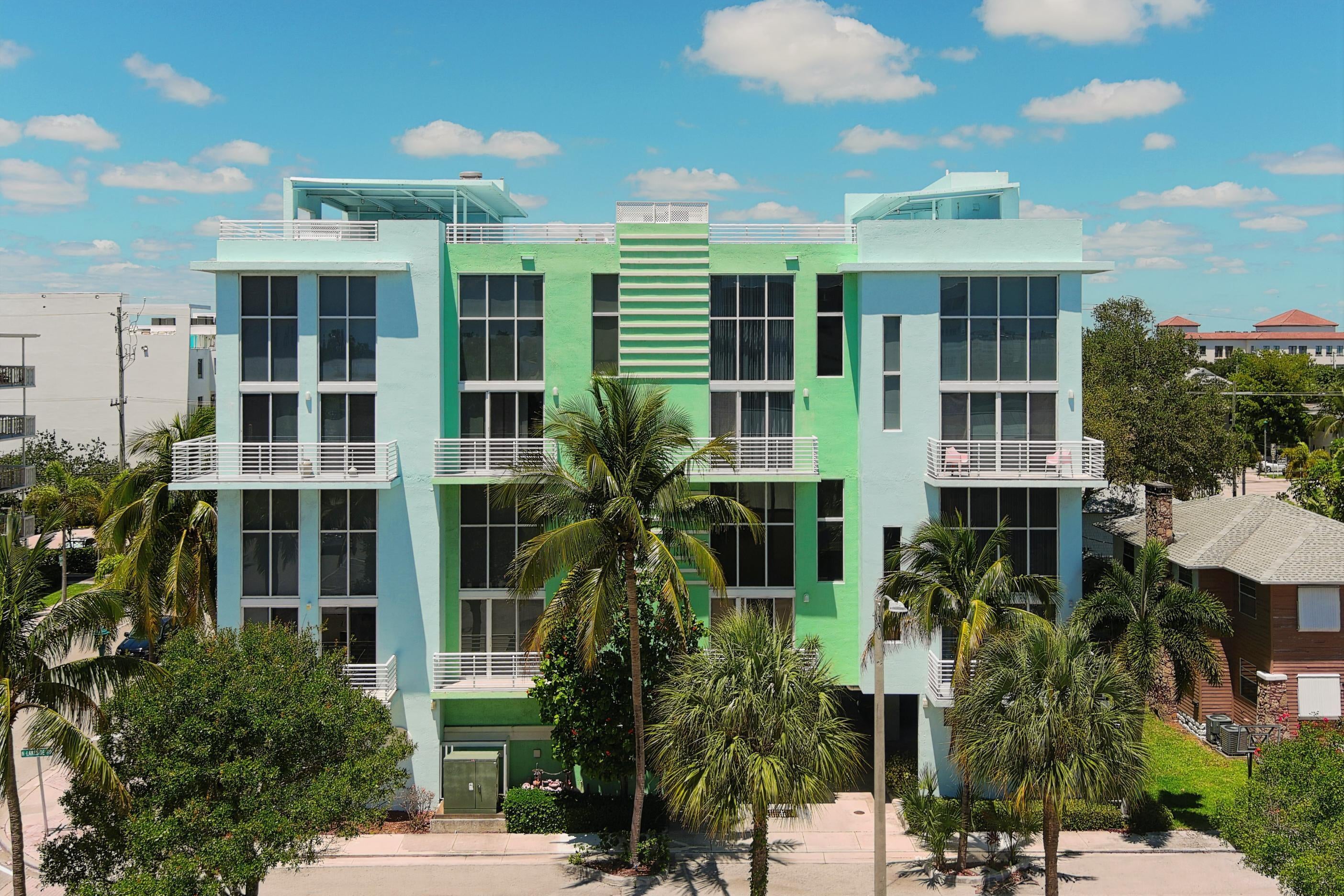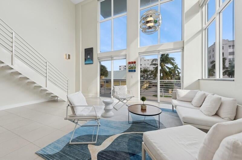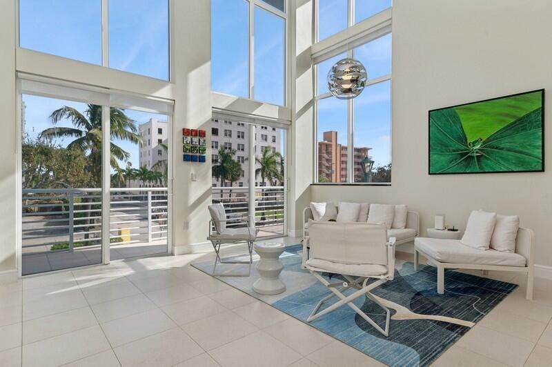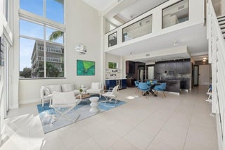 This premier corner unit is situated in one of Lake Worth Beach's most sought-after boutique loft-style residences. The property features an abundance of natural light streaming through 20-foot floor-to-ceiling windows, encompassing over 2,000 square feet of living space with Italian porcelain tile flooring throughout. The custom designed kitchen includes marble countertops, state-of-the-art appliances, and an island breakfast bar. The expansive primary suite offers enhanced closet capacity and a reconfigured walk-in closet optimixed for functionality. An upper-level den/loft provides a private retreat distinct from the primary living areas. Conveniently located within walking distance of Lake Worth's revived Historic Hotel, Bryant Park, LW Municipal Golf Course and the beaches. Residentscan enjoy breathtaking sunrises and sunsets from the rooftop pool and sundeck. Additional amenties include generous storage space and two assigned parking spots.