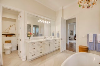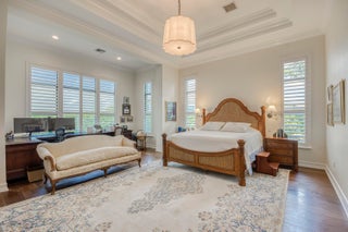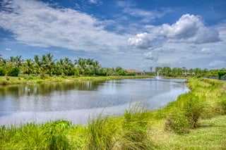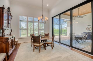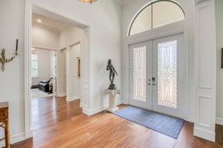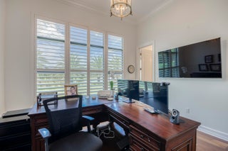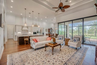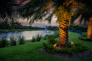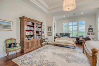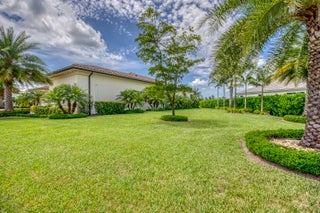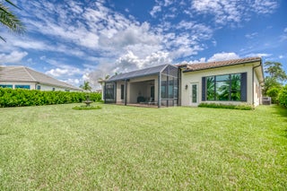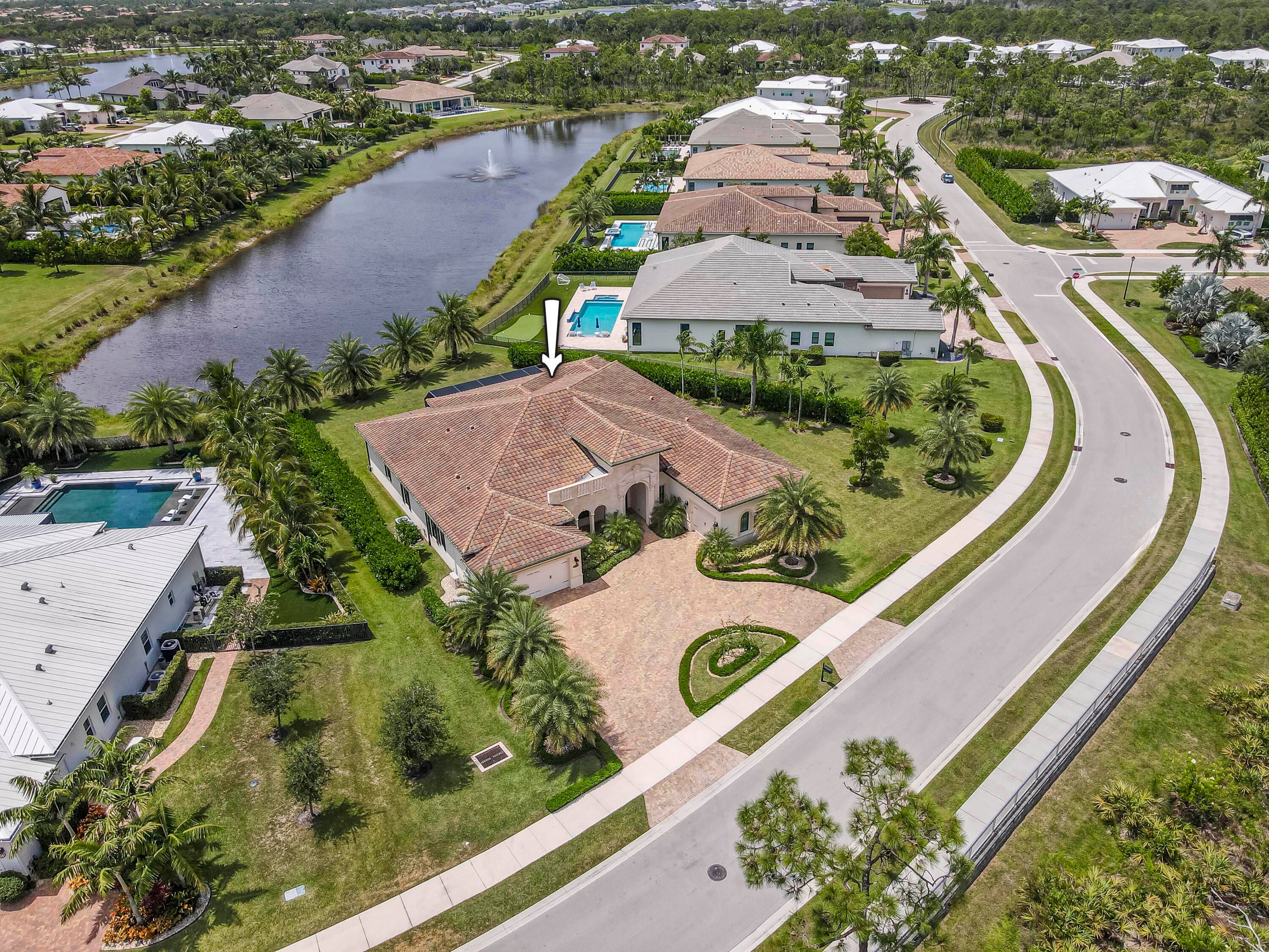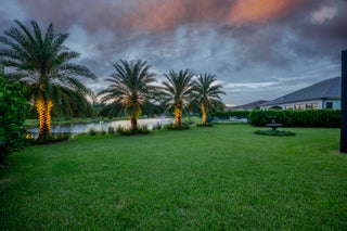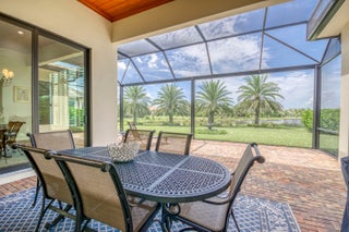 EXQUISITELY APPOINTED one-story Hampton model with breathtaking long lake views in the luxury gated community of Prado is now available! This private retreat is situated on a .53 acre premium homesite and boasts 5 bedrooms + flex room (or 6 bedrooms), 5 1/2 baths, a 3 car garage, horseshoe driveway and 4,317 sf of living area. This ultra private lot offers lovely lake views from the rear and a lush preserve area in the front with no neighbors across the street. Built in 2021, extensive improvements were added after the home was built. Countless interior designer upgrades flow throughout including wide-plank hardwood flooring, solid core doors, plantation shutters, tray ceilings with tongue & groove, crown molding, custom cabinetry, quartz & granite bullnose countertops...and so much more.All custom window trim, door casings, bookcases, ceiling & wall trim work installed by a master carpenter. This home provides all the essentials of easy Florida living with solid CBS construction, impact glass windows & doors, spray foam insulation, Reme Halo HVAC air purification systems, garage mini split AC units + insulation in both garages, a 200kW Briggs & Stratton whole house generator, a 500 gallon in-ground propane tank, whole house water carbon filter + softener system, and reverse osmosis drinking system in the kitchen. Additional smart home systems include a Ring doorbell camera, Eclipse outdoor security cameras, Rain Bird smart irrigation controller system, and automated landscape lighting. Extensive landscaping upgrades include 12 majestic Sylvester Palms with custom uplighting. The well-designed split floor plan includes 4 spacious guest bedrooms each appointed with en-suite baths and walk-in closets; a formal dining room which can be converted into a den/office; a light-filled great room open to the kitchen; and a flex room/den which could be a 6th bedroom. The kitchen is the heart of the home and features a large center island with bullnose quartz countertops, soft-close solid wood cabinetry, SubZero & Wolf appliances, dual wall ovens, custom vent hood, 5 burner gas cooktop, a butler's pantry, and a walk-in pantry to die for! Rest peacefully in the sizeable primary suite offering an extended alcove which could be used as a reading nook or office space. The stunning lake views can be enjoyed through the plantation shutters. Luxuriate in the spa-like primary bath with a large freestanding soaking tub, dual vanities with vessel sinks & bullnose quartz countertops, custom framed mirrors, stylish light fixtures, a large walk-in shower with triple shower heads and a separate private water closet. Gather in the great room which offers serene water views, volume tray ceilings and a custom-built beverage station featuring a dual-temp wine refrigerator & wine glass storage. From the great room, connect with the outdoors when the zero corner stacking impact sliding doors are open. Relish the Florida lifestyle in this backyard outdoor oasis which offers a large covered patio with tongue & groove ceiling and a volume Mansard roof screen enclosure with 2 clear view panels with no obstruction of the water views (upgraded to no-see-um mesh screens). Prado is a luxury gated community featuring large private lots just minutes away from I-95 & the Florida Turnpike. Perfect for homeowners seeking some elbow room, privacy, security, a great locale, and low HOA fees. Within close proximity to various parks, activities, fabulous restaurants, shopping, beaches, and so much more. Live your best life here!