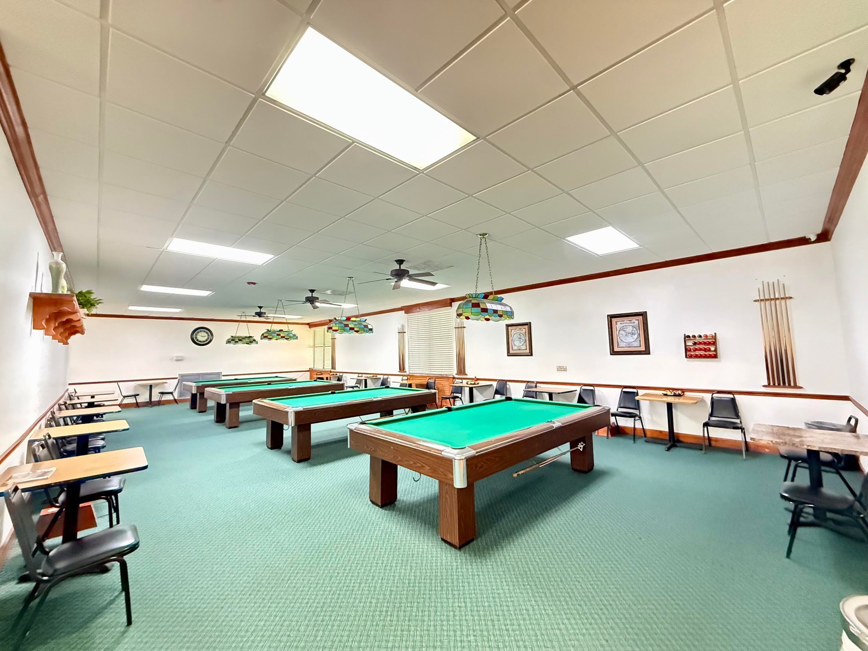 Billiards, Clubhouse, Community Room, Exercise Room, Game Room, Library, Manager on Site, Pool, Shuffleboard, Golf Course, Tennis, Pickleball, Bocce Ball