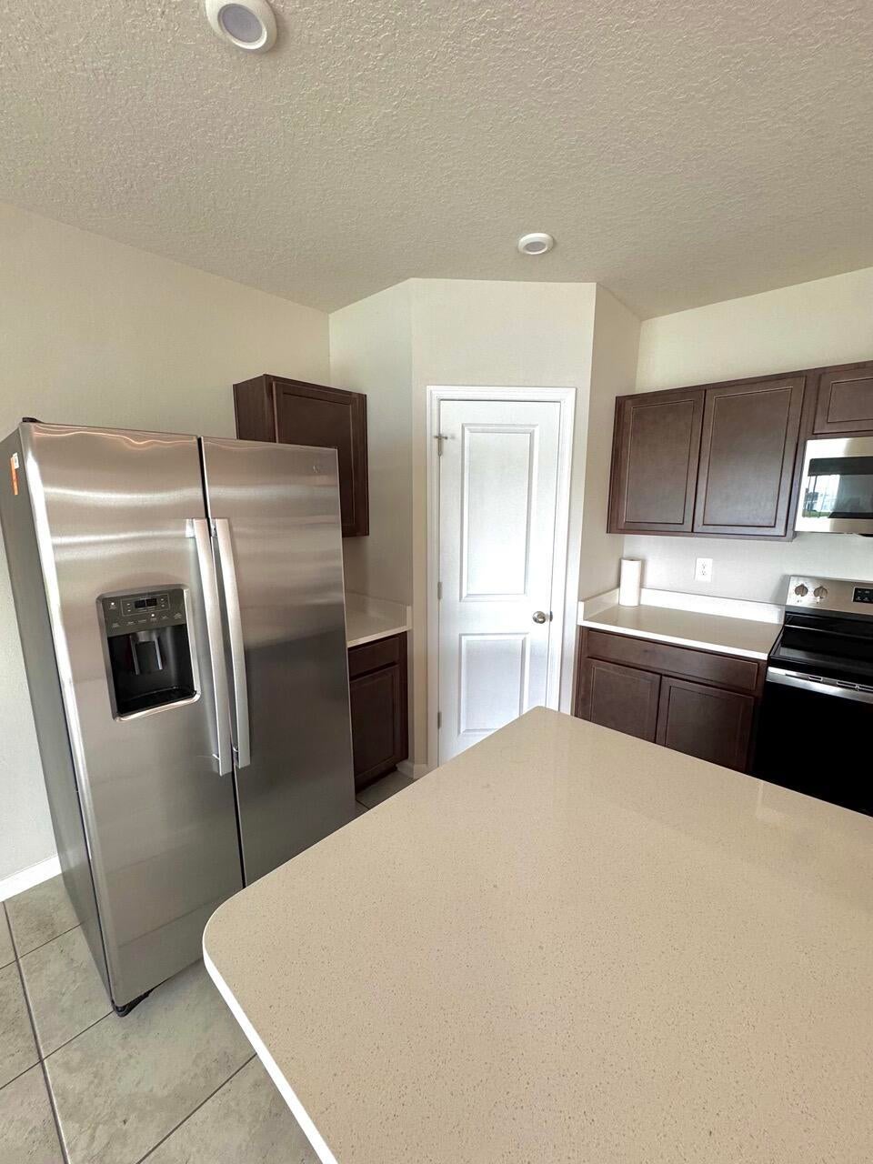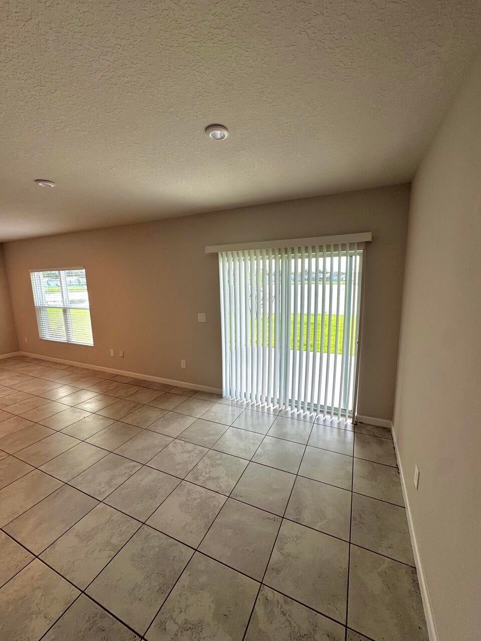 Brand-new 4-bedroom, 2-bathroom lakefront home offers modern living in a convenient location. The bright and open floor plan features tile flooring throughout the main living areas, with carpet in the bedrooms. The kitchen includes a large island with an eat-at bar, stainless steel appliances, and a pantry. The spacious living and dining areas lead to a covered patio overlooking the lake. There is also a 2-car garage for parking and storage. Conveniently located near I-95 and the Turnpike, this home is just 15 minutes from downtown Fort Pierce and the beaches, with shopping, dining, and entertainment nearby. Available for immediate occupancy. First month rent and security required. *rental/ background screening required*