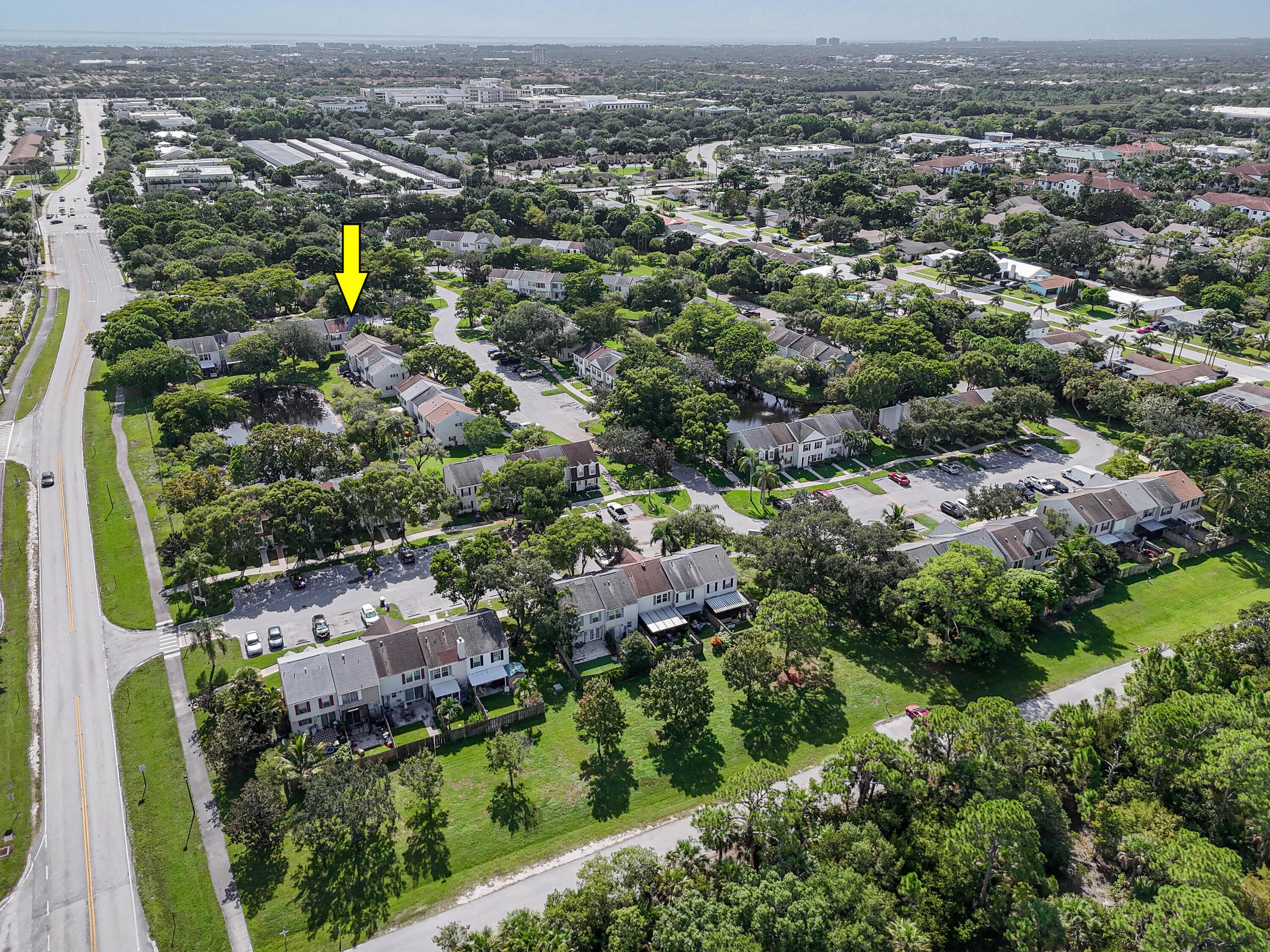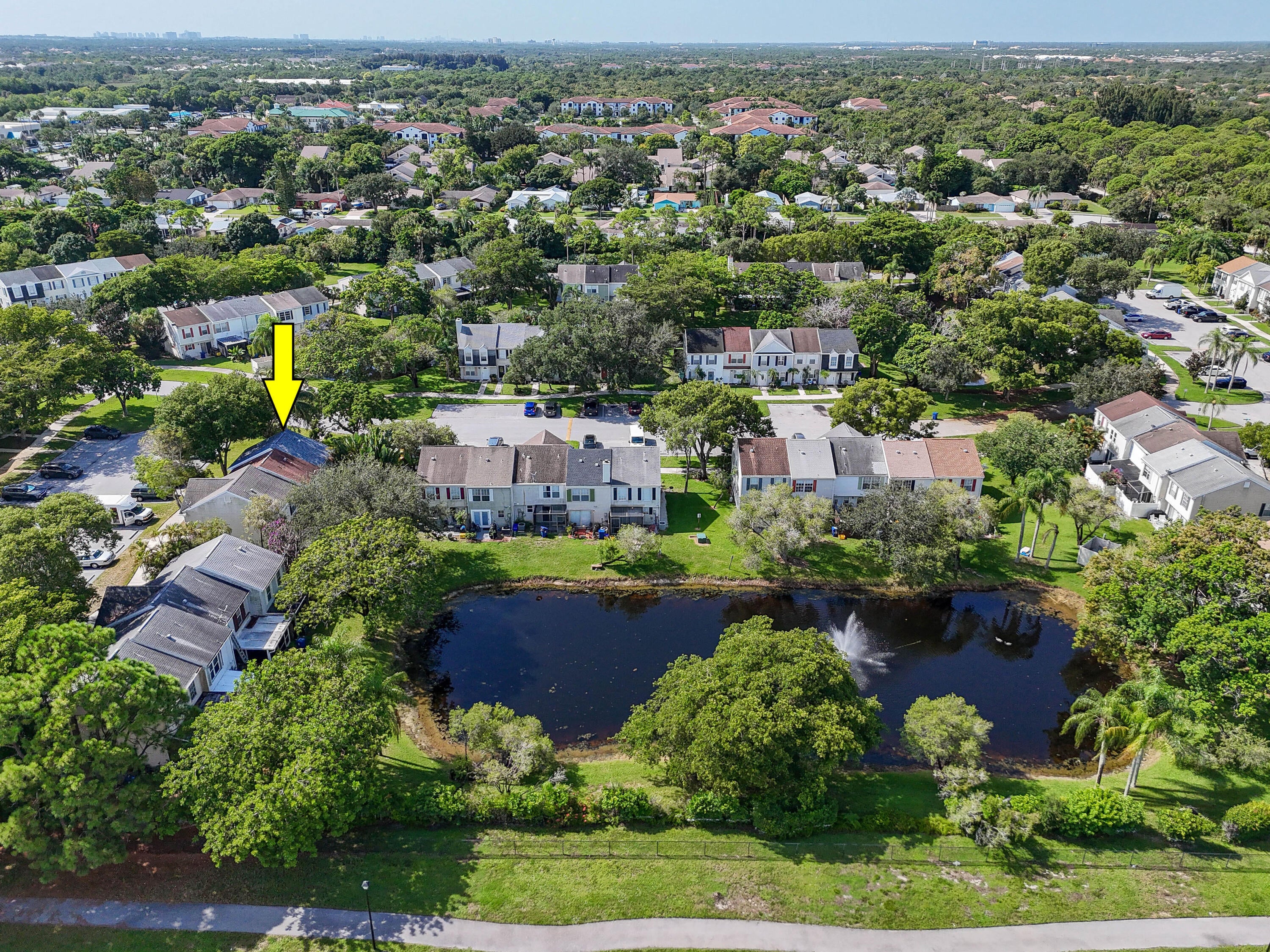 Fantastic opportunity to own a 2 bedroom, 2 bath end-unit townhome with a private fenced-in patio and views of the fountain pond. This home features a new roof (2023), complete with hurricane protection offering a solid foundation for your updates and personal touches! Located close to top-rated Jupiter schools, beautiful beaches, I-95, PBI Airport, entertainment, and dining, this property combines convenience with great potential. With its desirable end-unit location, private setting, and room to renovate, and LOW HOA fees, it's the perfect chance to create your dream home right in the Heart of Jupiter!