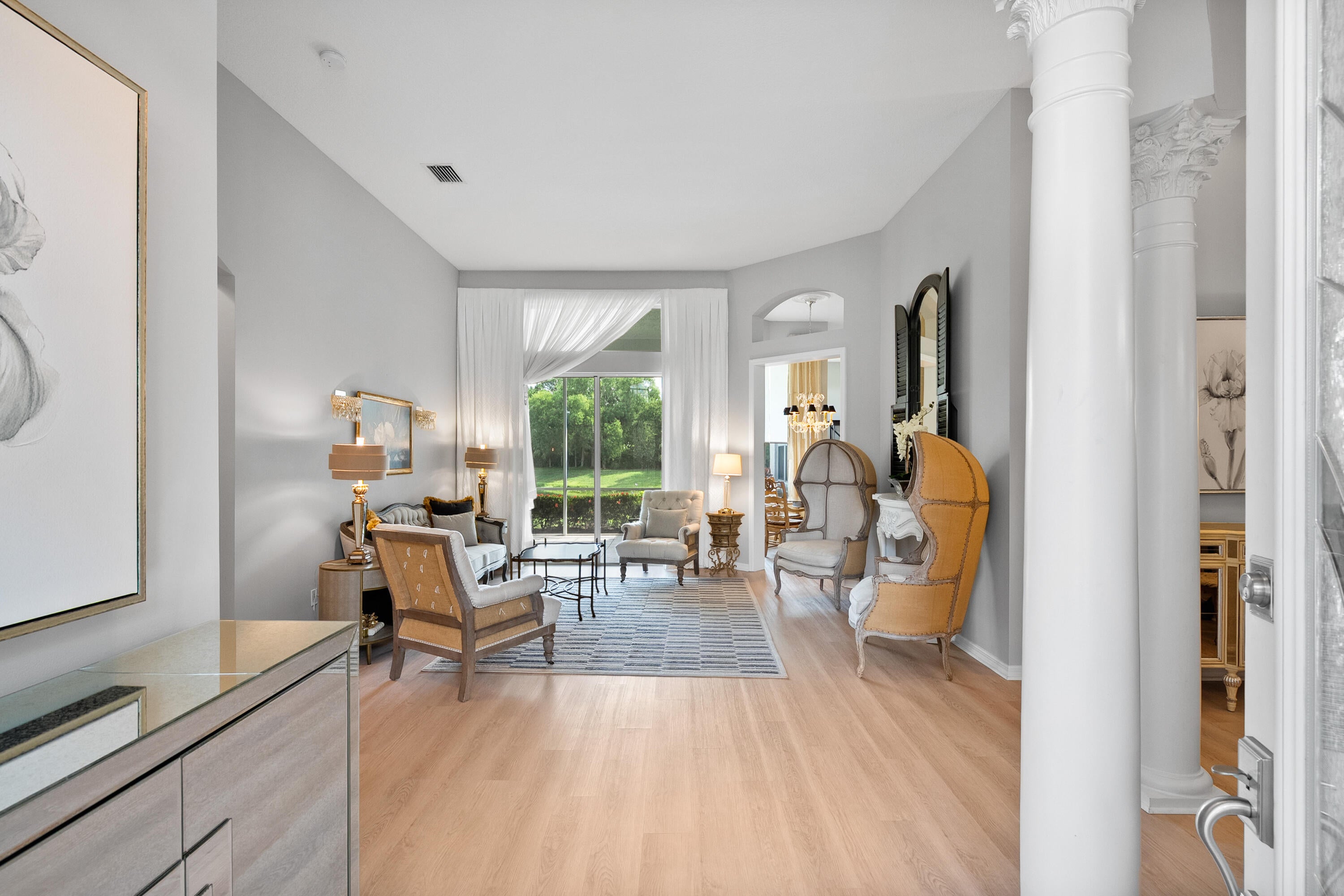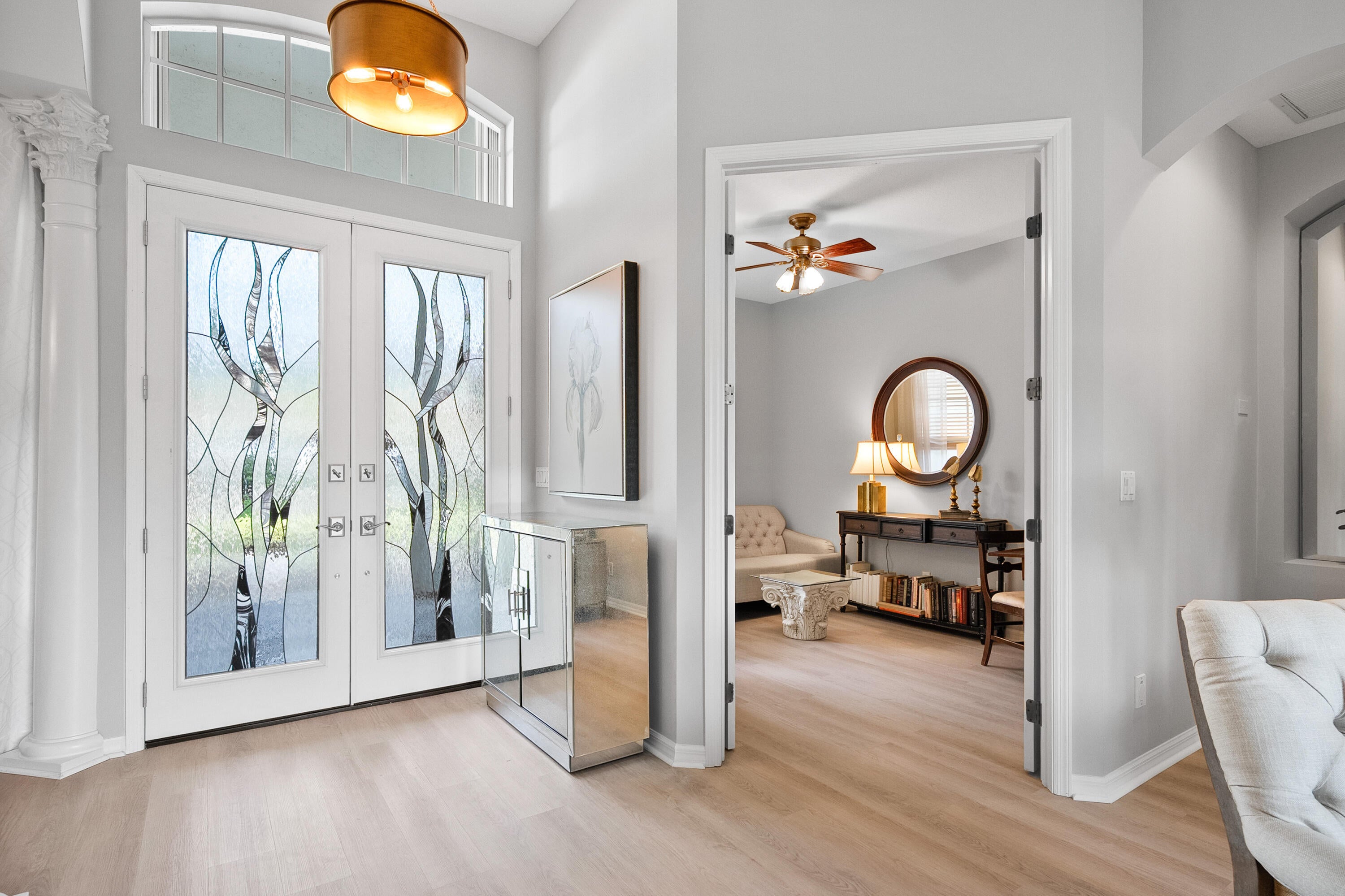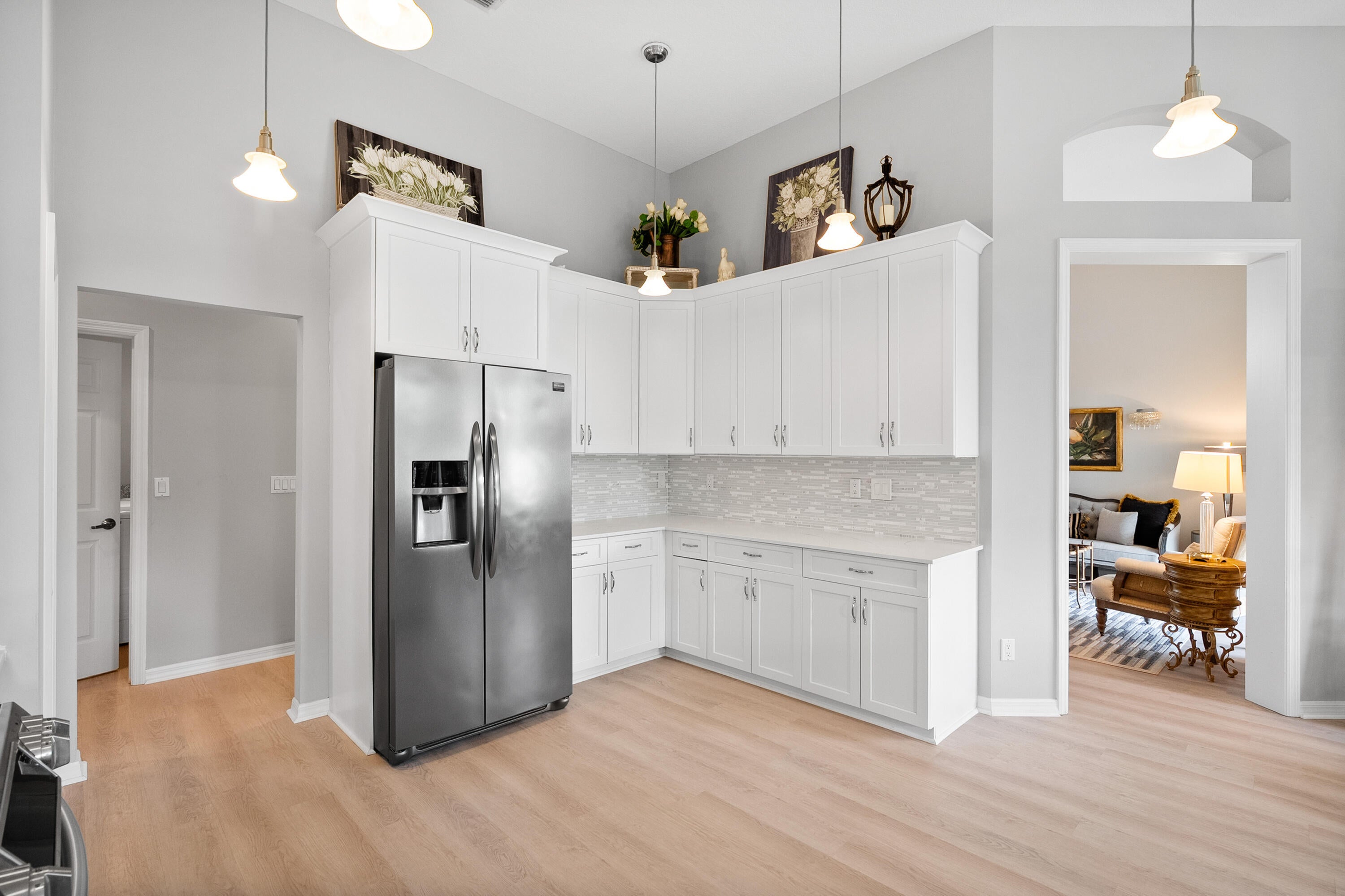 Elegance with modern renovations in this captivating floor Plan. Featuring light, neutral vinyl floors, soaring 12' ceilings in the main living areas, and 10' ceilings throughout the rest of the home, this residence is filled with natural light from abundant windows. Updated kitchen showcases white quartz countertops and stainless steel appliances. Floor plan includes a formal dining room, living room, and family room, plus 4 bedrooms and 3.5 baths. One bedroom is an en suite ideal for a nanny or in-law quarters, while another bath serves as a cabana. Enjoy tranquil lakefront views, beautiful mature landscaping, a 2021 roof, and complete hurricane panels. Community amenities include a clubhouse, pool, tennis, fitness center, and optional golf club with cafe and dining. Membership Optionallive where your play. More features are a Large Laundry Room, Spacious 3 Car Garage, 2 Zone A/C units, Paver Driveway and double door entry. New Flat tile roof.