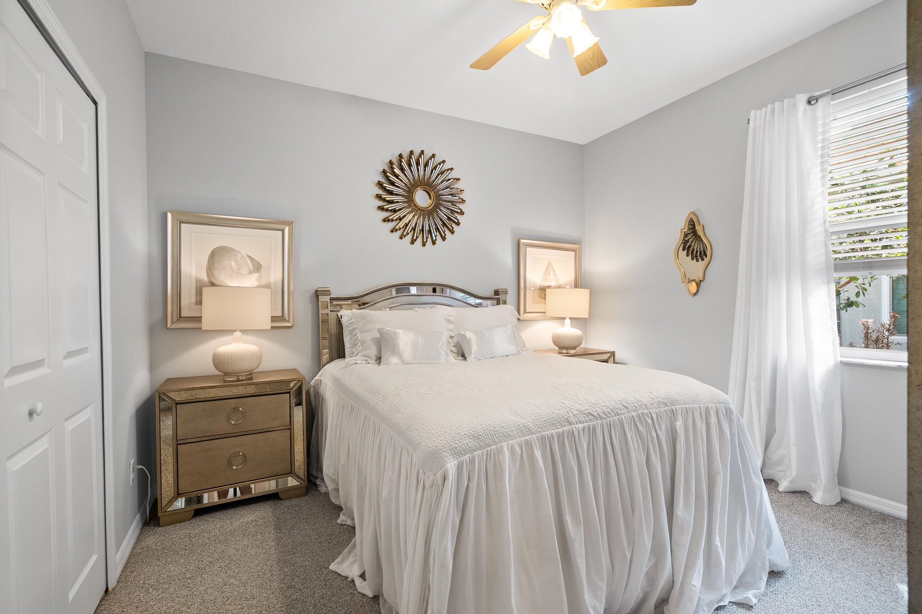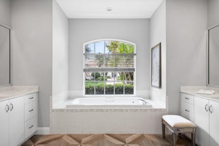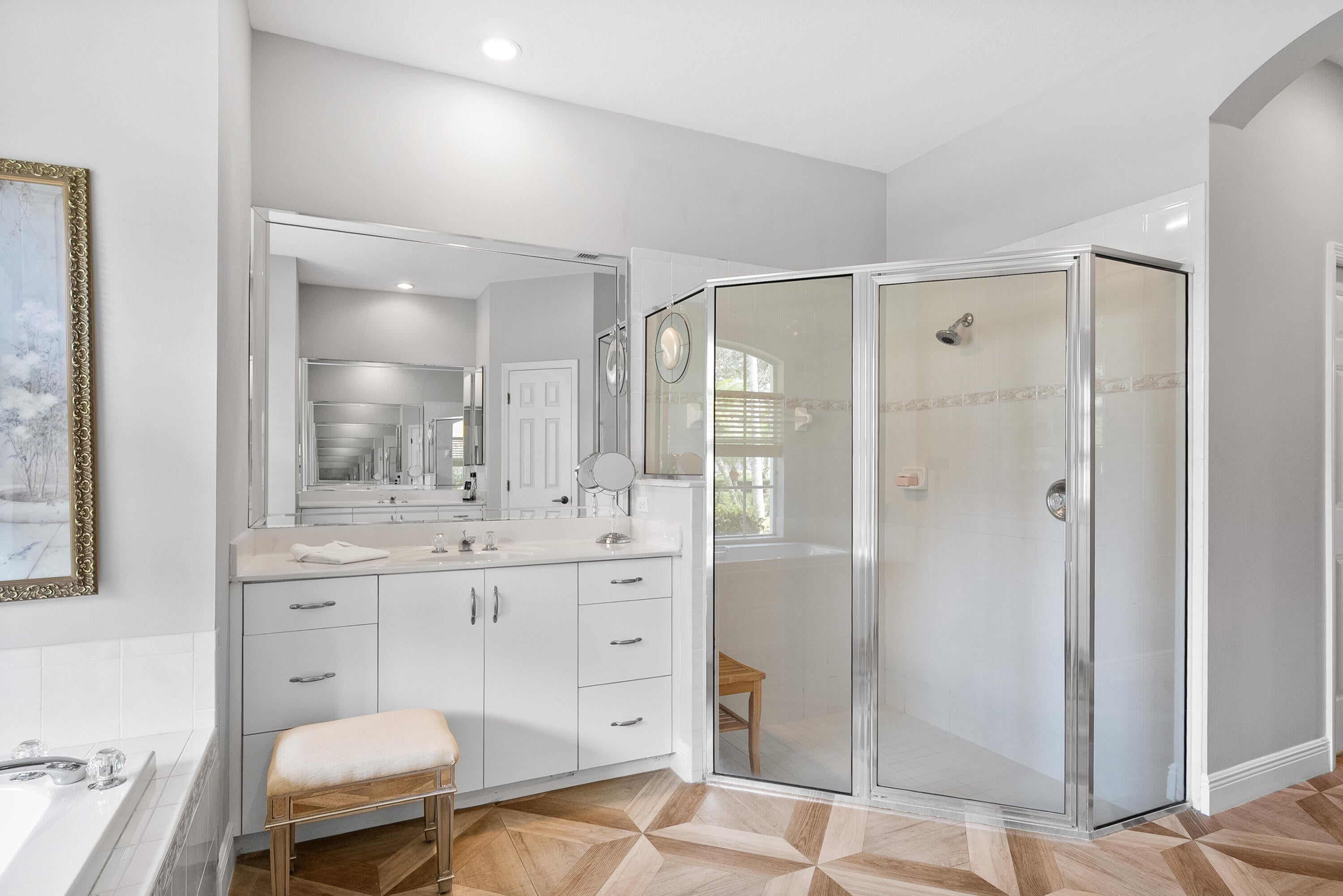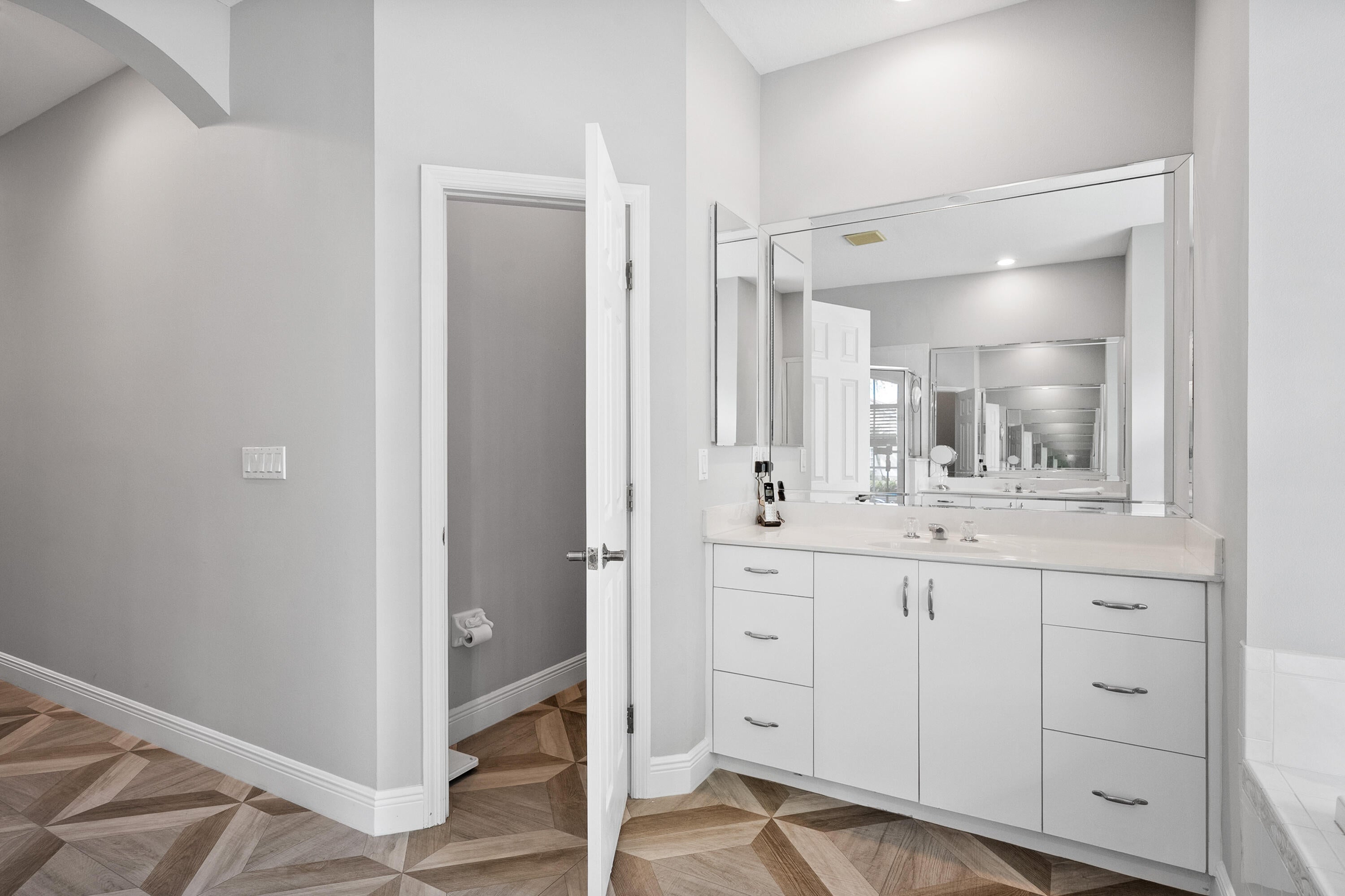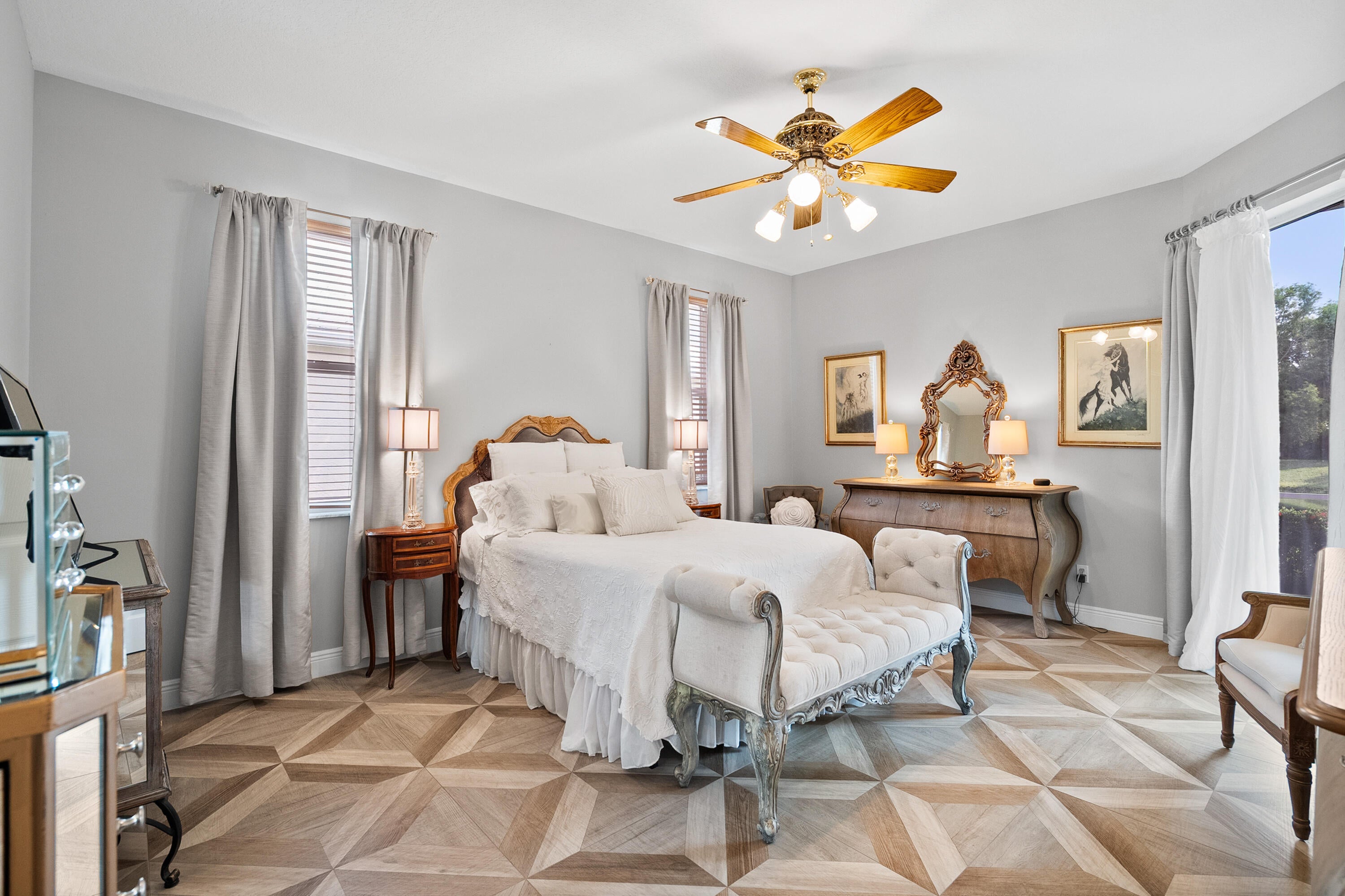 Elegance with modern renovations in this captivating floor Plan. Featuring light, neutral vinyl floors, soaring 12' ceilings in the main living areas, and 10' ceilings throughout the rest of the home, this residence is filled with natural light from abundant windows. Updated kitchen showcases white quartz countertops and stainless steel appliances. Floor plan includes a formal dining room, living room, and family room, plus 4 bedrooms and 3.5 baths. One bedroom is an en suite ideal for a nanny or in-law quarters, while another bath serves as a cabana. Enjoy tranquil lakefront views, beautiful mature landscaping, a 2021 roof, and complete hurricane panels. Community amenities include a clubhouse, pool, tennis, fitness center, and optional golf club with cafe and dining. Membership Optionallive where your play. More features are a Large Laundry Room, Spacious 3 Car Garage, 2 Zone A/C units, Paver Driveway and double door entry. New Flat tile roof.