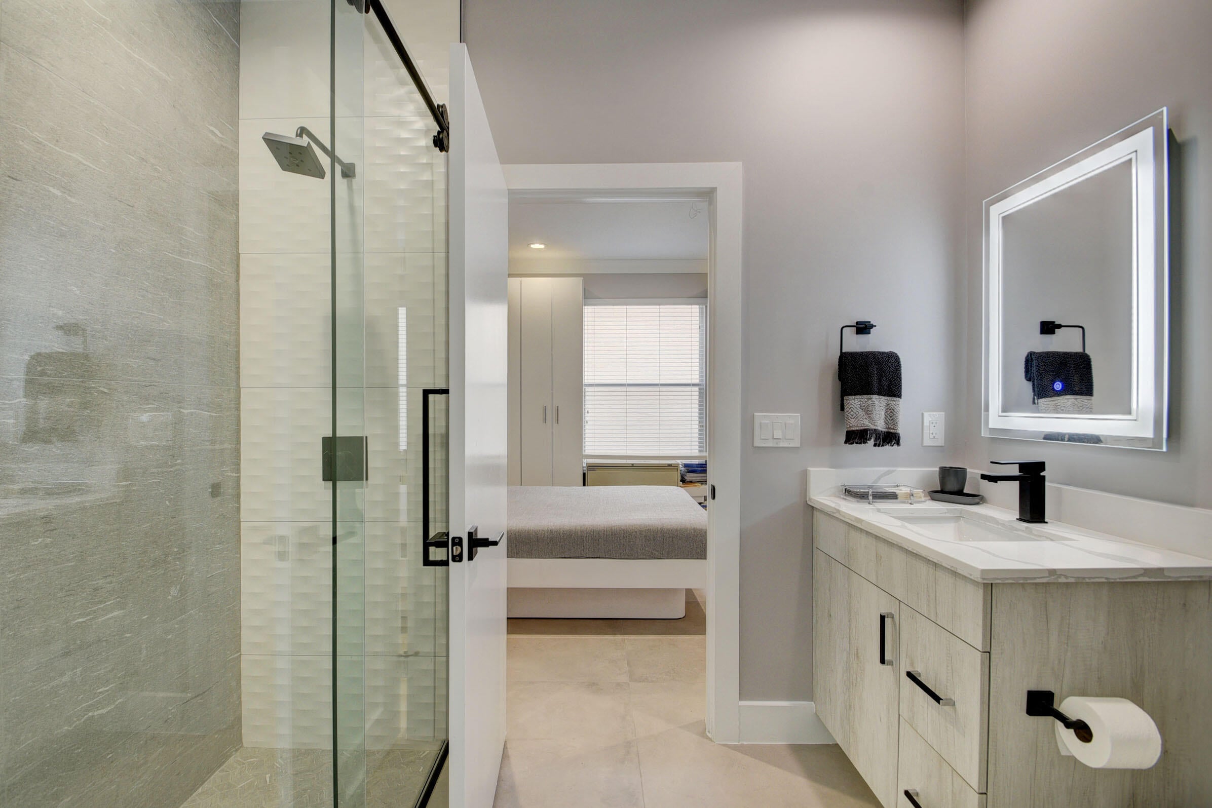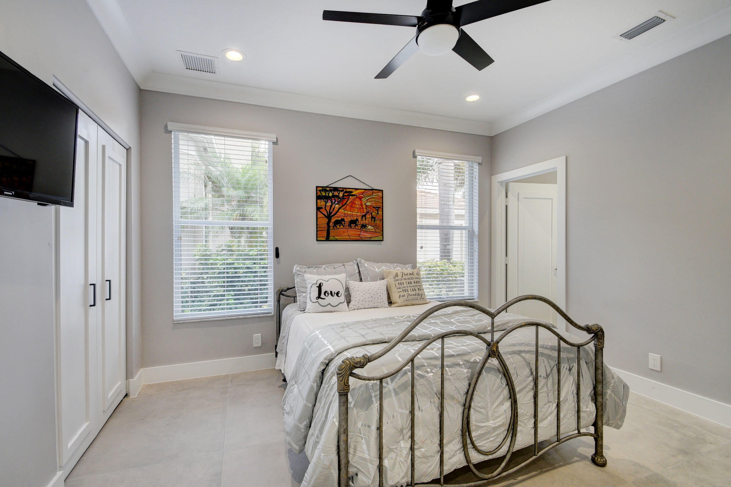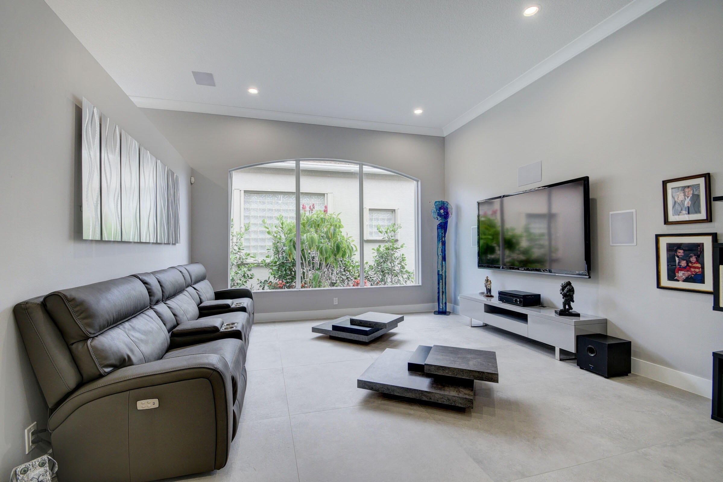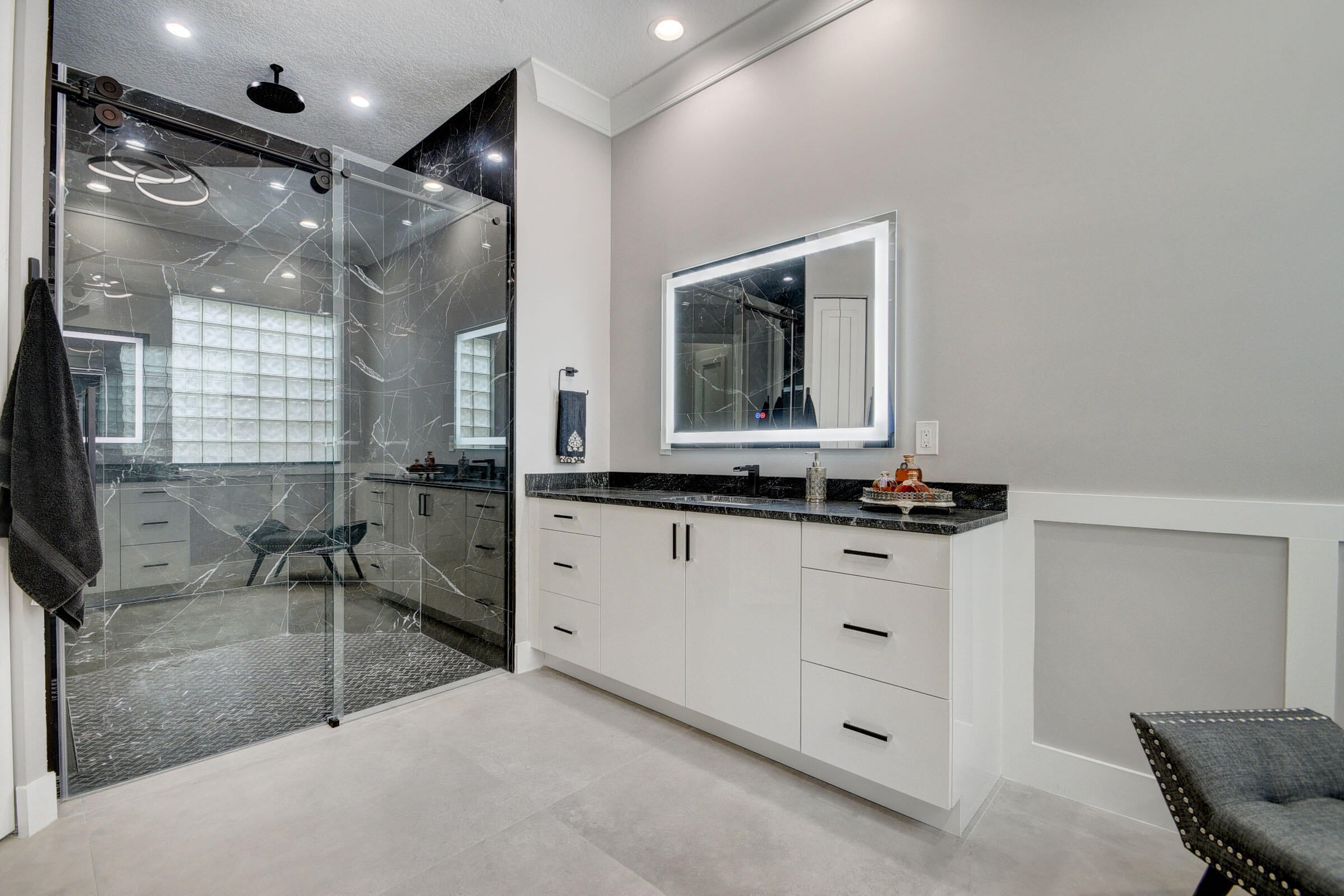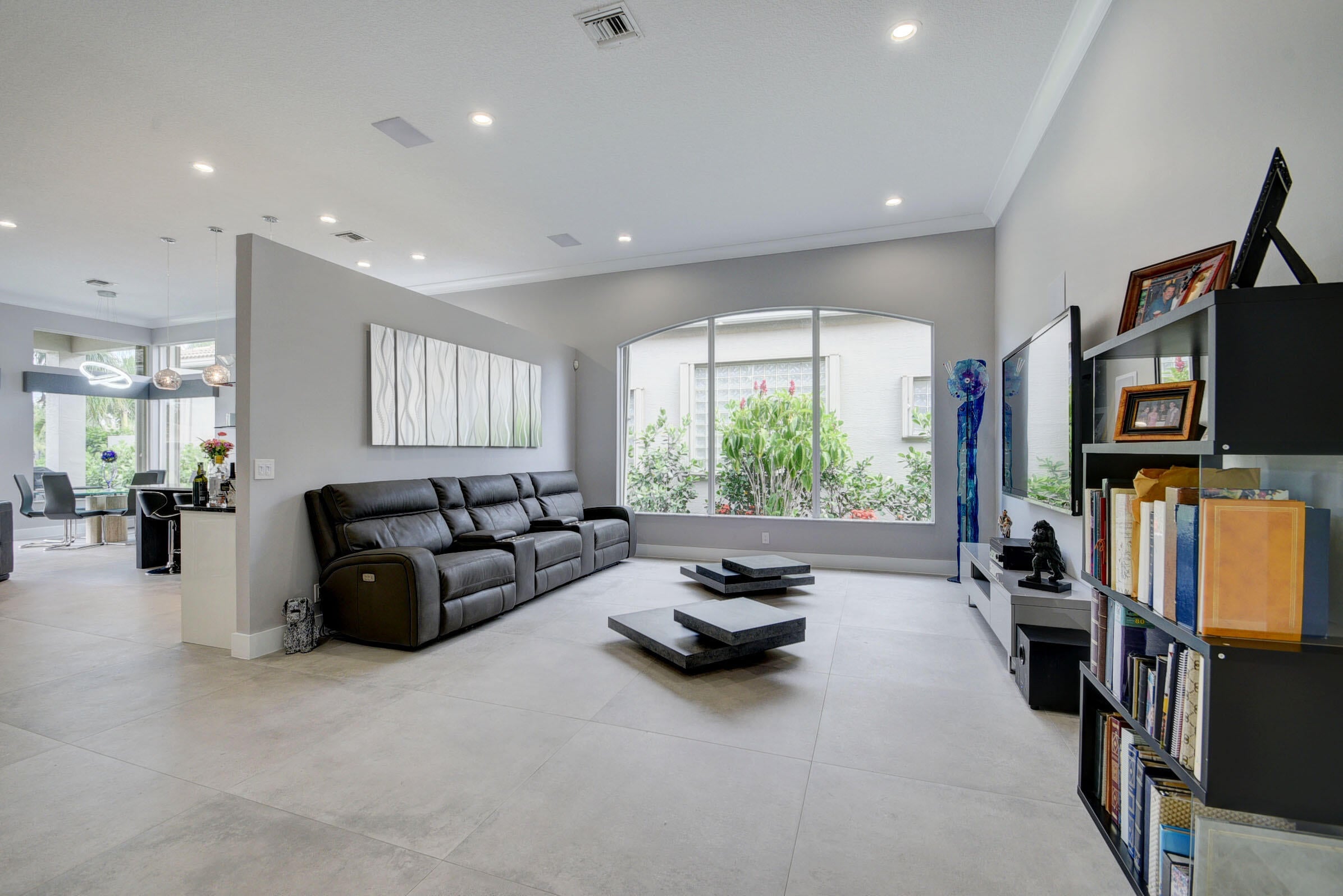 Renovated with every detail in mind, this 4-bedroom, 4-bathroom waterfront home offers a contemporary yet warm design. Oversized 3.25' x 3.25' tile floors, new baseboards, crown moldings, door frames and moldings. Open kitchen, 42-inch cabinetry, quartz countertops, tiled backsplash, raised oven, wine cooler, large island with bar seating Soft-close cabinets and drawers throughout. Flexible floor plan with unique converted DR to office and a media-style living room. The primary suite showcases a custom wood accent wall with fountain & lake views. The bath boasts dual oversized vanities with heated mirrors and an expanded glass-enclosed rain shower with wall and ceiling fixtures. Each guest room has its own updated en-suite bath with raised cabinetry and frameless glass doors.Traveling to the clubhouse by golf cart is one of the fun features of the community. This residence goes through the nature preserve under Lake Worth to the clubhouse. Wycliffe is a member of the Audobon Society with 250 speciaes of birds to enjoy. There are more activities than one could participate in the day. The fitness center classes are included in the membership. Tennis, golf, pickleball, bocce and dinner dances throughout, lectures, Trivia Night Dinners all year. Come Home to Wycliffe! You'll be glad you did.