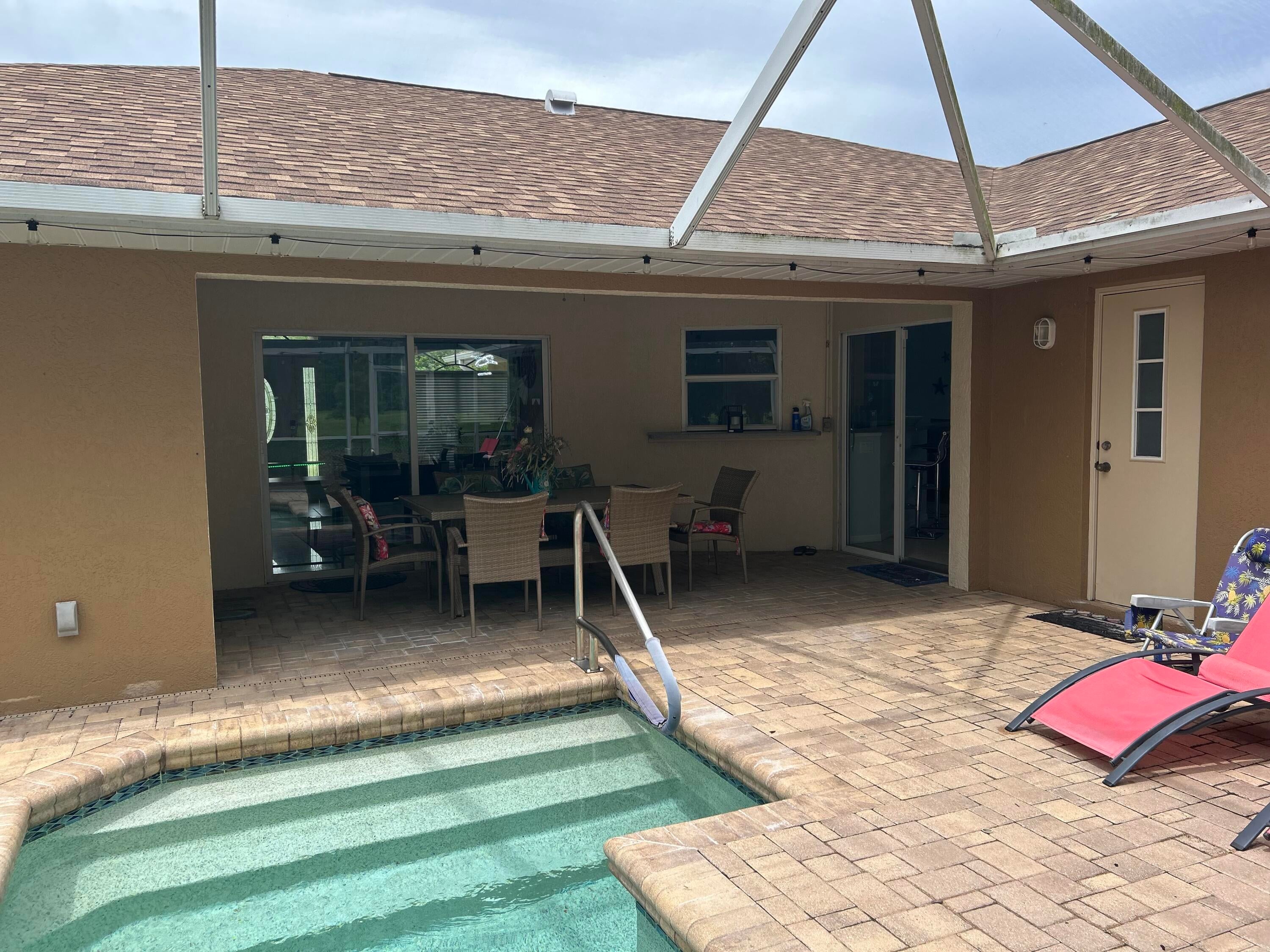 Waterfront Pool Home for Rent with FURNISHINGS AVAILBLE!Discover the best of Florida living at 2590 Abbotsford Street! This beautiful maintained 4/2 home offers a spacious open floor plan with high ceilings, tile flooring, and plenty of natural light. The modern kitchen features ss appliances, ample cabinetry, and a breakfast bar that opens to the dining and living areas-perfect for entertaining. Split bedroom design ensures privacy, with a generous master suite that includes a walk-in closet, dual vanities with access to the pool. Step outside to your very own private paradise! Screened lanai with sparkling heated pool and peaceful waterfront views. Enjoy your morning coffee overlooking the canal and stunning sunrise. A convenient location near shops, dining, schools, and Gulf Beaches.