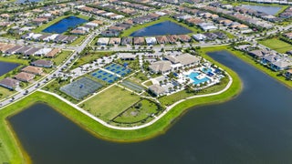 West Lake community with gated entry and resort-style amenities. This Seaview Coastal Elevation floorplan offers 3 bedrooms, 2.5 baths, plus a loft that can be converted into a 4th bedroom. Spacious 2-story home with impact windows and doors, quartz countertops, and a 2-car garage with driveway space for 4 more vehicles. Features include a lake view, large backyard, oversized first-floor main bedroom with en-suite bath and walk-in closet, open living and dining areas, designer kitchen with pantry, island seating, powder room, and full laundry room.