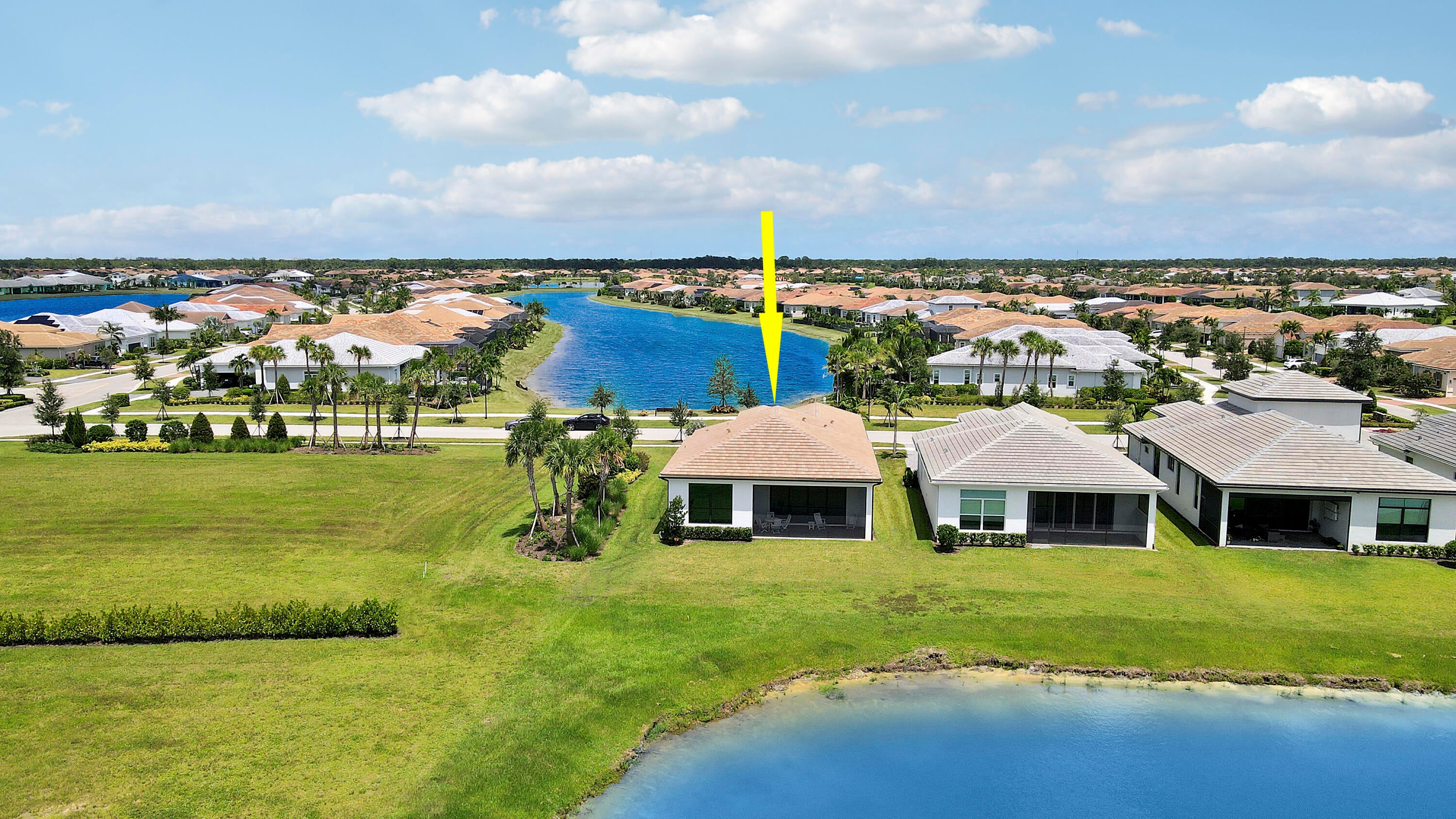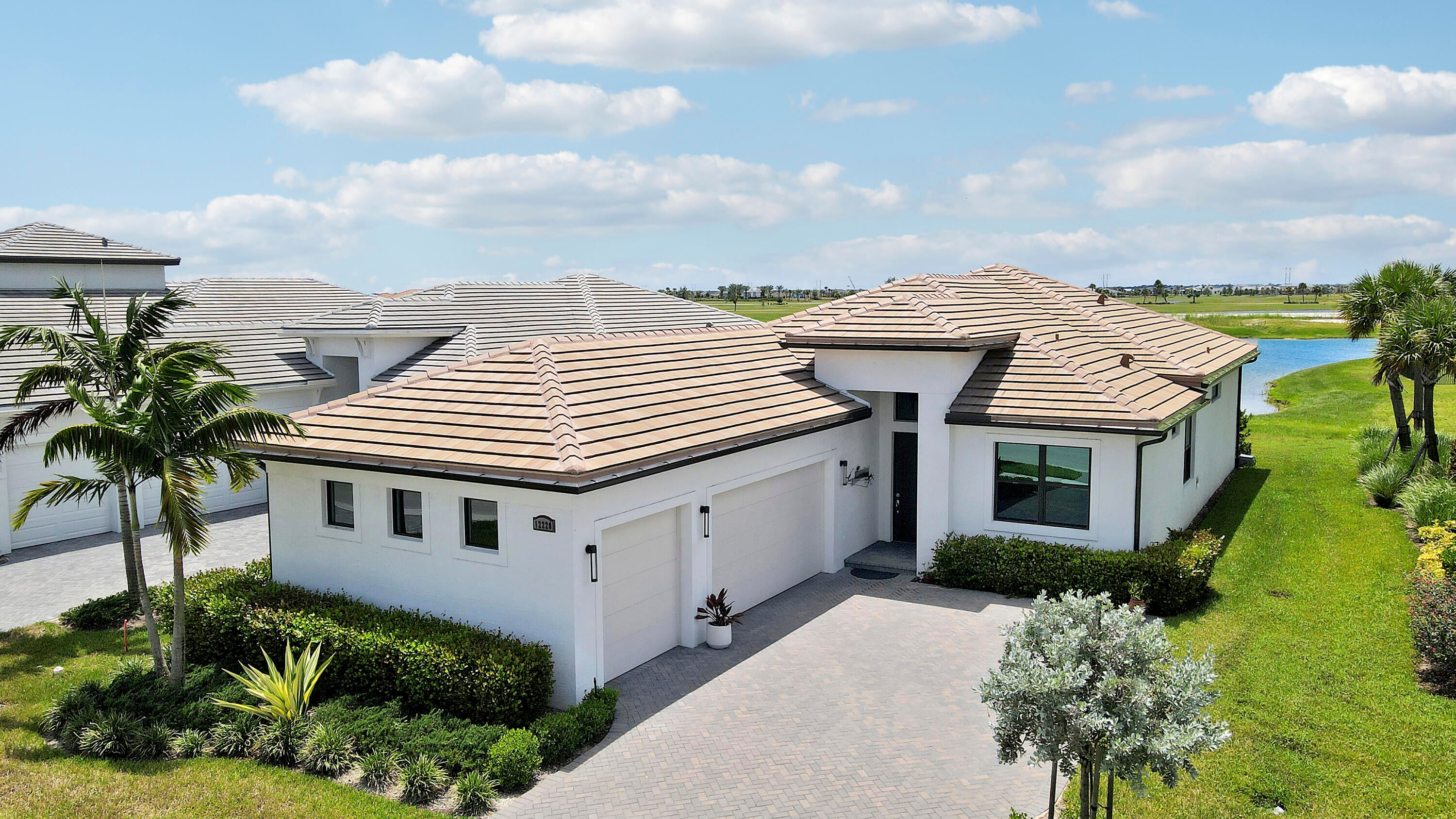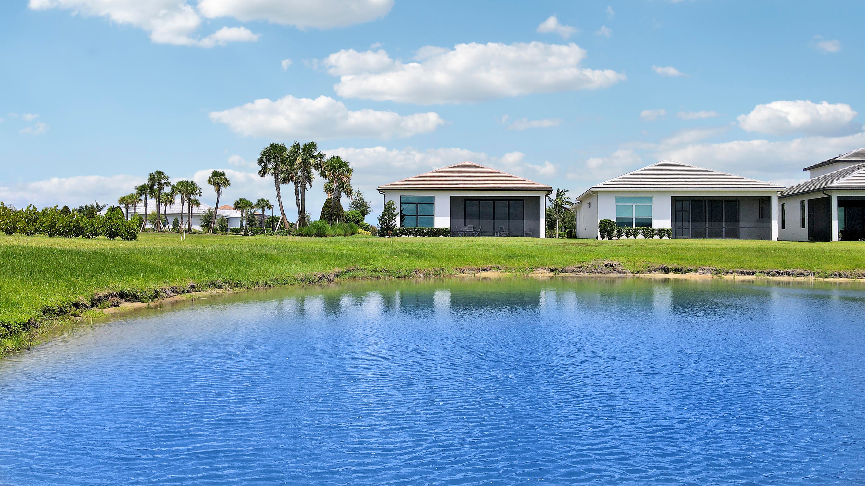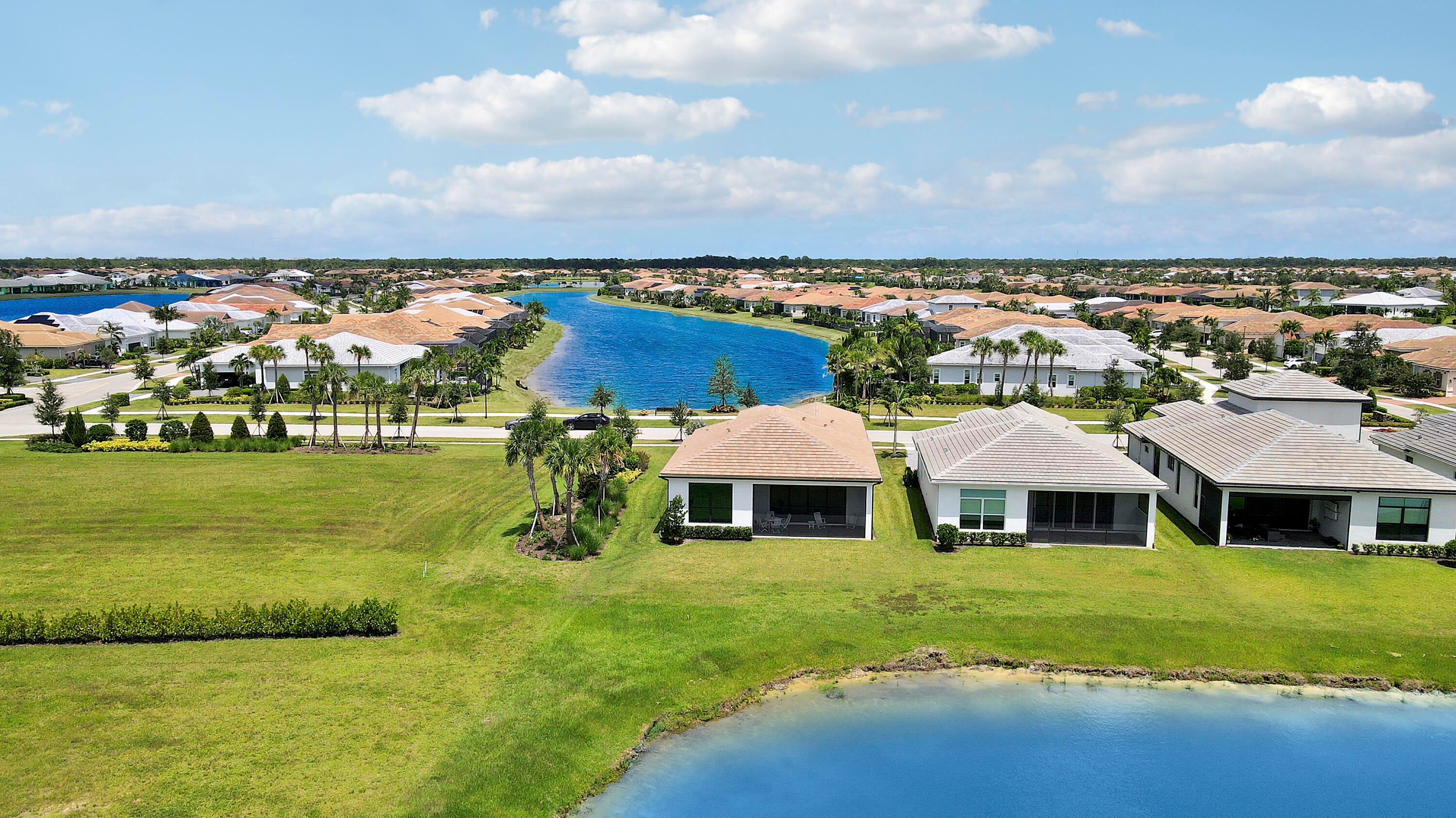 LAKESIDE BEAUTY! This 3BDRM+Den/3BA/3CG great-room style 'Lila' floor plan has so much to offer! Enjoy the soothing vibe as you enter the foyer of this lovely home w/ on trend color scheme, plenty of natural light, high ceilings, IMPACT GLASS windows & doors and tile flooring throughout main living areas! Kitchen has light gray cabinetry, granite counters, breakfast bar, SS appliances & walk-in pantry! Sliding doors open to the covered/screened patio ready to relax & enjoy your morning coffee all while taking in the serene lake views! Primary suite overlooks the lake, has beautiful ensuite w/ dual sinks, spacious tiled shower w/ glass door & huge walk-in closet! Two more bedrooms, one with private ensuite and the other with easy access to the guest bath! Den/flex space is off the hall!Other features include gorgeous lake views front and back! Covered patio off the great room has new picture frame screening to maximize views! Yard has plenty of room for a pool! Interior hi-hat lighting, carpeting in bedrooms, laundry tub, 3 car garage! Verano is an amenity rich community with a 27 court pickleball facility, walking paths, indoor and outdoor pools, multiple fitness centers, sauna, dog park, resistance pool, e-gym, tennis courts, social clubhouse and so much more!! HOA dues include basic cable, internet, alarm monitoring, lawn care, common area maintenance and access to amenity centers. For avid golfers there is a cart path leading to the PGA Golf Club (membership is optional and availability varies). Don't miss out on this fantastic opportunity! Call today to view this wonderful opportunity and start enjoying all that Florida living has to offer!