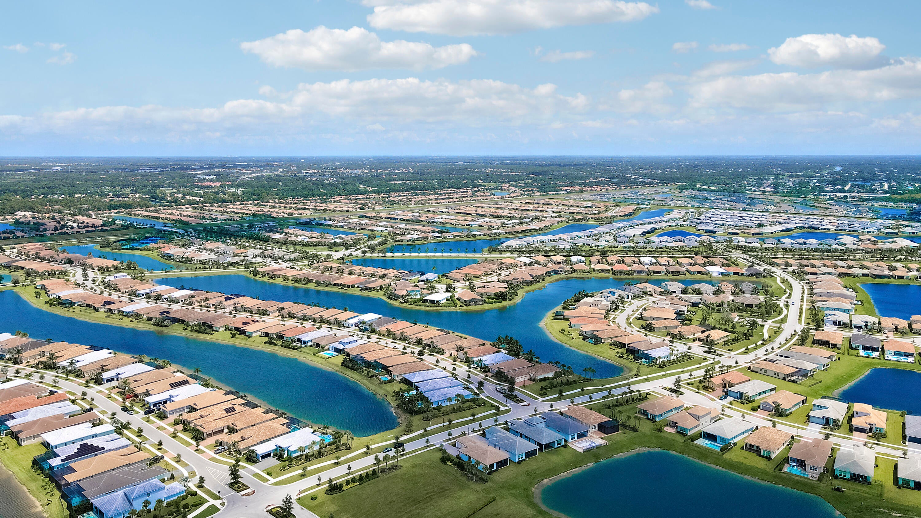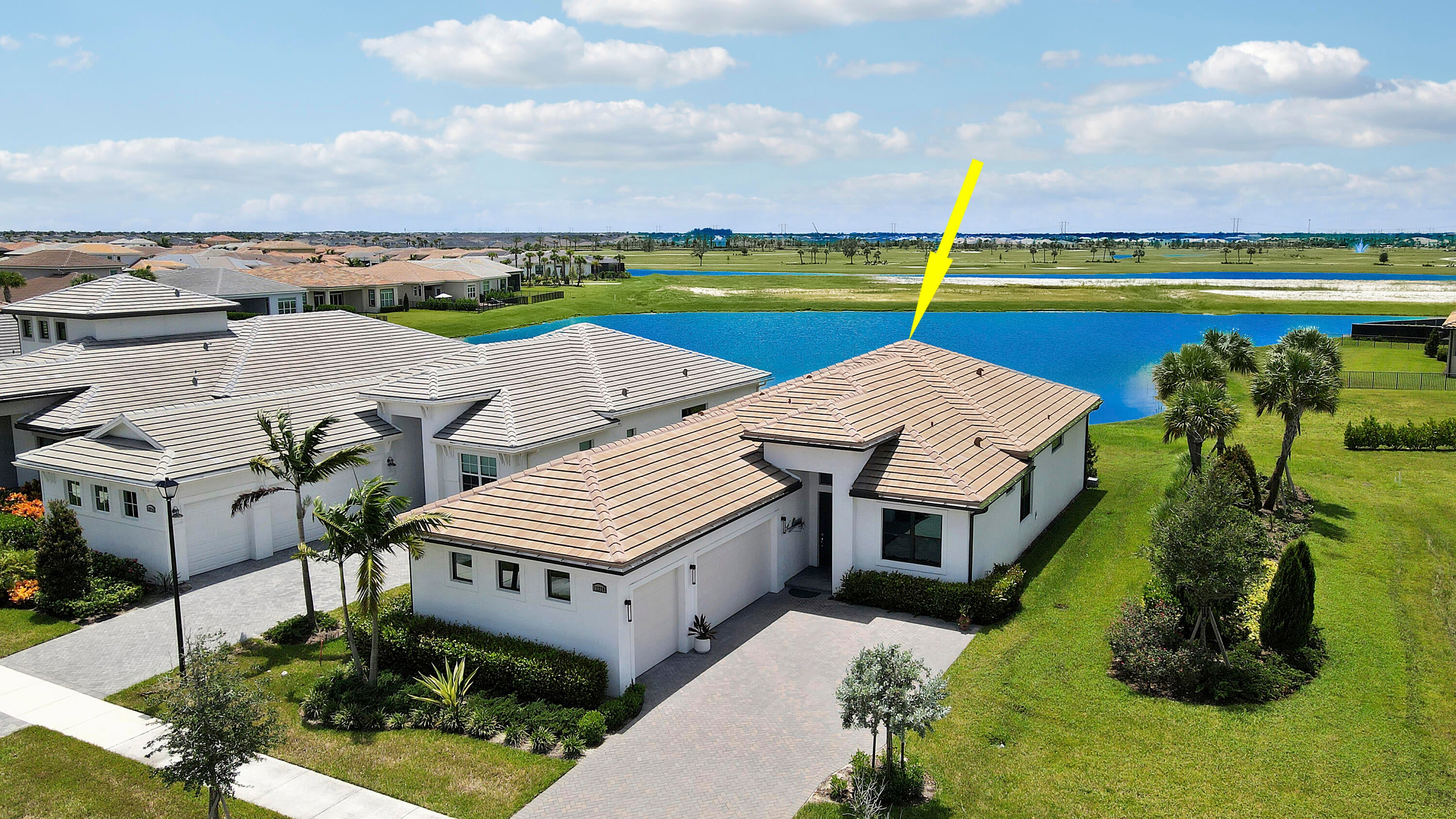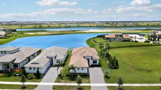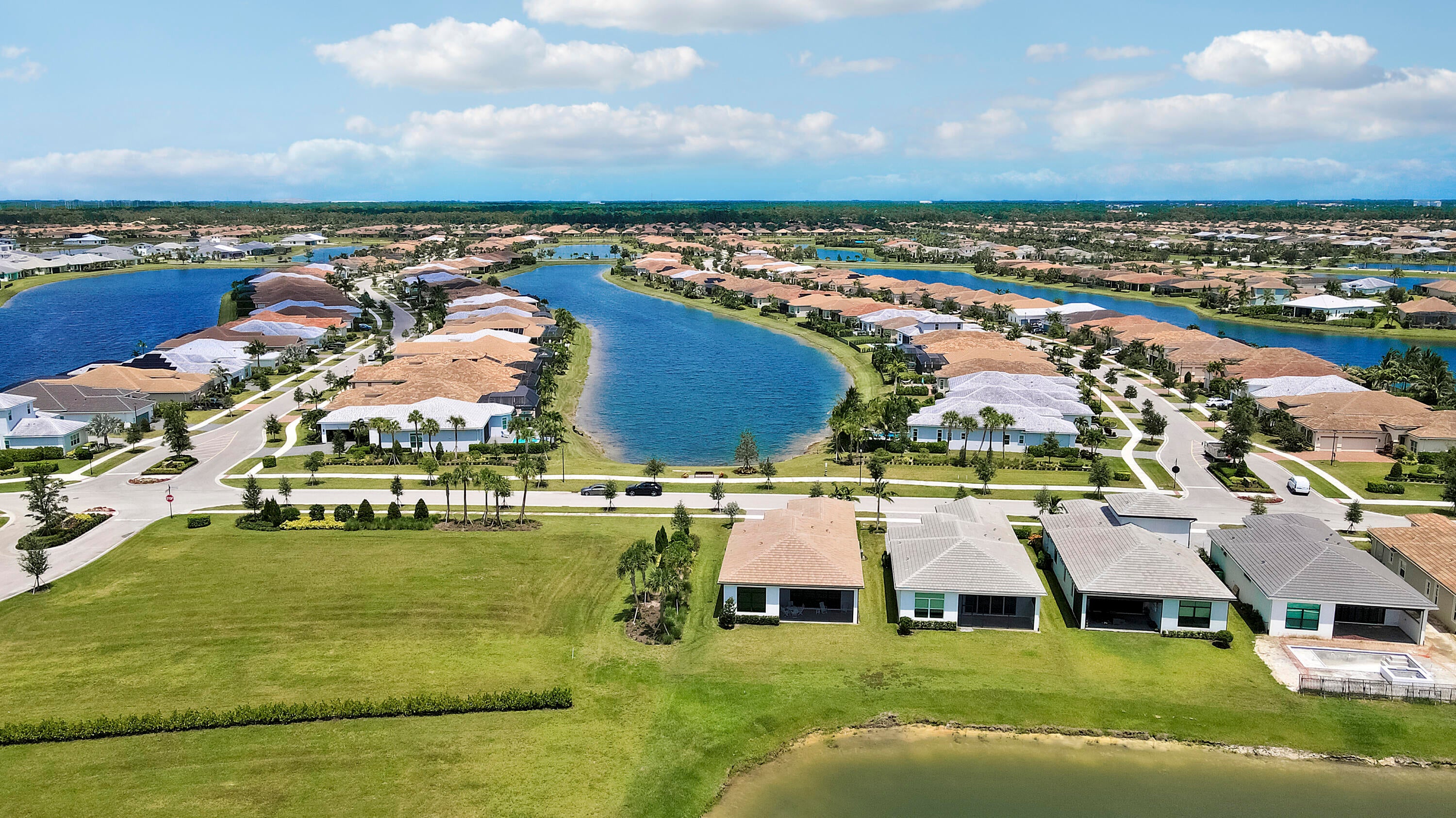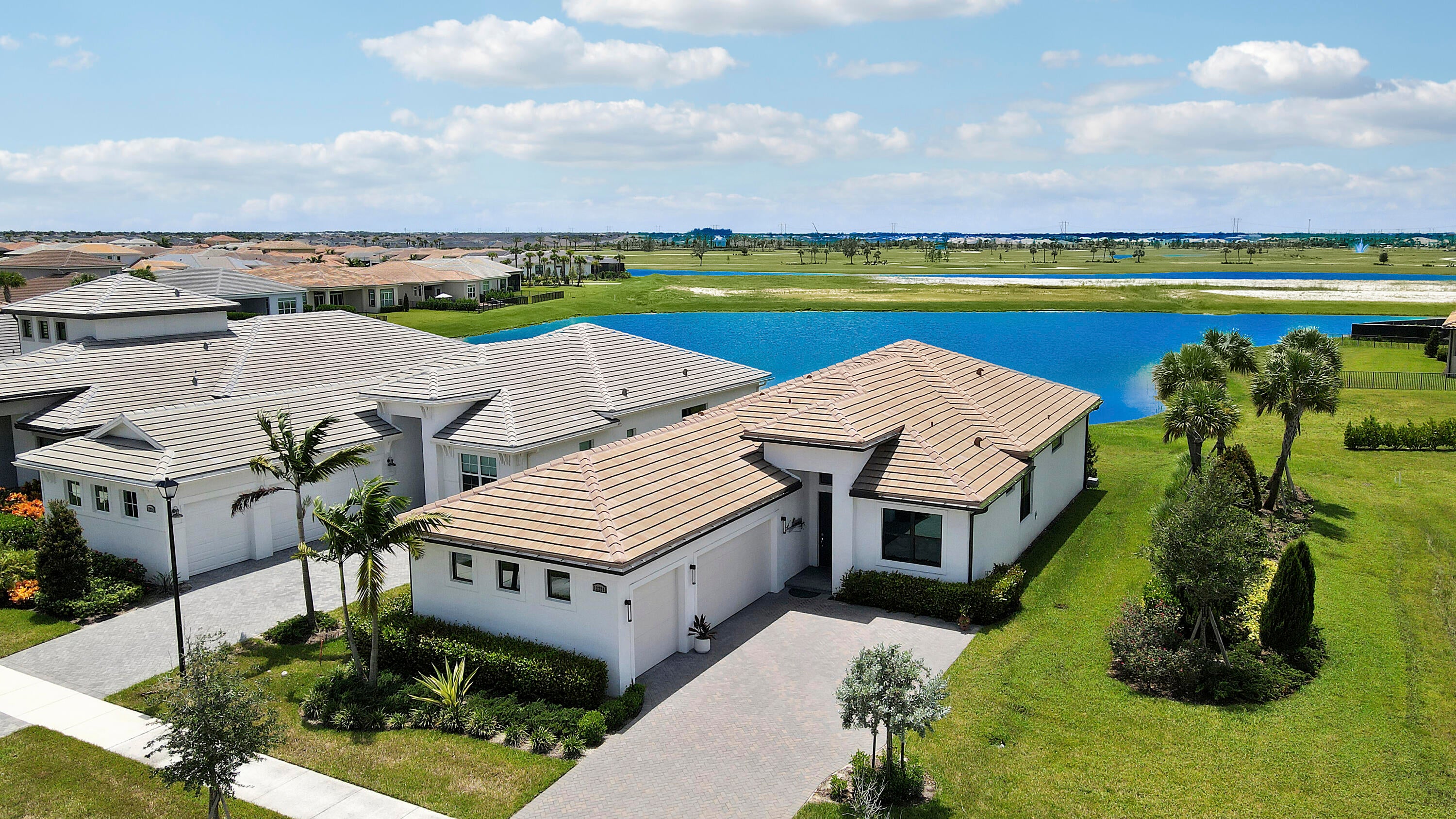 LAKESIDE BEAUTY! This 3BDRM+Den/3BA/3CG great-room style 'Lila' floor plan has so much to offer! Enjoy the soothing vibe as you enter the foyer of this lovely home w/ on trend color scheme, plenty of natural light, high ceilings, IMPACT GLASS windows & doors and tile flooring throughout main living areas! Kitchen has light gray cabinetry, granite counters, breakfast bar, SS appliances & walk-in pantry! Sliding doors open to the covered/screened patio ready to relax & enjoy your morning coffee all while taking in the serene lake views! Primary suite overlooks the lake, has beautiful ensuite w/ dual sinks, spacious tiled shower w/ glass door & huge walk-in closet! Two more bedrooms, one with private ensuite and the other with easy access to the guest bath! Den/flex space is off the hall!Other features include gorgeous lake views front and back! Covered patio off the great room has new picture frame screening to maximize views! Yard has plenty of room for a pool! Interior hi-hat lighting, carpeting in bedrooms, laundry tub, 3 car garage! Verano is an amenity rich community with a 27 court pickleball facility, walking paths, indoor and outdoor pools, multiple fitness centers, sauna, dog park, resistance pool, e-gym, tennis courts, social clubhouse and so much more!! HOA dues include basic cable, internet, alarm monitoring, lawn care, common area maintenance and access to amenity centers. For avid golfers there is a cart path leading to the PGA Golf Club (membership is optional and availability varies). Don't miss out on this fantastic opportunity! Call today to view this wonderful opportunity and start enjoying all that Florida living has to offer!