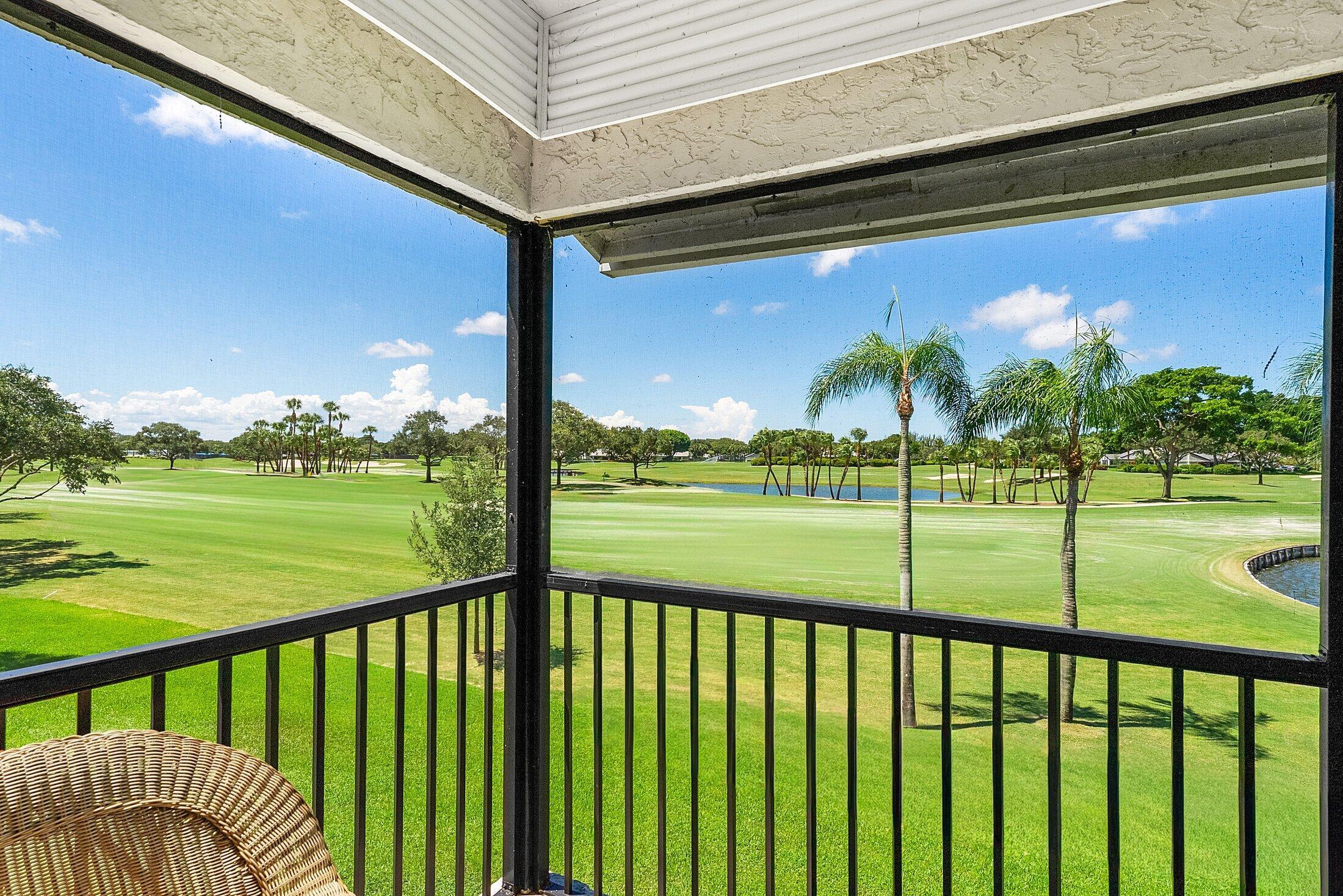 This spacious, sun-filled 2nd-floor condo showcases breathtaking lake and golf course views. Dramatic cathedral ceilings and skylights enhance the space with light and grandeur. Featuring 2 bedrooms, 2 baths, plus a den/convertible 3rd bedroom, an updated kitchen with wood cabinets, granite counters & SS appliances, a primary en-suite with spa tub, plus recessed lighting and plantation shutters throughout. Sweeping vistas can be enjoyed from nearly every room, with the screened-in lanai offering the perfect spot to savor al fresco meals against a backdrop of the glistening lake and lush fairways. Experience idyllic living at Hunters Run Country Club, a premier community where vibrant amenities make everyday life feel like a vacation.Hunters Run Country Club is a premier community with world-class golf, tennis, pickleball, fitness, dining, and a vibrant social lifestyle. Featuring 3 golf courses, 18 tennis courts, 12 pickleball courts, teams, tournaments, a resort-style pool & poolside bar & dining, subdivision pools, several dining venues, a gym with trainers and classes, a spa & salon, entertainment, events, and so much more. Located just minutes from Delray Beach's famed Atlantic Ave, the Intracoastal & beaches.