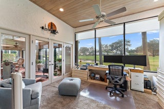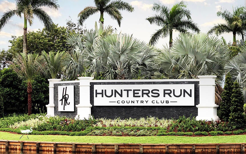 Enjoy golf and water views from this charming one-story residence in Hunter's Run. The primary suite has an adjacent den that overlooks the park like surroundings, and another enclosed lanai off over the living room and dining room offers similar stunning views. The two guest suites are located near the front of the home in order to provide privacy and separation from the primary suite. The kitchen, laundry room, and family occupy the opposite side of the home for informal family enjoyment. Best of all the clubhouse and club amenities are just a short golf cart ride from the property.