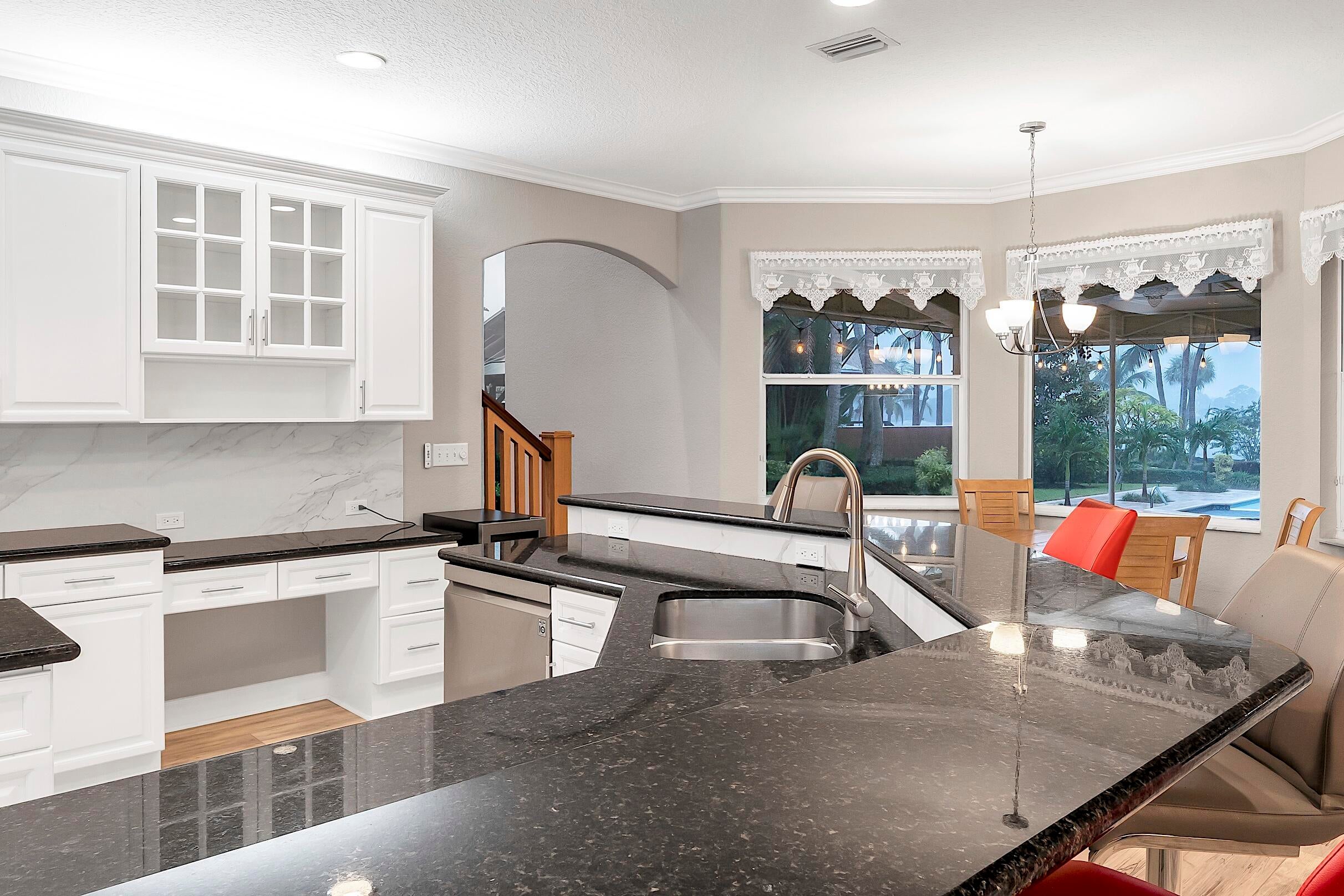 Mediterranean Luxury with Unobstructed Lake Views. Experience the perfect blend of elegance and comfort in this multi-level Mediterranean estate, which offers unobstructed panoramic lake views from every room. A custom elevator connects spacious levels, while outdoors, a heated infinity saltwater pool, summer kitchen, and large dock with boathouse create the ultimate lakefront lifestyle. Inside, enjoy a gourmet kitchen with stainless steel appliances, soaring vaulted ceilings, and a primary suite with a private balcony, his & her walk-in closets, and spa-inspired finishes. Surrounded by tropical landscaping, a circular drive, and backed by a whole-house generator, this home delivers luxury, convenience, and breathtaking waterfront living at its finest.