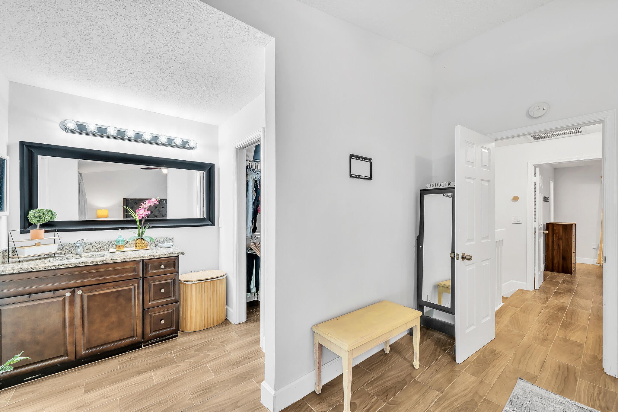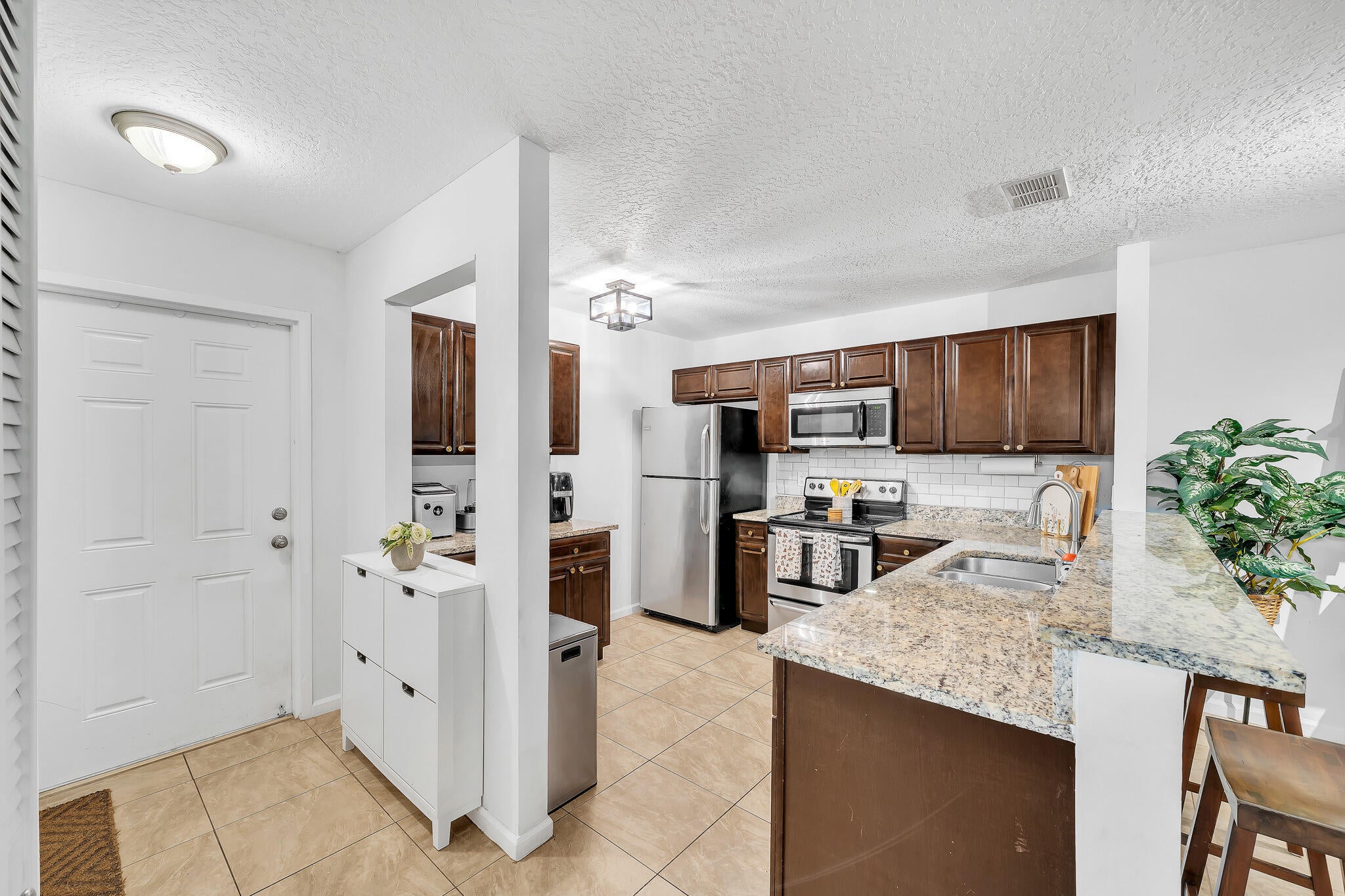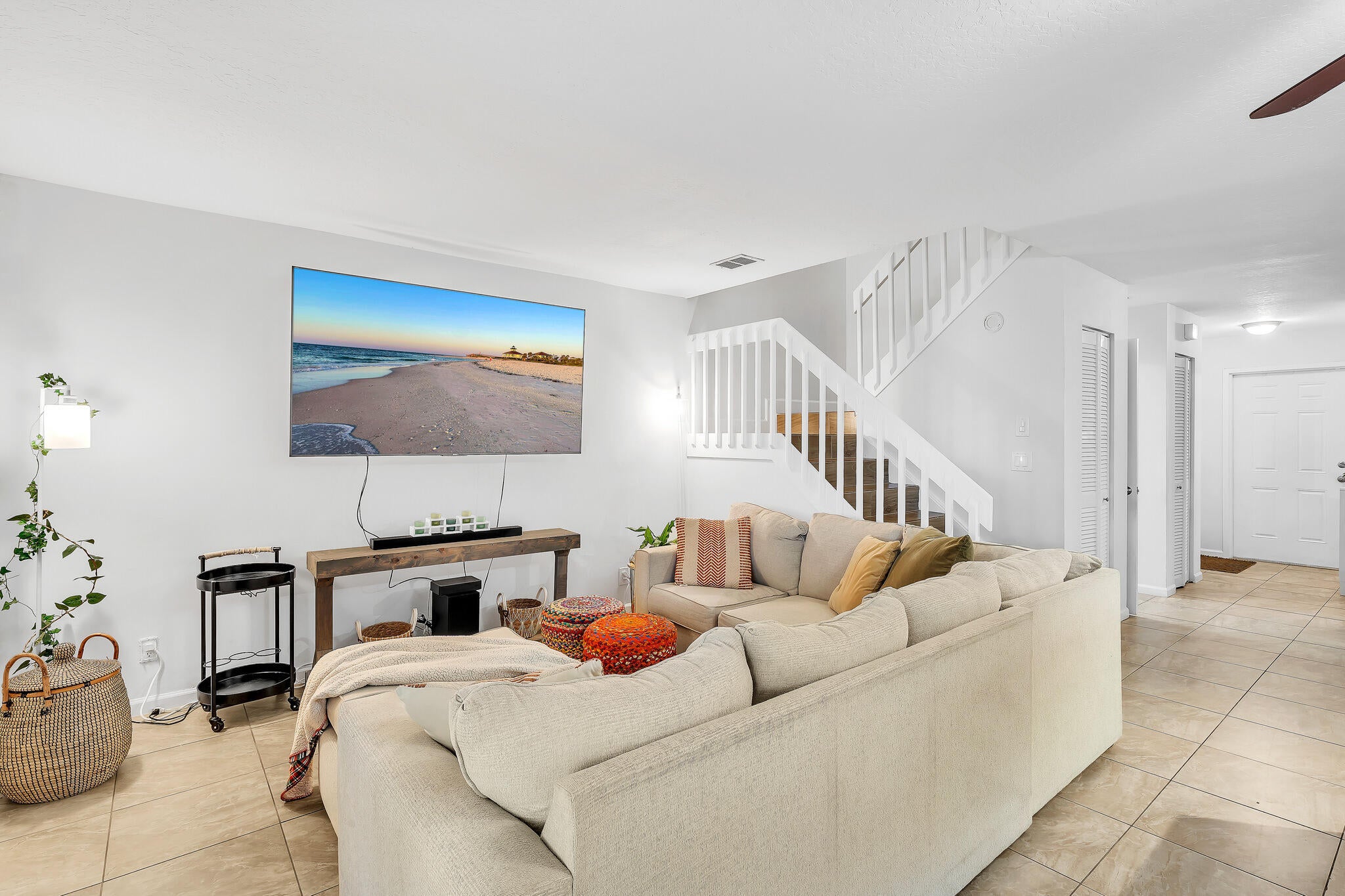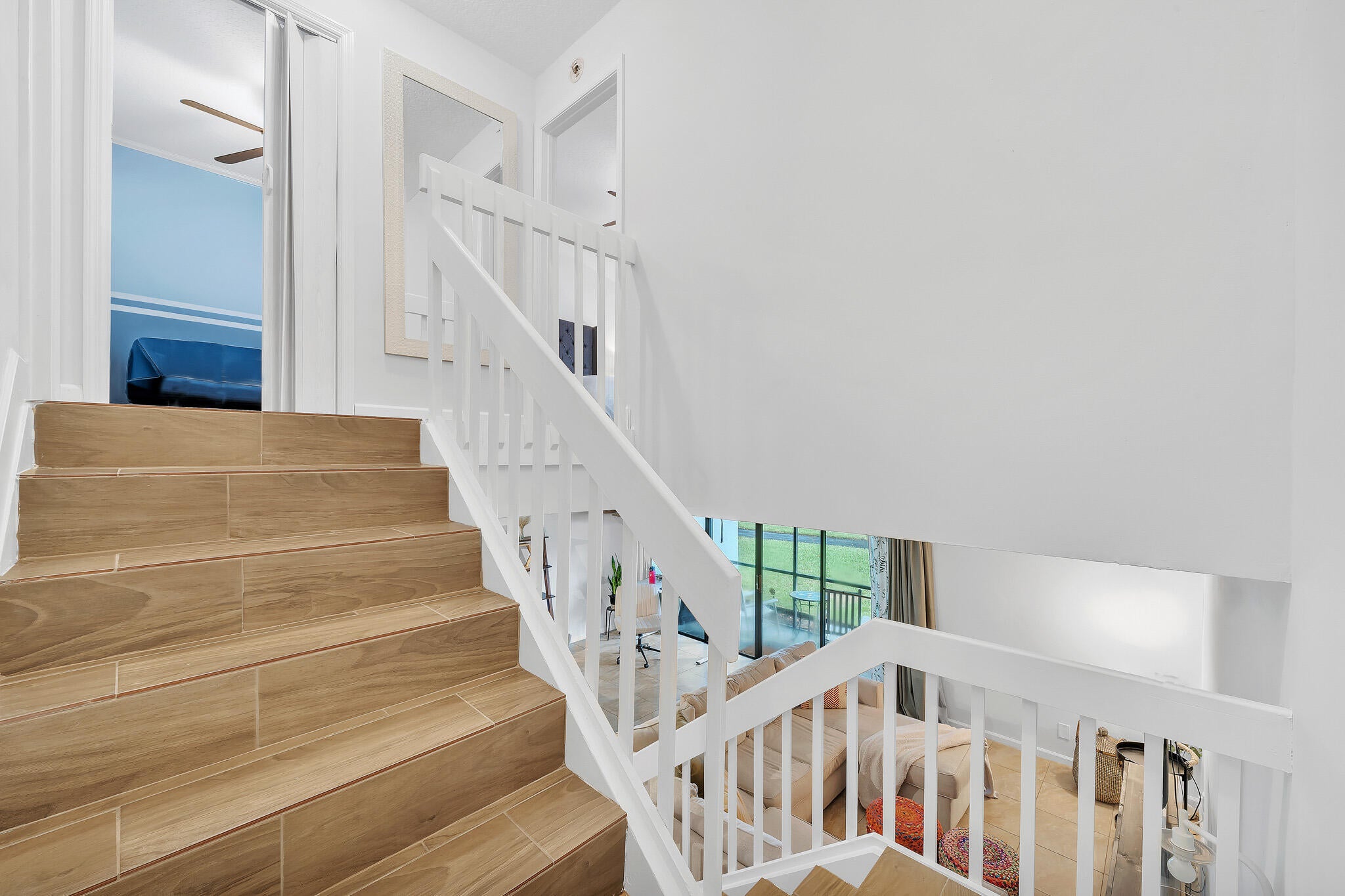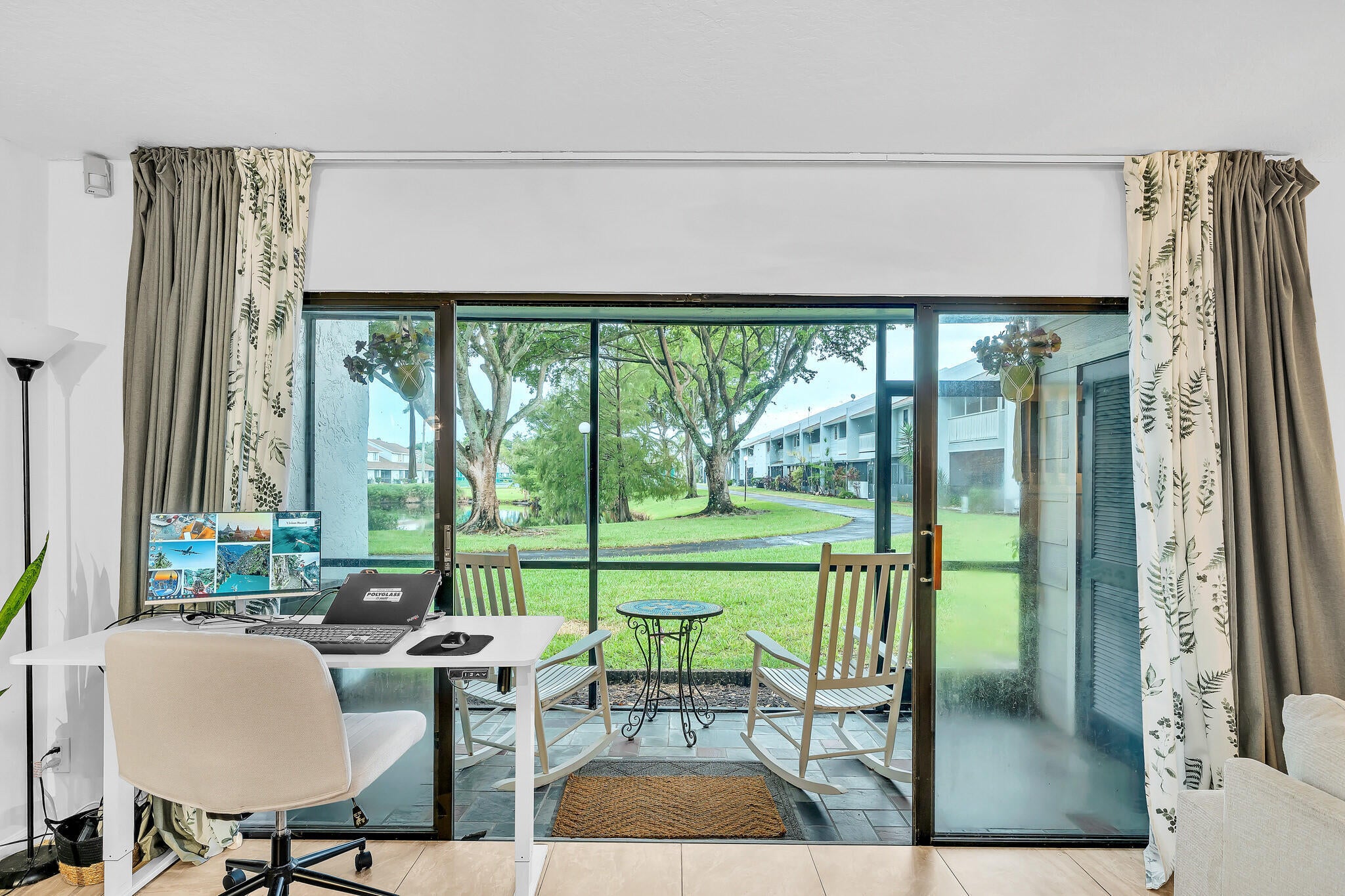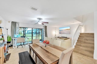 Welcome to this spacious 3-bedroom, 2.5-bathroom townhouse with 3rd room used as a den/office, perfectly situated in the desirable Woodbridge Lakes community of West Palm Beach. This well-designed home features an inviting open floor plan with abundant natural light, a den that can serve as an office or guest space, and a serene lakefront view that provides a tranquil backdrop for everyday living. Tile floors were installed throughout 2022. The primary suite offers generous closet space and an en-suite bathroom for added privacy, while the second bedroom is well-sized for family, guests, or flex space. The screened-in patio overlooking the lake is ideal for relaxing, entertaining, or simply enjoying the peaceful Florida lifestyle. Woodbridge Lakes is a pet-friendly community featuringa sparkling pool, tennis courts, and a playground offering residents both recreation and relaxation. The community's central location places you just minutes from downtown West Palm Beach, The Square, Kravis Center for the Performing Arts, Palm Beach International Airport, and the beautiful sandy beaches of Palm Beach. Everyday conveniences, including shopping centers, dining, top-rated medical facilities, and major highways, are also nearby, making this property the perfect blend of comfort and convenience. This townhouse presents an excellent opportunity to enjoy lakefront living in one of Palm Beach County's most convenient locations.