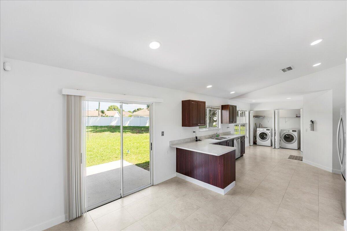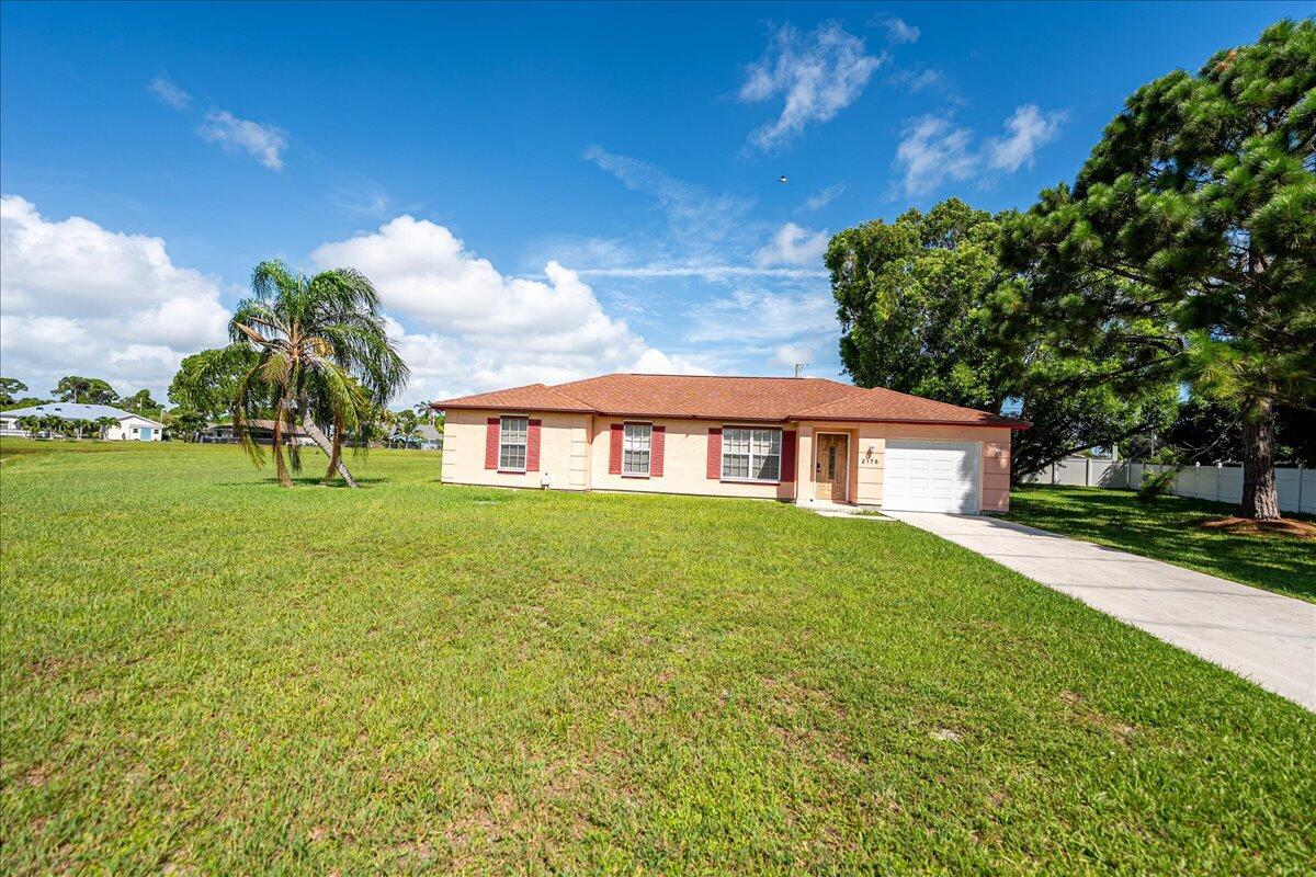 MUST SEE... This beautifully maintained 3-bedroom, 2-bathroom residence features a 1-car garage and a host of updates to offer comfort, style, & convenience and a Large Yard on a canal w/ extra room to park. Inside, enjoy partially upgraded features including brand-new flooring, a new refrigerator, a new water heater, & updated bathrooms. The kitchen is equipped w/ stainless steel appliances, and the front-loading washer & dryer make laundry a breeze. Smart home features like a smart thermostat & a security system w/ outdoor cameras (plus optional indoor cameras) add an extra layer of modern living & peace of mind. Yard has been fenced with easy access. Included in the lease: High-speed WIFI, Landscaping services, Pest control, Access to Security Cameras, and Security System.