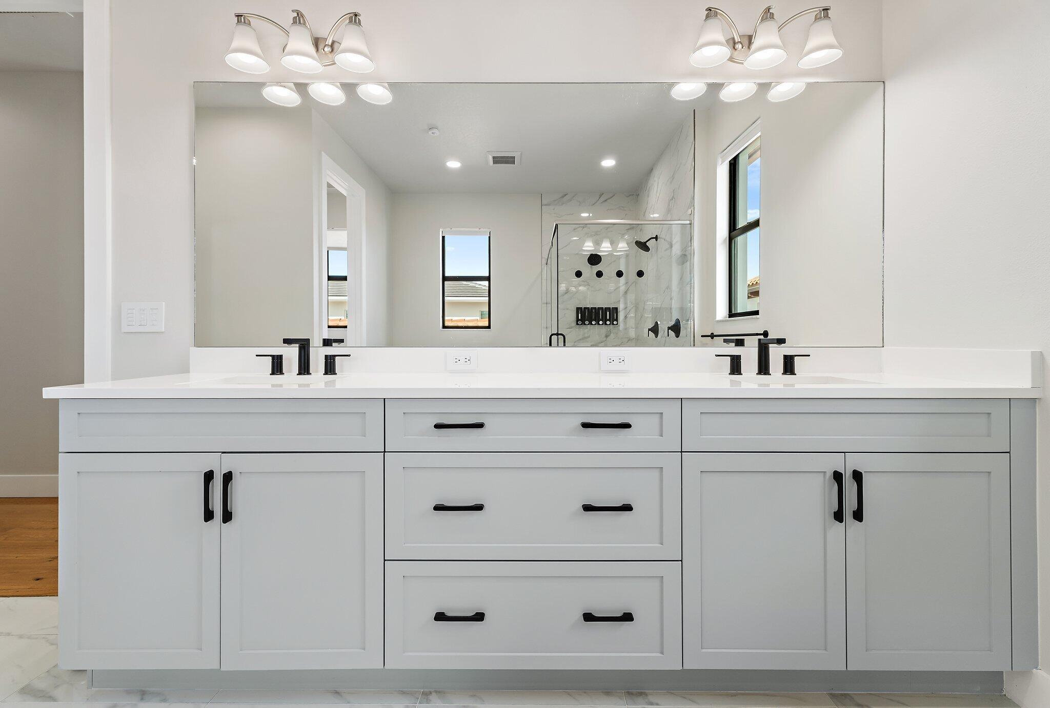 Exceptional Opportunity in Palm Beach Gardens' Newest Community!One of the most recently completed homes in Alton, 1005 Faulkner is a stunning showcase of curated smart home technology and organic modern design. Ideally located on a quiet, no-through-traffic street in Palm Beach Gardens' most sought-after neighborhood, this property offers the perfect blend of tranquility and convenience.This rarely available Exeter floor plan is flooded with natural light and features a separately accessible, private-entry casita--ideal for guests, multigenerational living, or a dedicated office/studio.The home includes every premium builder upgrade offered by Kolter, as well as an extensive series of luxury renovations thoughtfully completed by the homeowner after construction, ensuring top-tier finishes, advanced systems, and elevated design throughout. Interior & Design Highlights Inside, you'll find Chesapeake-engineered hardwood floors running throughout both the main home and the casita, complemented by Level 5 smooth plastered and painted walls and ceilings for a flawless finish. Even the interiors of recessed lighting and vents have been meticulously painted to match. The chef's kitchen features GE Monogram smart appliances, a custom ice maker, reverse osmosis filtration, instant hot water, and striking modern cabinetry. The master closet was fully reimagined with built-in drawers, floor-to-ceiling hanging space, integrated lighting, and shoe storage for a boutique feel. Smart Home & Energy Efficiency Every major system in the home has been enhanced with cutting-edge smart technology: Span smart electrical panels intelligently manage energy use and auto-shed non-essential circuits during outages to preserve battery life. Three Tesla Powerwall 3 batteries and fully concealed solar panels provide whole-home backup and sustainable living with no visible equipment. Smart Hue lighting throughout the inside and outside of the home offers temperature and brightness control. Smart Level door locks with Apple Home Key, Kidde smoke & CO2 detectors, and Phyn water monitoring system provide intelligent safety and convenience. Lutron screwless faceplates, switches, and outlets throughout the house and USB-C outlets in key locations. Ecobee thermostat system with remote sensors in both the main home and casita provides zoned comfort and energy optimization. Tesla EV charger installed in the garage. Seamless Connectivity & Security Stay connected and protected with: A Ubiquiti whole-house Wi-Fi mesh system for fast and consistent internet coverage. A fully integrated smart security system with doorbell and perimeter cameras. Individual sensors on every door and window, transforming the alarm system into a full-home sensor grid. Additional Comfort & Convenience Samsung Frame TVs throughout the home double as art pieces and can be included in the sale. Smart ceiling fans in the office and master bedroom offer energy-efficient climate control. LG AI Washer and dryer sets in both the main house and casita, with an additional pedestal washer for small loads in the main house. Comprehensive water purification system with reverse osmosis at the kitchen sink, refrigerator, and casita. Garage & Exterior Enhancements Side-mounted garage door openers free up overhead space for storage or a car lift. High-hat LED lighting installed throughout the garage. Exterior painted in late 2024 with Sherwin-Williams RainRefresh paint, a self-cleaning coating that keeps the home looking freshly washed after every rain. Location & Neighborhood Advantages As one of the last homes constructed in the original, most established section of Alton, this property enjoys the unique advantage of new-construction quality in a mature community setting. Built on the former model home parking lot and completed in 2024, it sits on a quiet, non-through street just a short walk from the community gym, pool, and clubhouse.