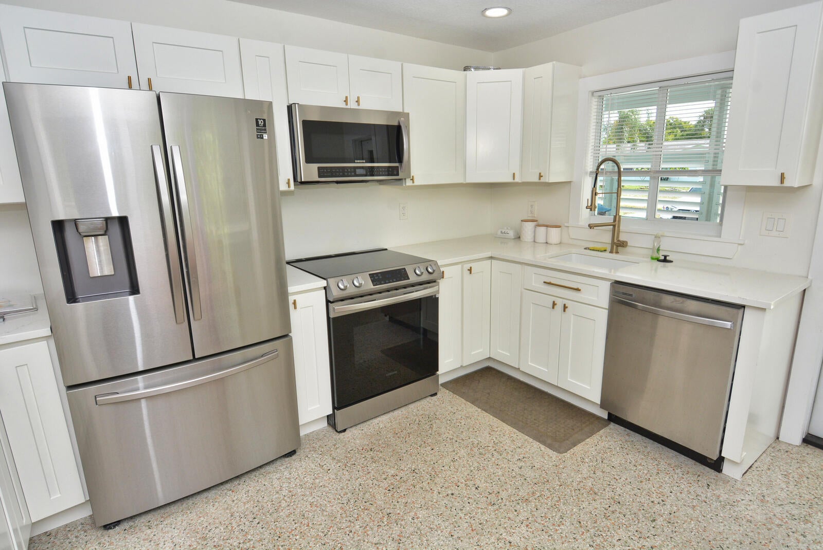 Single family home with 2 driveways 3-bedroom 2 bath on a large corner lot with plenty of room for all your ''toys'' Seconds from downtown Jensen Beach. The home also has a 3-year-old metal roof and AC. Impact Windows, Terrazzo Floors, quarts countertops, and stainless-steel appliance.The beach is 8 minutes away!Seller will be reviewing all offers on Friday September 12, 2025.