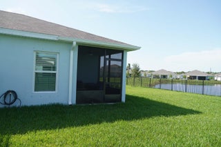Welcome to your dream home! This stunning 2023 property is equipped with numerous upgrades and features that make it stand out from the rest. Enjoy outdoor living with this waterfront home featuring a screened-in lanai and fenced backyard on an oversized lot. This outdoor space is perfect for pets, entertaining guests or simply relaxing. This home boasts many upgrades throughout! Upgraded hurricane windows and doors in addition to plantation shutters ensure peace of mind during hurricane season while also adding to the home's charm and providing additional privacy. The home is thoughtfully designed to be ADA compliant, featuring grab bars and an ADA-compliant toilet for enhanced accessibility and safety. Functional additions include blinds, towel bars, ceiling fans and gutters.Shelving in the two-car garage does not convey. Home also includes a Knock Box. Don't miss out on this incredible opportunity to own a beautifully upgraded home with modern features and thoughtful details. Schedule a viewing today and make this house your new home!