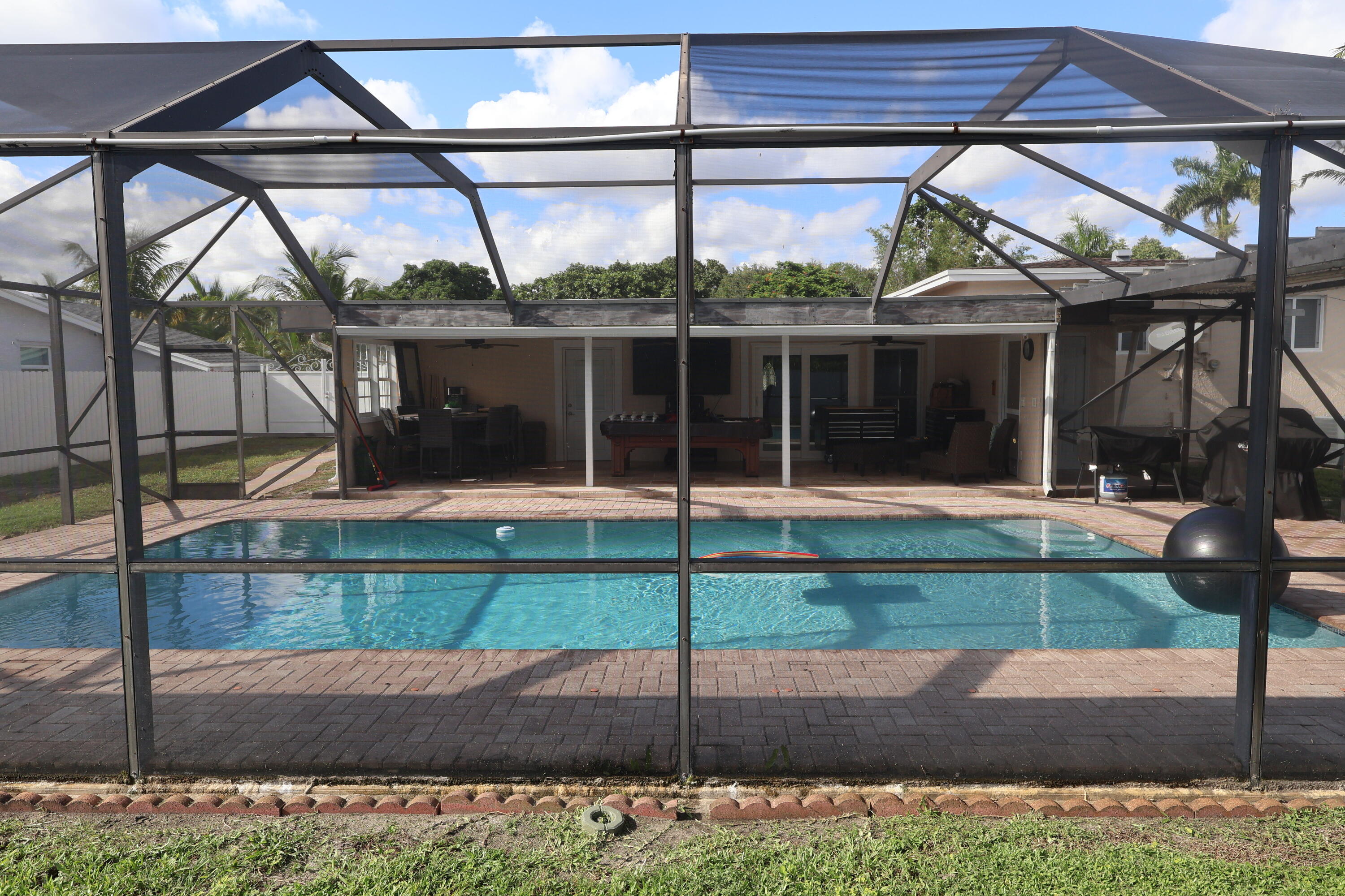 Step into this South Florida retreat! NO HOA! This 4-bedroom, 2.5-bath home sits on a spacious 10,043 sq ft lot and features a screened-in Diamond Bright pool (2018) with a new pump (2022) and a fully screened back patio--ideal for year-round entertaining. The entire property is fully fenced (2017) for privacy. Major upgrades include a new roof (2023), renovated kitchen and flooring (2024), updated plumbing (2018), A/C (2018), and water heater (2025). The lush yard boasts a brand-new irrigation system, plus a shed for extra storage. Fans, chandeliers, and camera system convey--just move in and enjoy!
