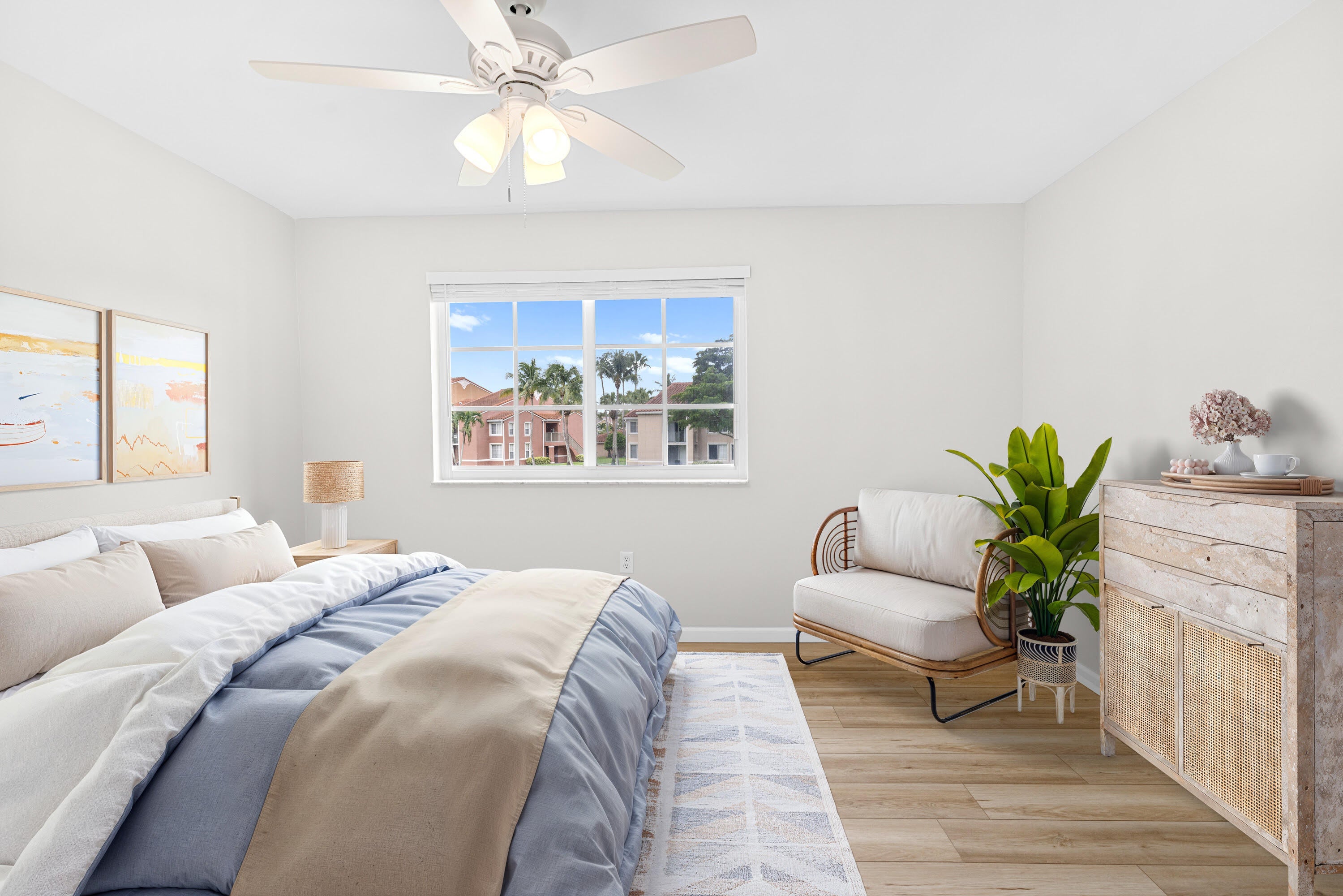 Welcome to this beautifully updated lakefront condo in the sought-after St. Andrews at Boynton Beach community. Offering 1 bedroom and 1 bath across 729 sq. ft., this home has been refreshed with new paint, vinyl flooring, cabinetry, modern lighting, and a new water heater. The kitchen is equipped with updated appliances, while impact-resistant windows and doors provide comfort and peace of mind. Enjoy relaxing lake views from your living space in a residence that blends style and practicality. The community offers a pool, racquetball, and secure guardhouse access, along with building insurance, maintenance, and trash collection. A move-in-ready option in a convenient location, perfect for enjoying everyday living with ease.
