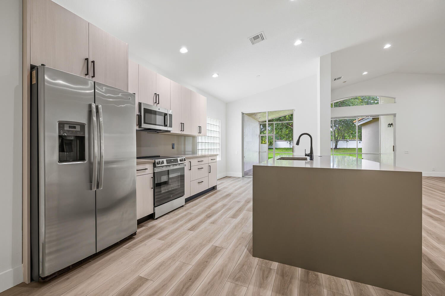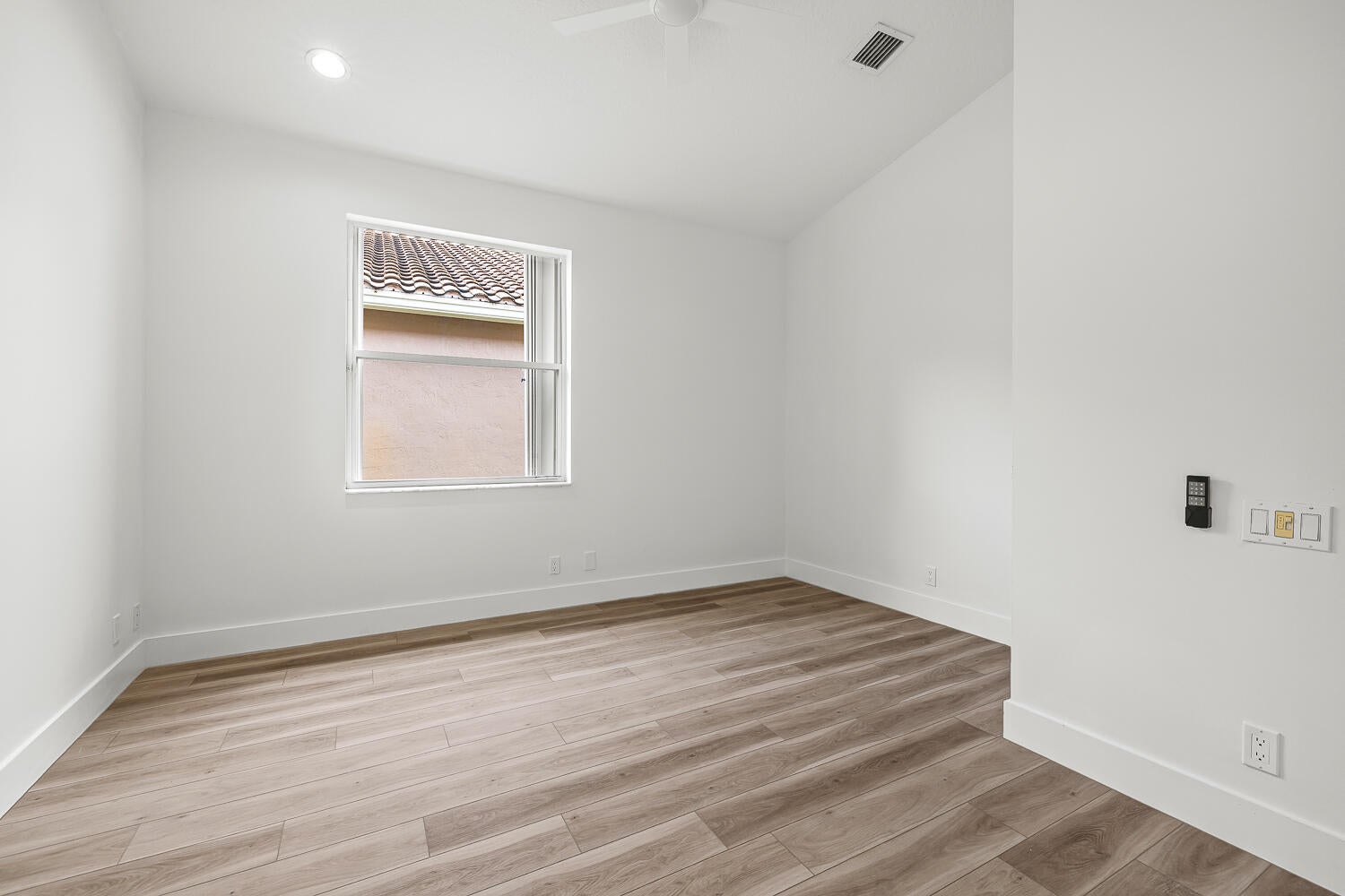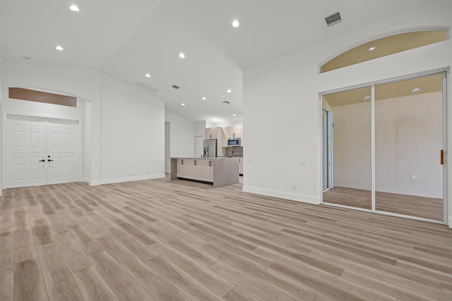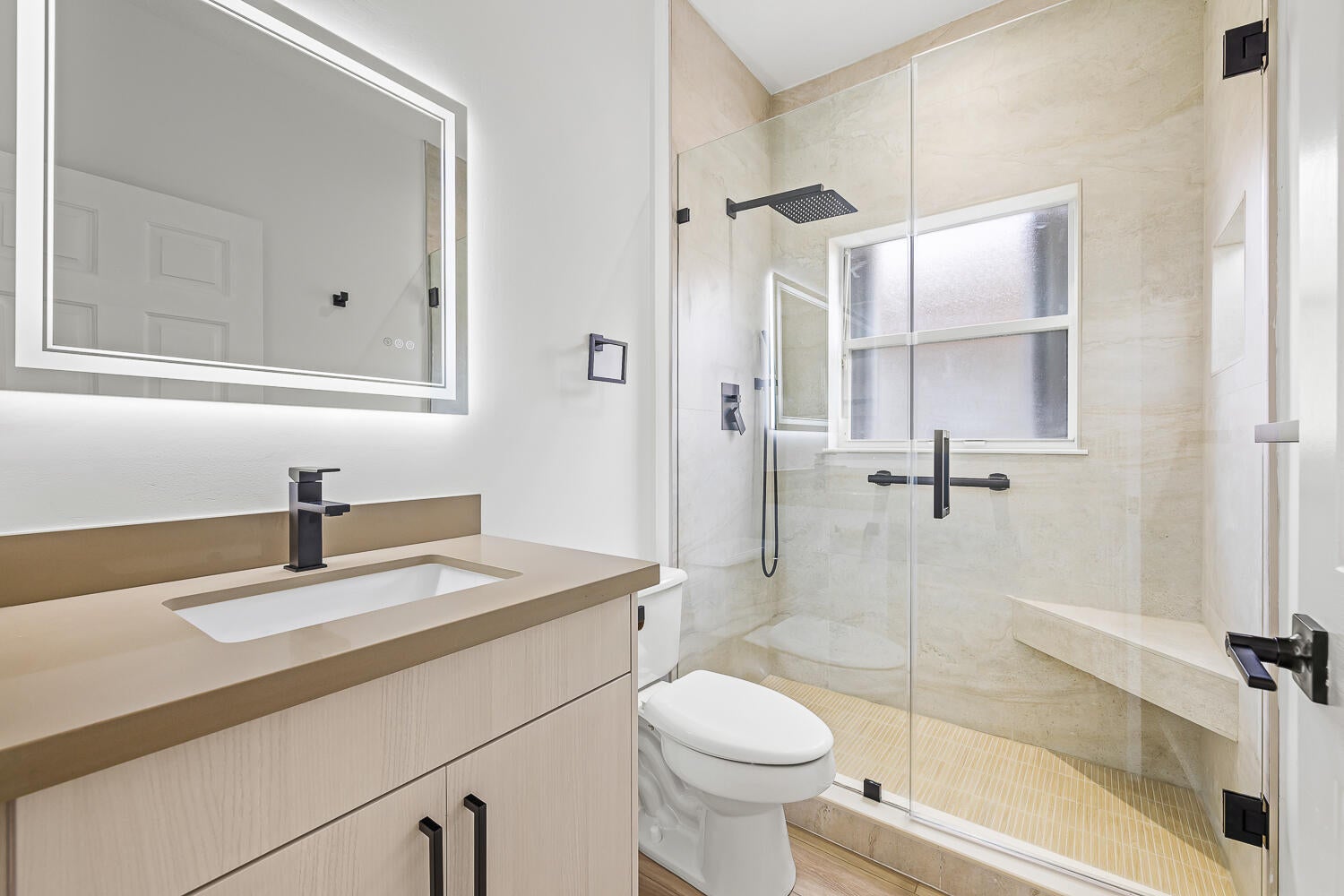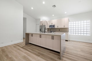 Welcome to this beautifully renovated home featuring 3 spacious bedrooms, 2 full bathrooms, and soaring high ceilings that enhance the open, airy feel throughout. The open-concept layout includes a modern kitchen with a central island and large dining area--ideal for entertaining.Spa-inspired bathrooms showcase elegant ceramic finishes and rainfall showers for a luxurious retreat. Smart home features include eco-friendly lighting, ceiling fans with app/remote control, and a multi-access smart lock system (fingerprint, passcode, smartphone, key fob, or remote).The landscaped garden includes automatic lighting, extending your living space outdoors. Stylish, functional, and move-in ready--this home is a must-see!
