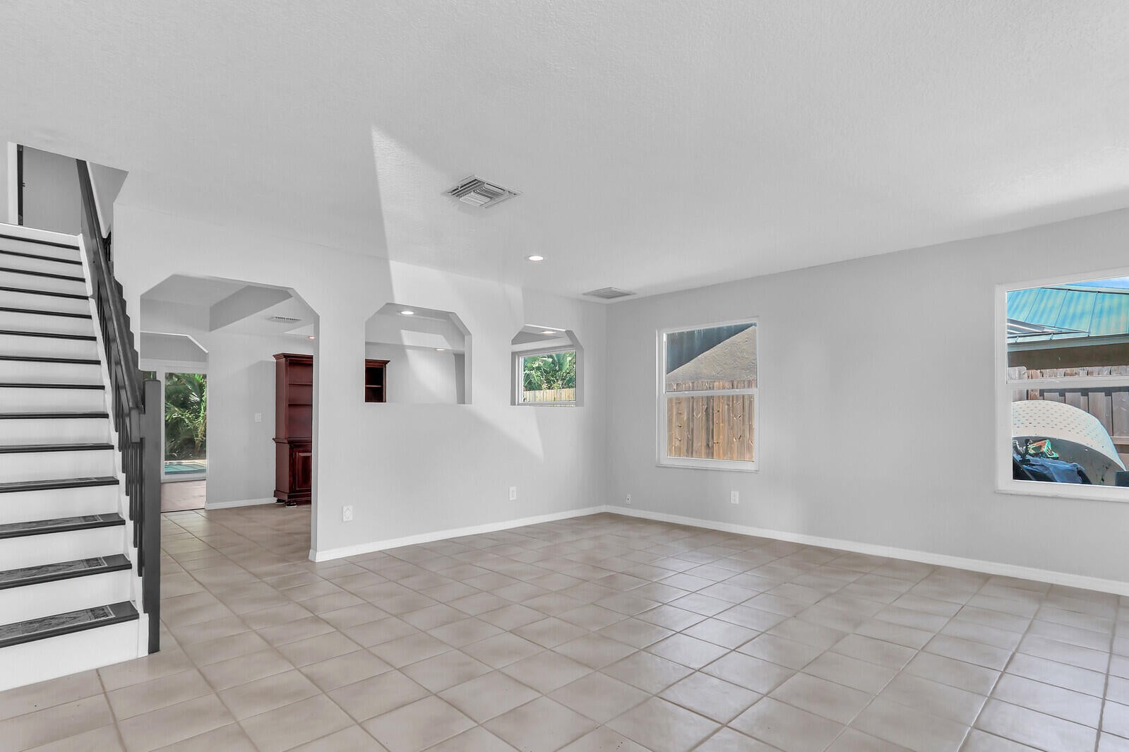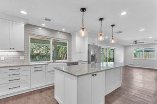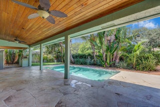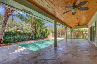 This spacious 4-bedroom, 2.5-bath pool home offers comfortable living in the heart of Palm Beach Gardens with no HOA. A 480 sq. ft. bonus area has been thoughtfully created in the garage, providing a flexible in-law suite, office, or recreation space -- easily convertible back to a full garage if desired.The updated kitchen features soft-close wood cabinetry with pull-outs, quartzite countertops, a farmhouse sink, new range and oven, newer refrigerator, washer, and dryer, plus a brand-new convection oven. A walk-in pantry provides excellent storage. The master bath has been tastefully remodeled, and the home boasts LED lighting throughout.Additional upgrades include: impact windows on the first floor, whole-house interior paint, central vac, generator hook-up (120v),and two newer AC systems (4-ton and 3-ton). Roof replaced in 2020. Hot water heater 2017. Outdoors, enjoy the private chlorine pool, storage shed, and a lush tropical yard with pineapple plants(white and yellow), coconut palms, papaya trees, and even a blackberry bush. Rainwood is an intimate community of only 49 homes, ideally located near top-rated schools, Palm Beach Gardens Hospital, world-class beaches, shopping, dining, and easy access to I-95.