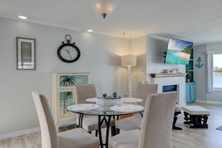 Coastal Sophistication with Stunning Lake Views! This beautifully updated home offers a perfect blend of elegance and comfort, highlighted by serene lake views from the living room and a seamless open floor plan. Expansive bay windows flood the space with natural light, while plank flooring throughout the main living areas adds a modern, cohesive touch. The inviting electric fireplace serves as a stylish focal point, creating a warm ambiance year-round. A sliding glass door leads to a fully enclosed, tiled porch--ideal for enjoying morning coffee or evening sunsets overlooking the lake. The kitchen and bathrooms feature updated cabinetry, offering both style and functionality. Additional highlights include a double carport, a newer roof, and A/C system for peace of mind.