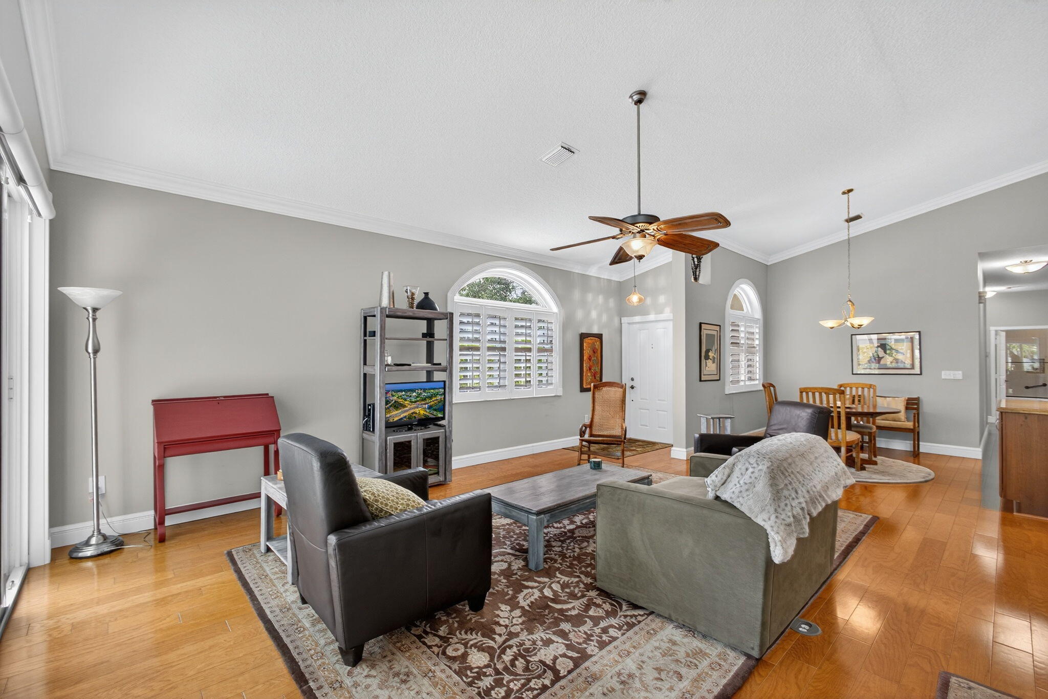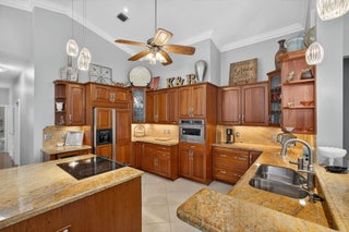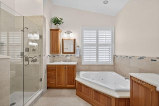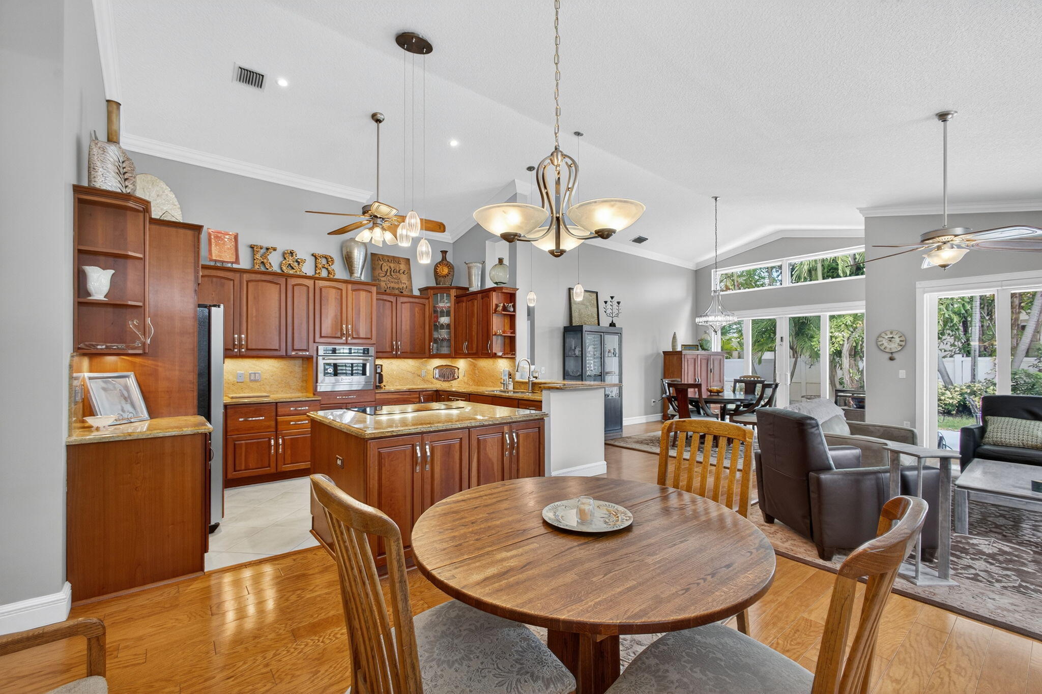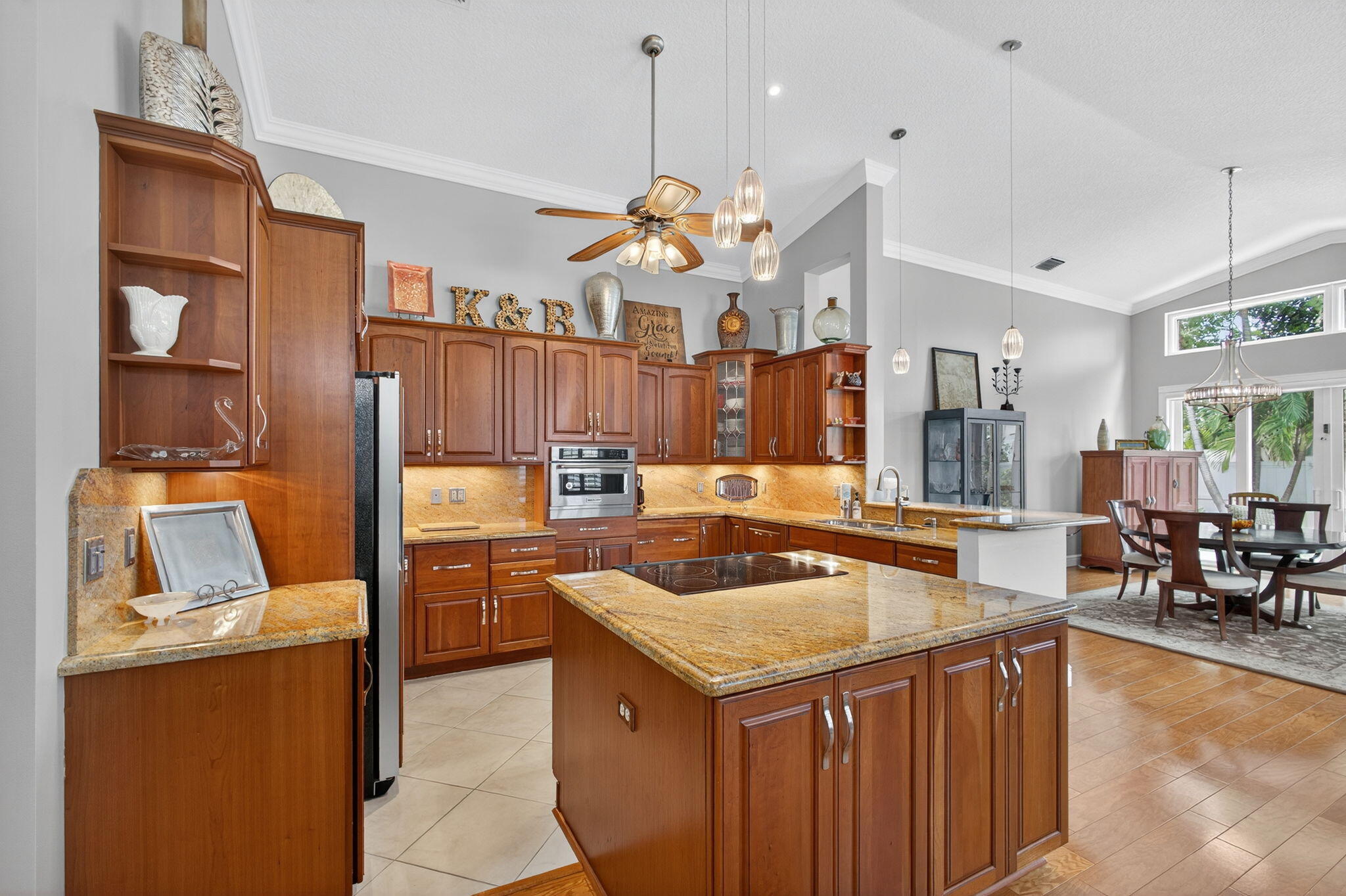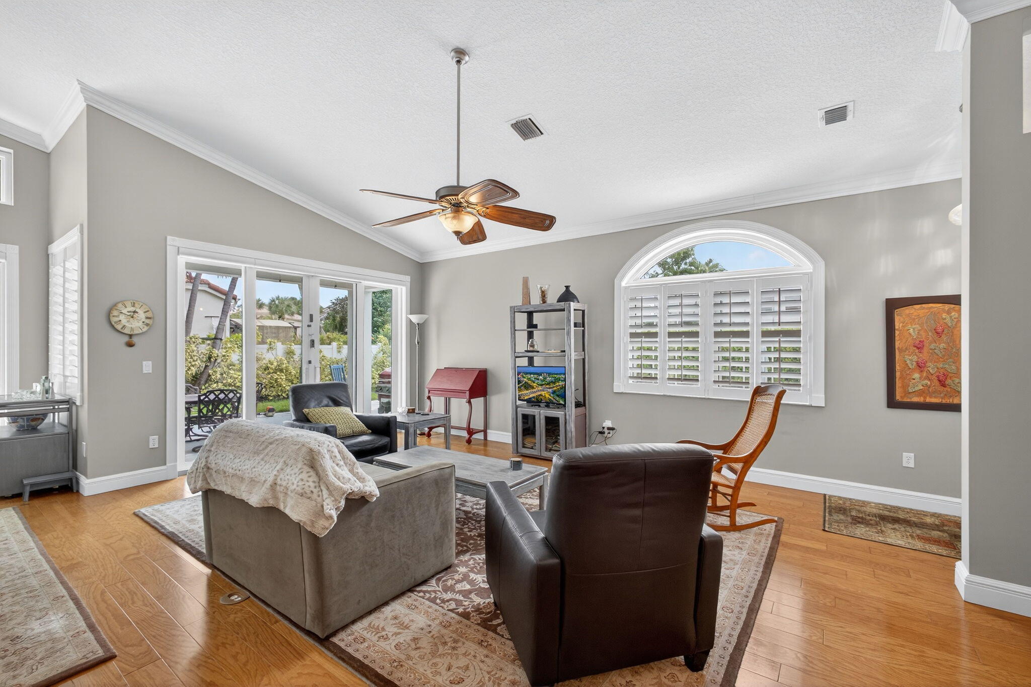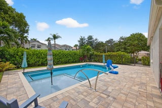 Spectacular 4-Bedroom Pool Home with Newer Roof and Impact Glass in the Classics at Bear Lakes! Welcome to your very own private paradise in the heart of West Palm Beach! Perfectly nestled on a premium corner lot in this exclusive golf gated community, this meticulously maintained 4 bedroom, 2 bath, single story residence offers nearly 2,100 SF of beautifully designed living space, thoughtfully curated for both comfort and style. From the moment you enter, you'll be greeted by vaulted ceilings, a flood of natural light, and a warm, inviting ambience. Many details throughout including engineered hardwood floors, elegant crown molding, Plantation shutters and custom finishes that elevate each room. The gourmet kitchen, open to both dining and family room, features soft-close wood cabinetry,under cabinet lighting, granite countertops, a large center island, dazzling pendant lighting, and built-in stainless-steel appliances - an entertainer's dream and a chef's delight. The oversized primary suite boasts marble tile flooring, custom walk-in closets and serene bathroom with dual vanities, a jetted soaking tub, and frameless glass shower. This desirable split floor plan offers three additional bedrooms, a beautifully updated guest bath, and a well-appointed laundry room with Maytag washer and dryer, tons of cabinetry and laundry sink. Step outside and indulge in your private backyard retreat! The fully fenced yard is a sanctuary of tranquility, framed by mature Calusa trees and lush landscaping. An oversized saltwater pool (installed in 2020), complete with both heater and chiller, and custom paver patio offer ample space for sun-soaked lounging, outdoor cookouts and pool parties. Every detail has been carefully considered by the original owners, with recent upgrades including a newer roof (2017), all impact glass windows and doors, fresh interior paint, upgraded 5 ¼" baseboards and a tankless water heater - ensuring peace of mind, making this home completely move-in ready! Experience the epitome of Florida luxury living in this one-story residence, ideally located minutes from world-class golf, upscale shopping and dining, PBI Airport, vibrant downtown West Palm Beach and sparkling South Florida beaches.