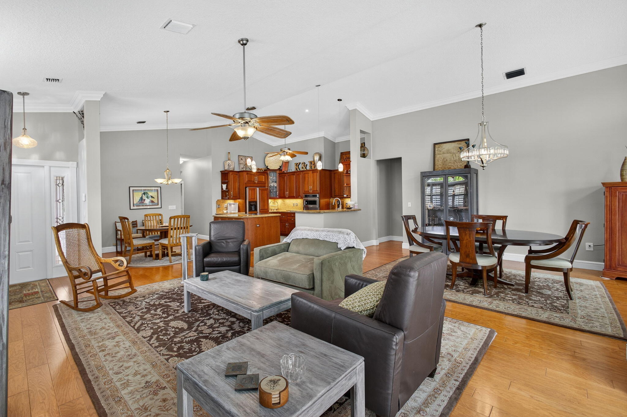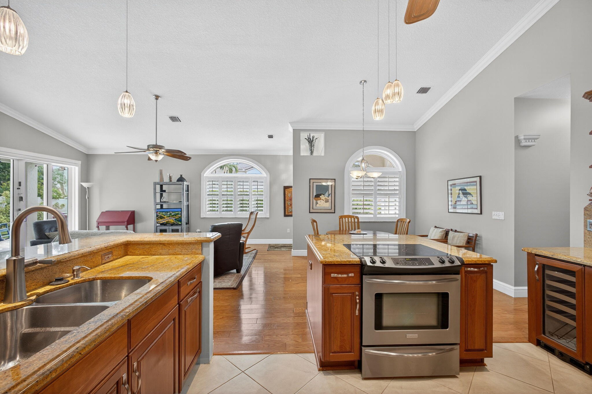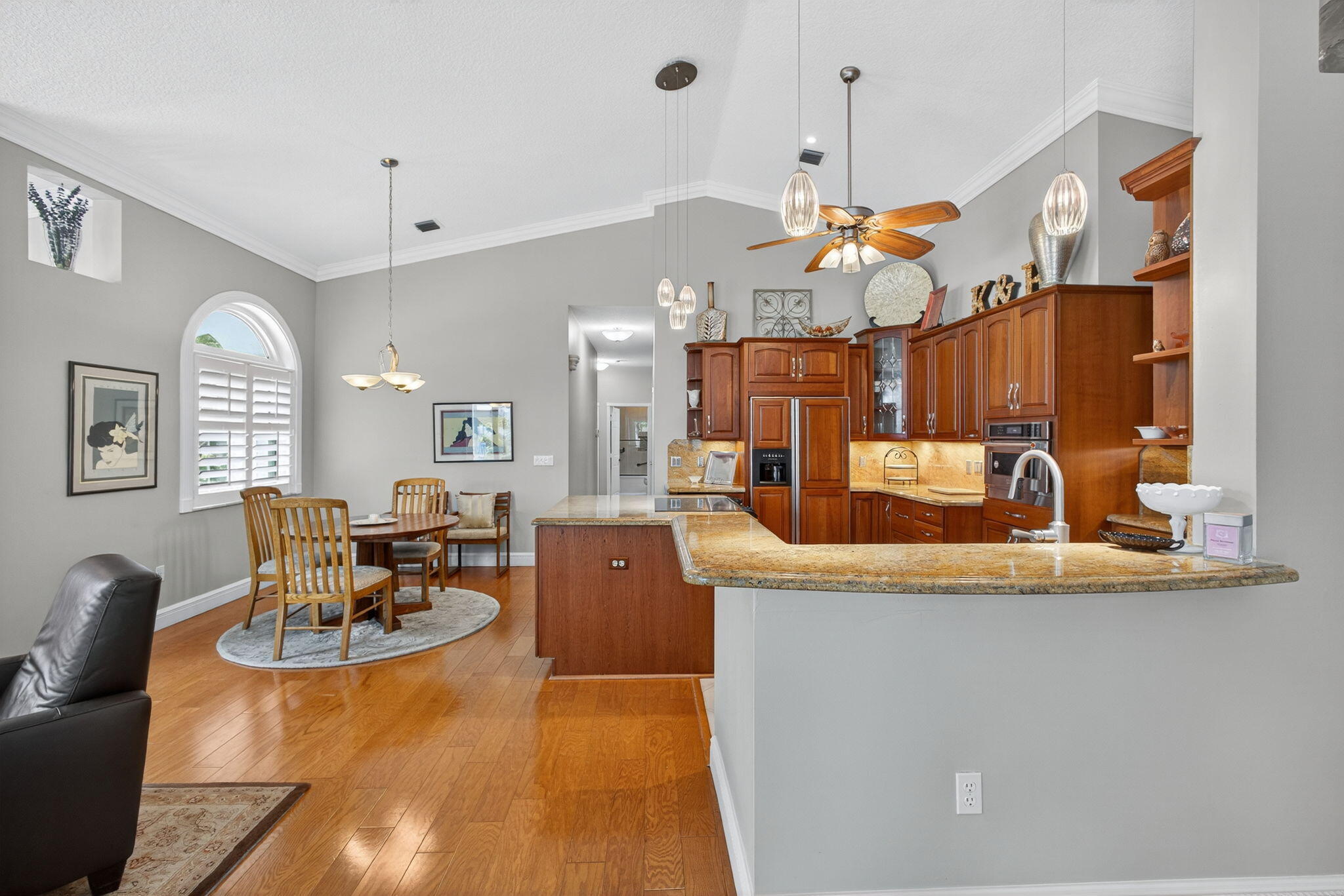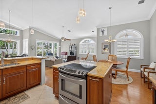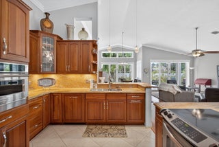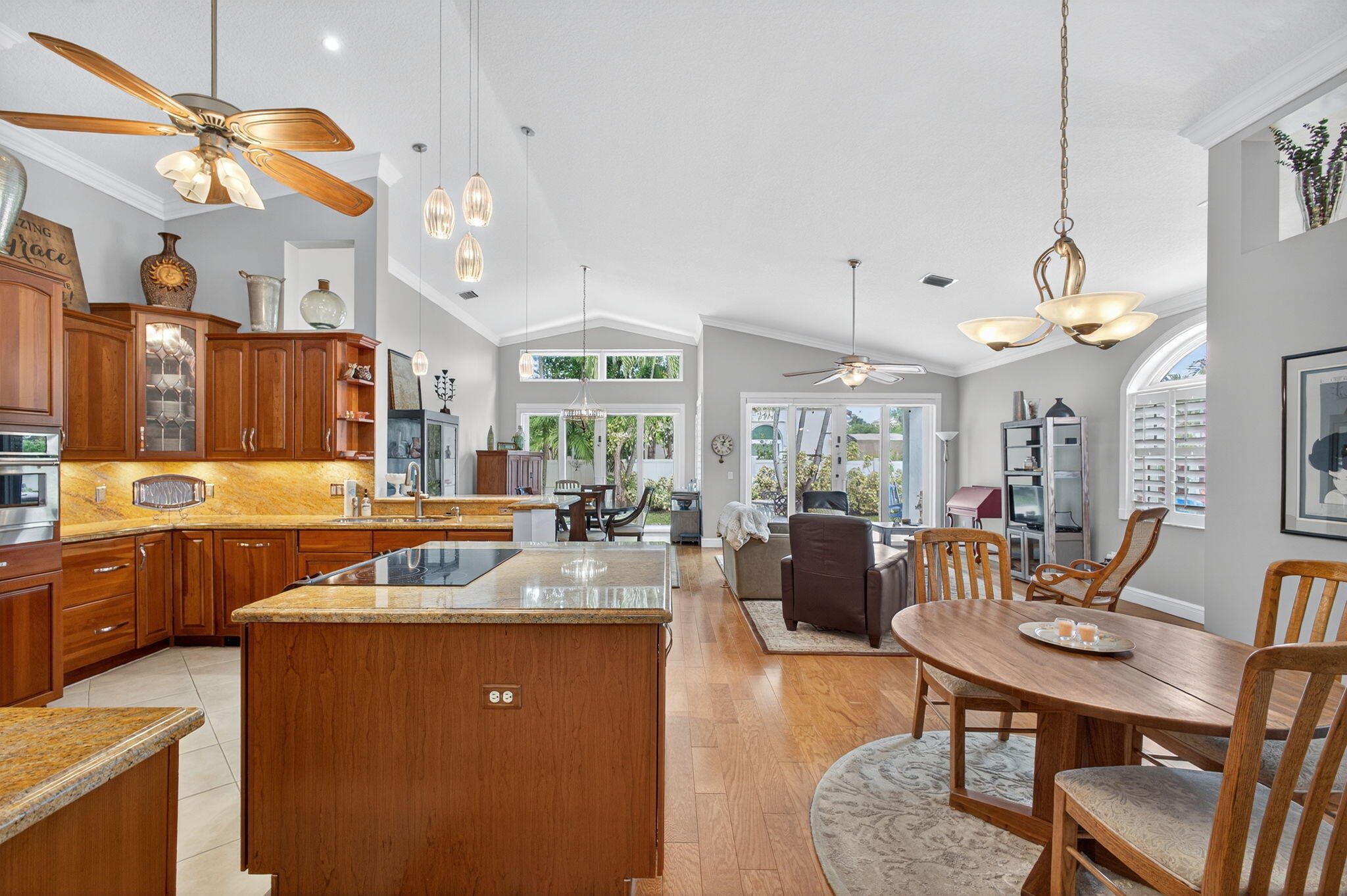 Spectacular 4-Bedroom Pool Home with Newer Roof and Impact Glass in the Classics at Bear Lakes! Welcome to your very own private paradise in the heart of West Palm Beach! Perfectly nestled on a premium corner lot in this exclusive golf gated community, this meticulously maintained 4 bedroom, 2 bath, single story residence offers nearly 2,100 SF of beautifully designed living space, thoughtfully curated for both comfort and style. From the moment you enter, you'll be greeted by vaulted ceilings, a flood of natural light, and a warm, inviting ambience. Many details throughout including engineered hardwood floors, elegant crown molding, Plantation shutters and custom finishes that elevate each room. The gourmet kitchen, open to both dining and family room, features soft-close wood cabinetry,under cabinet lighting, granite countertops, a large center island, dazzling pendant lighting, and built-in stainless-steel appliances - an entertainer's dream and a chef's delight. The oversized primary suite boasts marble tile flooring, custom walk-in closets and serene bathroom with dual vanities, a jetted soaking tub, and frameless glass shower. This desirable split floor plan offers three additional bedrooms, a beautifully updated guest bath, and a well-appointed laundry room with Maytag washer and dryer, tons of cabinetry and laundry sink. Step outside and indulge in your private backyard retreat! The fully fenced yard is a sanctuary of tranquility, framed by mature Calusa trees and lush landscaping. An oversized saltwater pool (installed in 2020), complete with both heater and chiller, and custom paver patio offer ample space for sun-soaked lounging, outdoor cookouts and pool parties. Every detail has been carefully considered by the original owners, with recent upgrades including a newer roof (2017), all impact glass windows and doors, fresh interior paint, upgraded 5 ¼" baseboards and a tankless water heater - ensuring peace of mind, making this home completely move-in ready! Experience the epitome of Florida luxury living in this one-story residence, ideally located minutes from world-class golf, upscale shopping and dining, PBI Airport, vibrant downtown West Palm Beach and sparkling South Florida beaches.