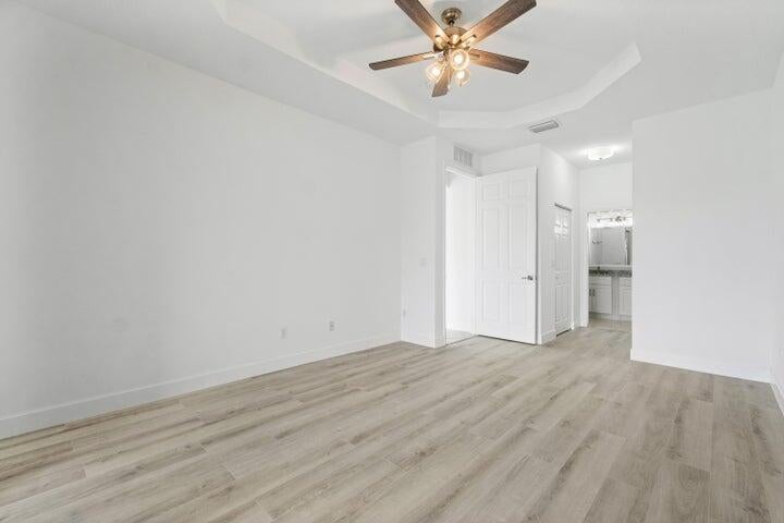 Rent includes HOA fee, gate guard, basic cable TV, internet, and lawn care. Bright, fully remodeled 3BR/2BA lakefront home with upgraded flooring throughout, no carpet. Two laundry areas: one near bedrooms with new cabinetry, another in garage. Spacious primary suite with stunning lake views, patio access, two walk-in closets, dual vanities, and walk-in shower. Kitchen features new stainless steel appliances and two eat-in areas. Open living space with sliding doors to patio and backyard. 2-car garage plus extended driveway. Rent includes landscaping, basic cable, WiFi, 24/7 gated security, heated pool, spa, sauna, fitness center, tennis, billiards & more! Convenient to I-95, Turnpike, PBI Airport, shopping, dining ,more. Yes HOA application and no HOA approval required!