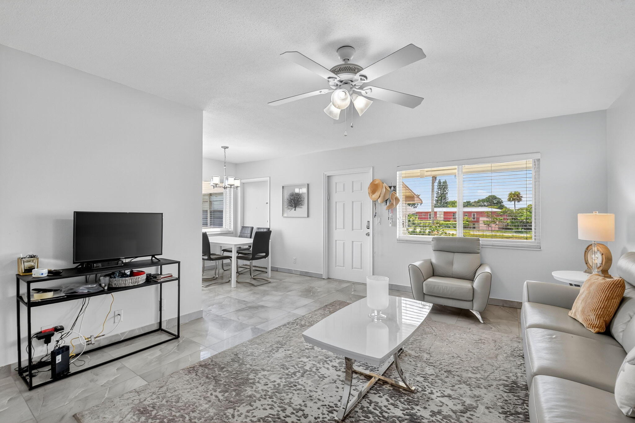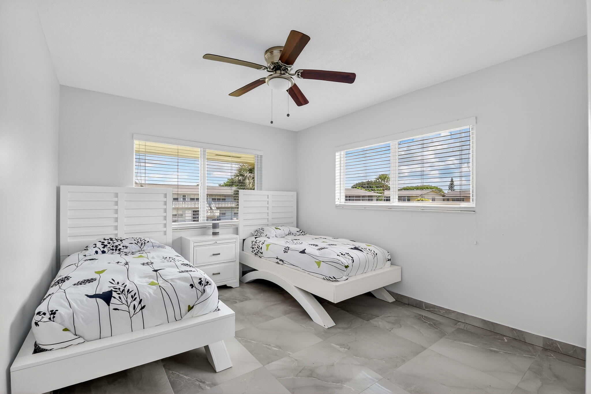 LOCATION! LOCATION! UPDATED, FURNISHED SECOND FLOOR CORNER 2BED 1.5 BATH. STUNNING LARGE TILE THROUGHOUT, STAINLESS STEEL APPLIANCES, UPDATED BATHROOMS.HURRICANE IMPACT WINDOWS BEAUTIFUL, NEW, CONTEMPORARY FURNITURE, CENTRAL AIR. STEPS TO CLUBHOUSE AND THE HAVERHILL GATE. RENTABLE FROM DAY ONE. LOCATED IN CENTURY VILLAGE A GATED COMMUNITY FOR ACTIVE ADULTS 55+. CLUBHOUSE features a theater, indoor pool, card room, community/party room, billiard room ,shuffle board ,tennis , pickleball ,bocce and two outdoor pools. Numerous heated outdoor pools throughout the community. Separate fitness center with gym , outdoor heated pool and a resistance pool. Two guarded gates and 24 hour roving security patrol. GREAT LOCATION: close to shops, restaurants, PBI airport and beaches.