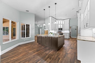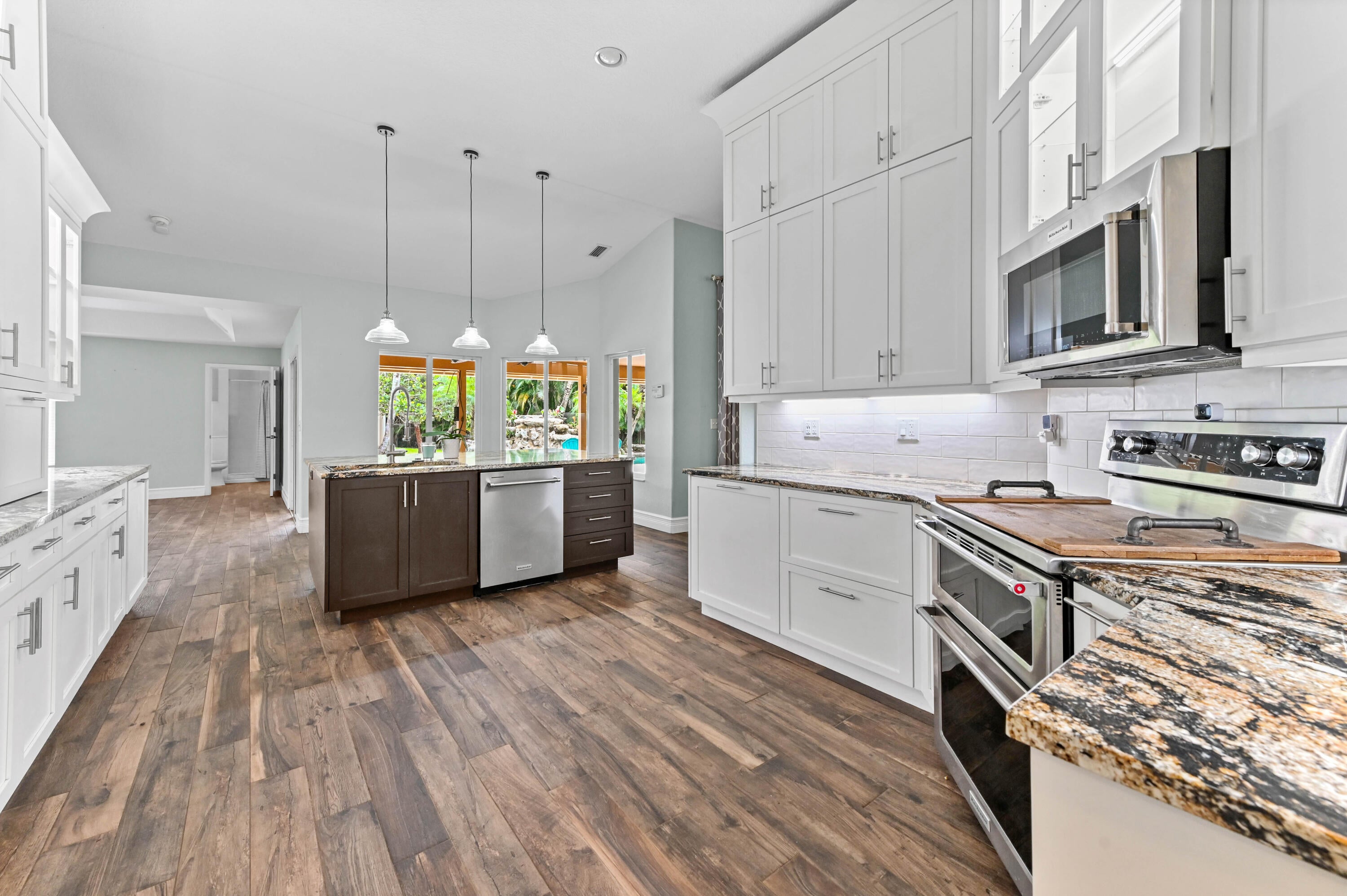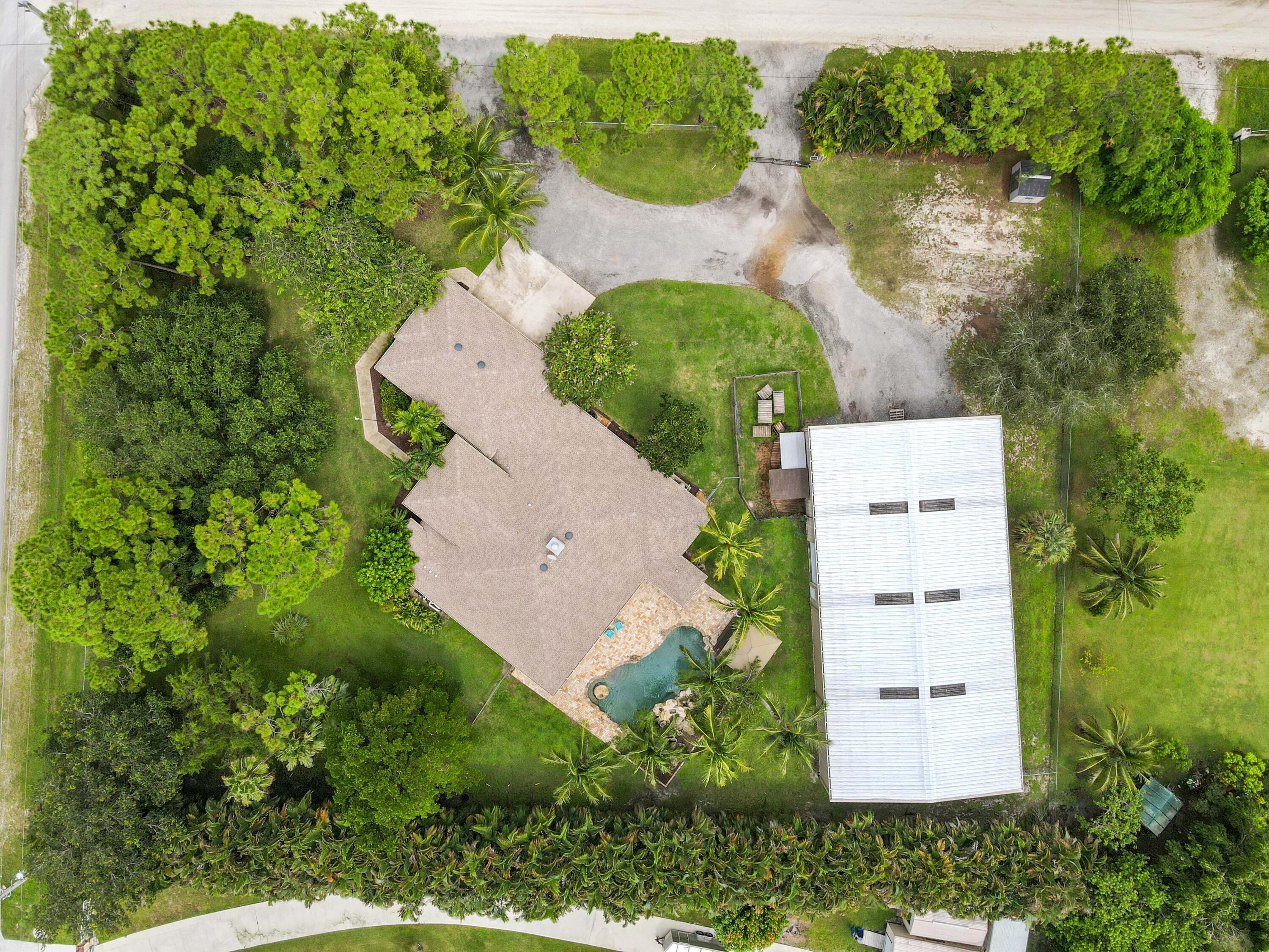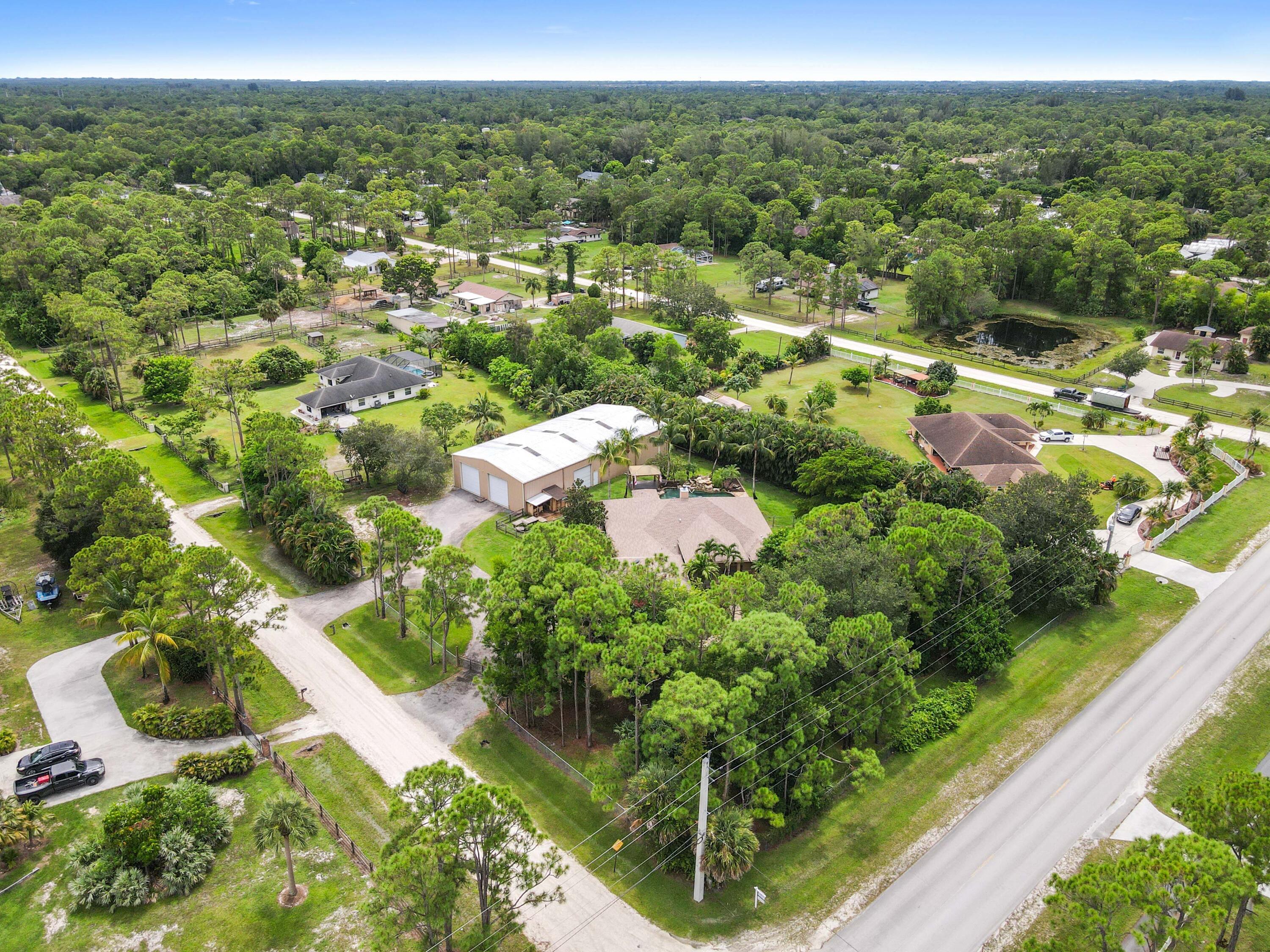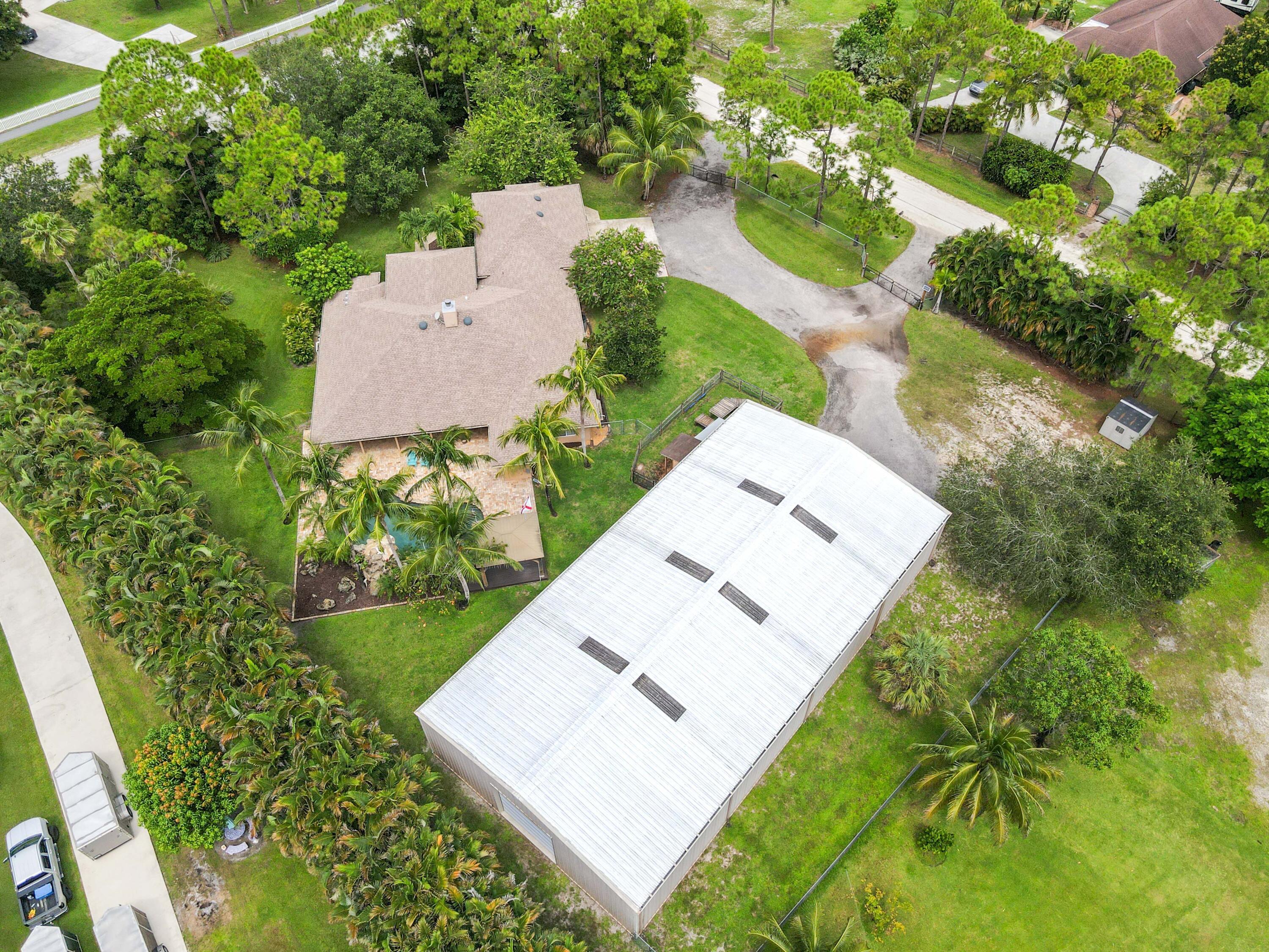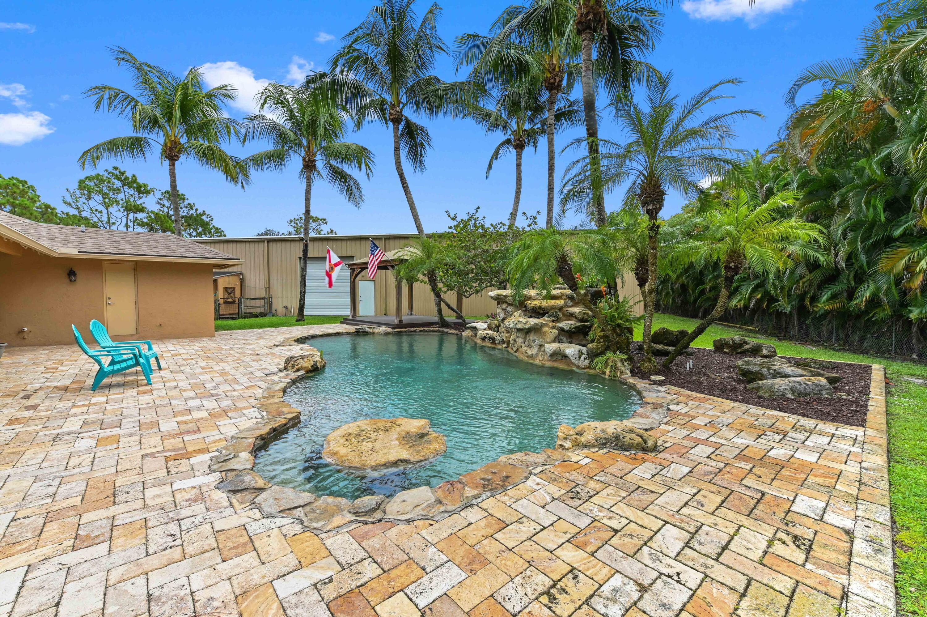 Welcome to this incredible single-family pool home with an oversized attached garage & a huge detached 5,000 sq ft garage/workshop, a true masterpiece of space and serenity, perfectly situated on a prime corner lot spanning 1.75 acres in The Acreage. With a new roof (2023) and no HOA to contend with, you'll enjoy peace of mind along with unparalleled freedom and privacy. This residence features 4 bedrooms and 3 full bathrooms, meticulously designed to offer both comfort and elegance. The spacious and open living area serves as the heart of the home, complete with a cozy fireplace and a sliding door that provides seamless access to the patio.The adjacent formal dining area is perfect for hosting memorable gatherings, while the dedicated laundry room adds to the home's effortless functionality. The kitchen is a chef's dream, boasting a large expanded island, gleaming granite countertops, and an abundance of custom cabinets for all your storage needs. A separate, spacious family room with a stylish cove ceiling offers a perfect space for casual get-togethers or a quiet retreat. The home's thoughtful split-bedroom design ensures privacy for everyone, with each bedroom offering a comfortable sanctuary. The large main bedroom is a luxurious escape, featuring 2 generous walk-in closet and an opulent ensuite bathroom with dual sinks, a separate shower, and a relaxing soaking tub. Step outside and experience your own private resort-style oasis complete with a sparkling pool featuring soothing waterfalls, a gazebo, upgraded travertine decking and a covered patio perfect for outdoor entertaining or quiet evenings by the water. Beyond the oversized attached garage, a detached 5,000 sq ft garage and a separate storage building provide ample space for vehicles, tools, hobbies or could be the perfect space for a business owner. Recent upgrades ensure a turn-key experience, including new flooring (2021), a new gazebo (2021), a newer AC and water heater (2018), and upgraded appliances like the washer, dryer (2019), microwave, and dishwasher (2022 and 2023). Located just minutes from fine shopping, dining, and more, this home offers the perfect blend of country living with urban convenience.