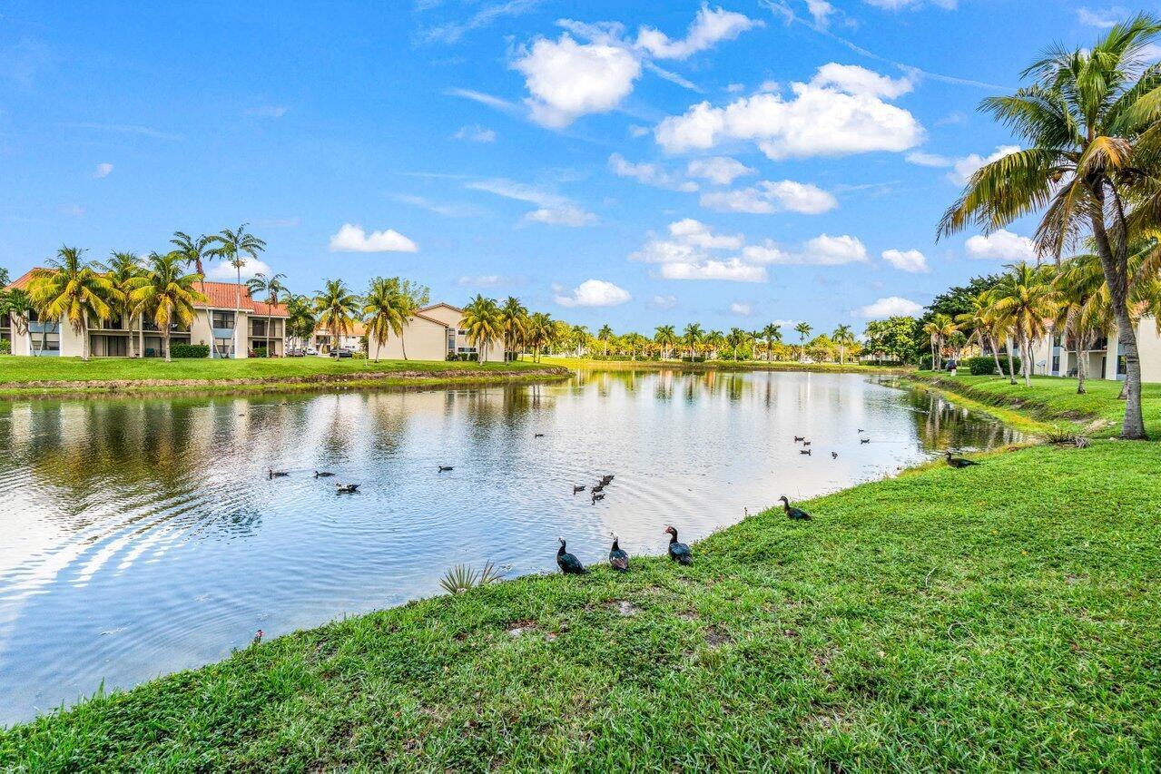 Welcome to Palm Beach Grande! This well-maintained 2 bedroom, 2 bathroom corner condo offers both comfort and convenience in a highly desirable location. Inside, you'll find a spacious layout with tiled living areas, wood cabinetry, granite countertops, and stainless steel appliances. A washer and dryer are included in the unit for everyday ease. Step out onto your private balcony and enjoy peaceful water views, the perfect spot for morning coffee or unwinding in the evening.Palm Beach Grande residents enjoy a wide range of amenities including a clubhouse, fitness center, swimming pool, tennis courts, basketball, playground, and on-site laundry facilities. The community is centrally located near the Turnpike, Wellington, shopping, dining, and top-rated schools all within closeclose reach. Investor friendly, can be rented immediately after purchase! quick approval.