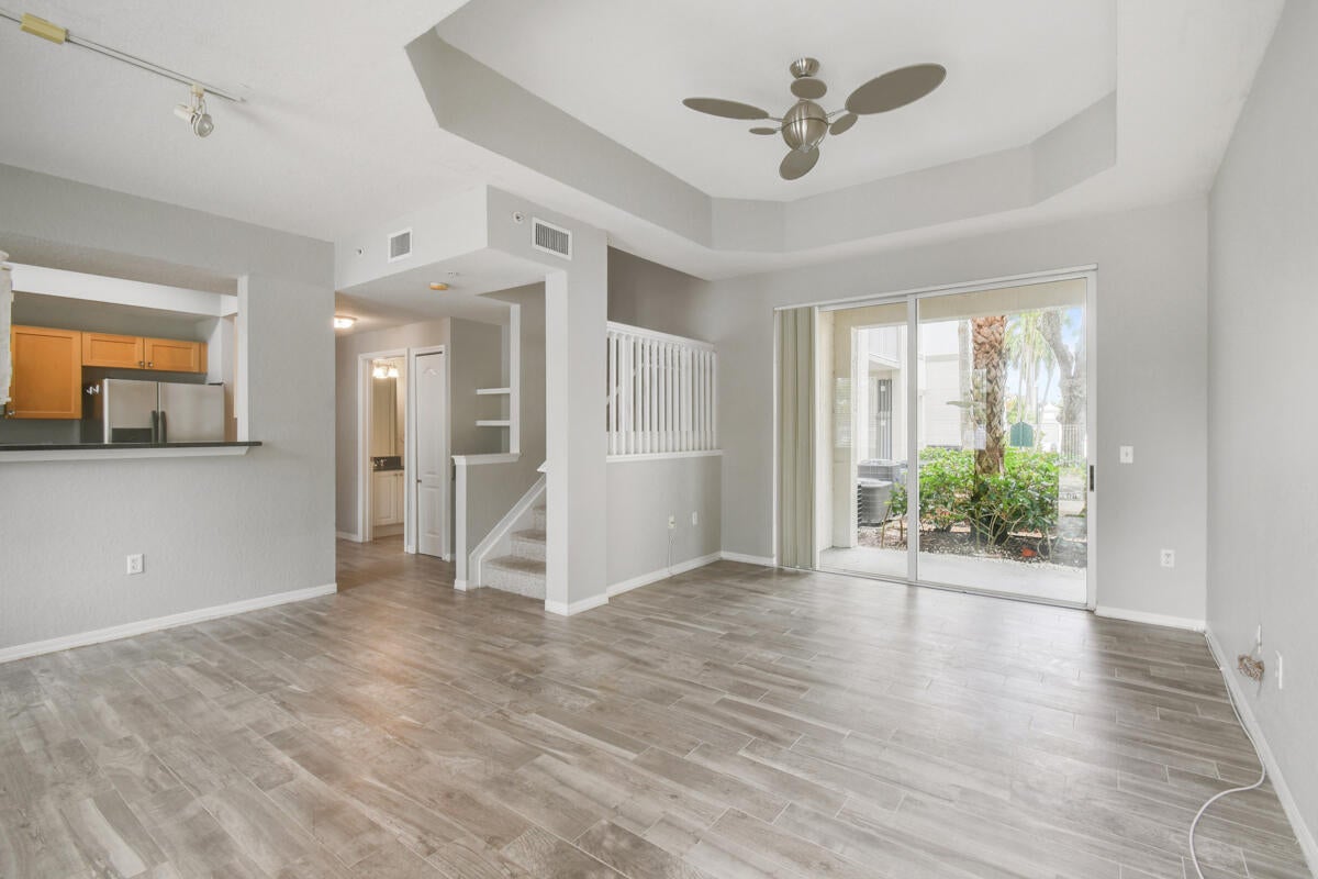 Newly available 3 bedroom2.5 bath condo with ONE CAR ATTACHED GARAGE in the heart of PBG in Legacy Place. The condo offers tile plank flooring on first floor, corner unit custom closets, granite counters & stainless steel appliances.You will love the ammenties that include pool, tennis, pickelball, gym & club house. Centrally located to shopping, I-95, restaurants and much more.