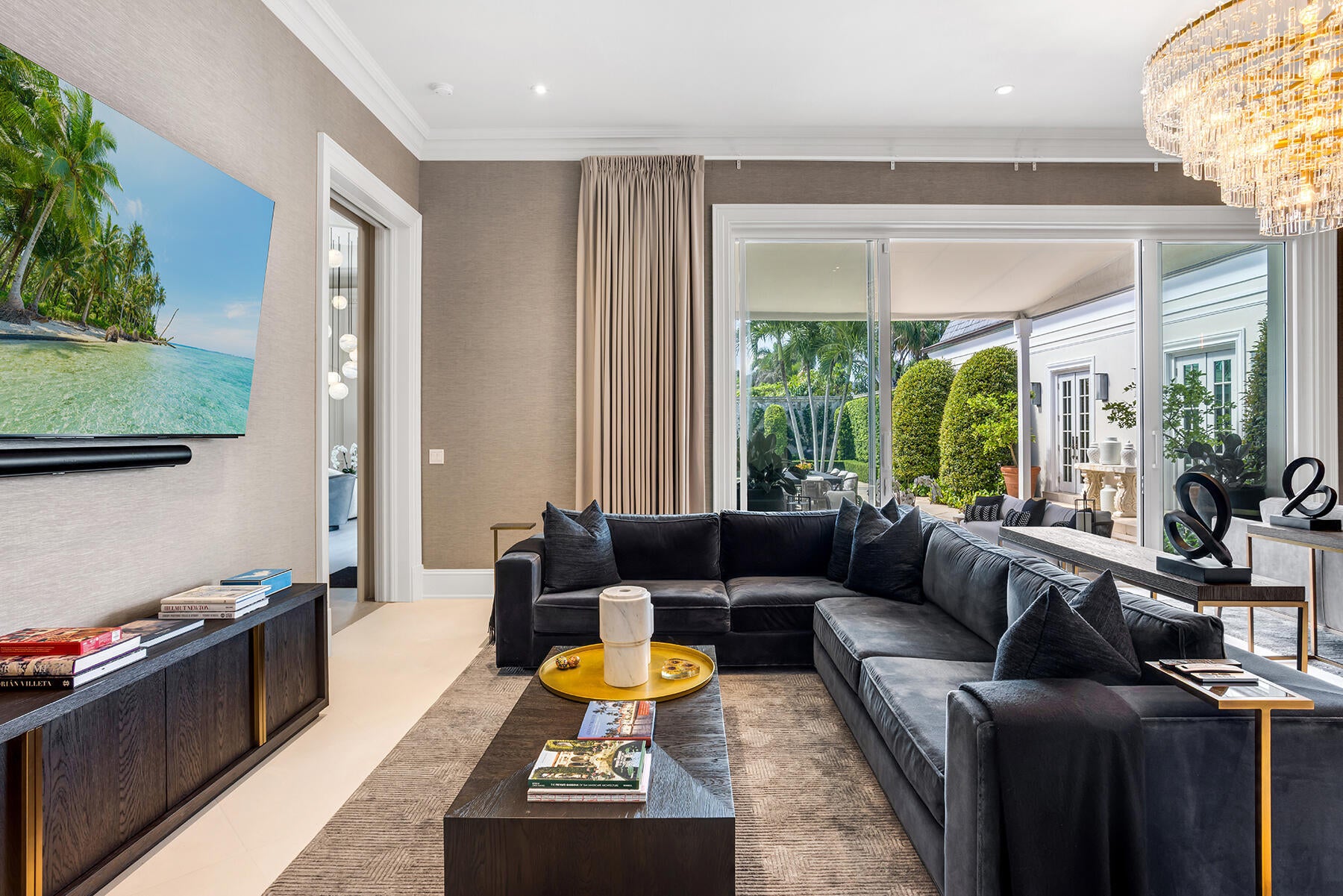 Tucked away on one of Palm Beach's most coveted cul-de-sacs and just a short stroll from the vibrancy of town, 134 Casa Bendita is a turn-key and timeless architectural jewel that seamlessly blends classic elegance with modern sophistication.From the moment you arrive, this stunning home captivates with its impressive street appeal, a grand facade, and meticulously curated designer landscaping that sets the tone for what lies within. Step inside to soaring 18-foot ceilings and a voluminous, sun-drenched great room, a true showstopper - and the heart of the home - which is both dramatic and inviting. Providing unparalleled indoor-to-outdoor living on an oversized lot, the residence is perfectly suited for both refined entertaining and quiet repose.The spectacular chef's kitchen, outfitted with premium Wolf and Sub-Zero appliances, sleek custom cabinetry, and a generous island ideal for culinary pursuits, pairs with an adjacent butler's pantry to enhance functionality and ensure seamless entertaining. Offering four bedrooms and four and a half baths, every room is thoughtfully proportioned and exquisitely finished. A beautiful wine cellar and multiple outdoor entertaining areas set amidst an expansive oversized lot elevate the lifestyle here. The grounds are a tropical haven, complete with lush landscaping, private lounging spaces, and tranquil garden paths. Additional features include a pristine two-car garage, a discreet enclosed carport, and a host of bespoke finishes throughout that speak to the home's enduring sophistication and attention to detail. Capturing the true essence of quintessential Palm Beach Island living, this move-in ready oasis offers the rare combination of privacy, an A++ near North End location, and timeless design - all creating a legacy residence. And it is all just steps to the Lake Trail, deeded beach access, and the idyllic town of Palm Beach.
