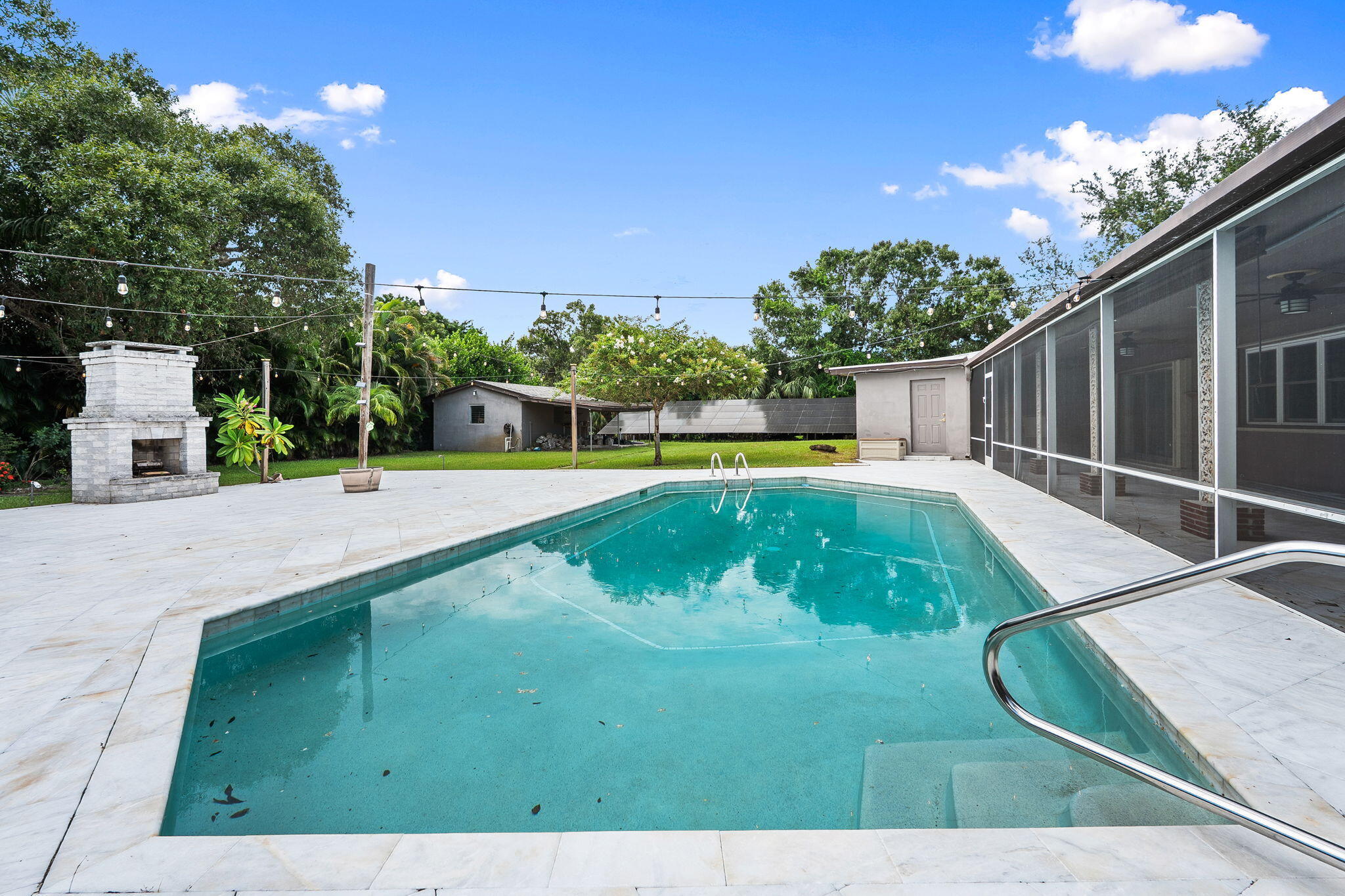 Discover over 4,000 square feet of refined living in this stunning custom estate, perfectly designed with a split floor-plan and timeless upgrades. This home blends modern efficiency with a mid century flare--featuring a metal roof, buried propane tank and paid-off solar panels that power the entire home for sustainable living, with you in control.Entertain in style with your inground pool, expansive yet private .85/acre fenced yard, and a massive marble pool deck complete with a brick outdoor fireplace--the ultimate gathering space. Inside, a dedicated office provides work-from-home convenience, while the chef's kitchen is a true masterpiece: porcelain counters, induction + gas cooktops, Sub-Zero refrigerator, warming drawer, and double oven. You really must see it to appreciate it!