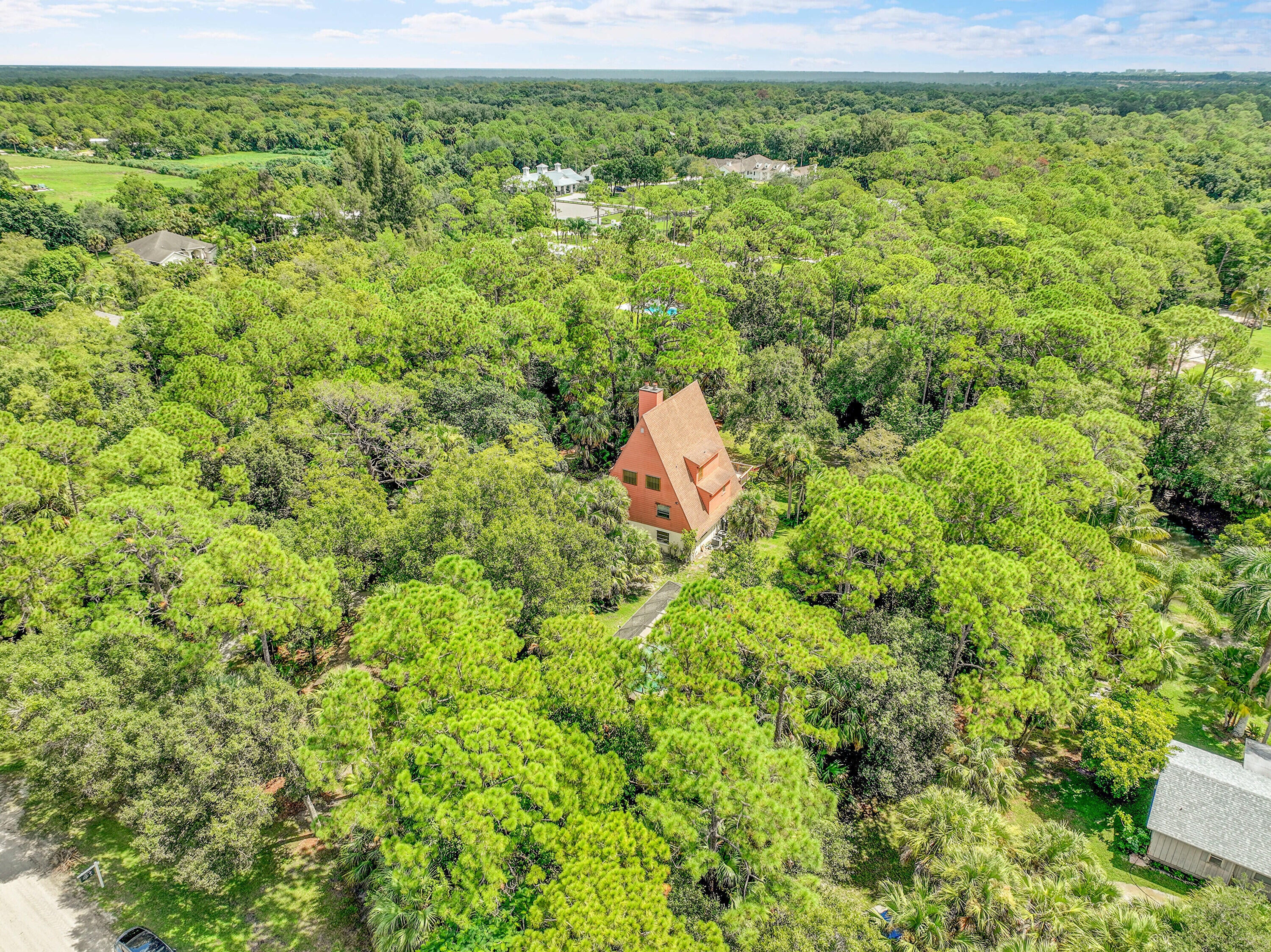 Bring your vision, your family, and your toys to this unique three-story Jupiter Farms retreat! Set on 1.25 acres of privacy, this spacious home offers character, charm, and endless potential. Featuring large rooms, two fireplaces, and a screened-in pool, it's the perfect canvas to create your dream home. There's plenty of space for your boat, RV, or workshop NO HOA and total freedom to make it your own. Surrounded by trees and nature yet minutes from I-95, resturants. shopping, and top schools. Experience the best of Jupiter Farms living space, serenity, and family lifestyle! estate, create extra privacy, or estate, create extra privacy, or build to suit all while enjoying the same tranquil Jupiter Farms setting. Please note: the additional lot is not included in the sale of the home and is offered at an additional cost.