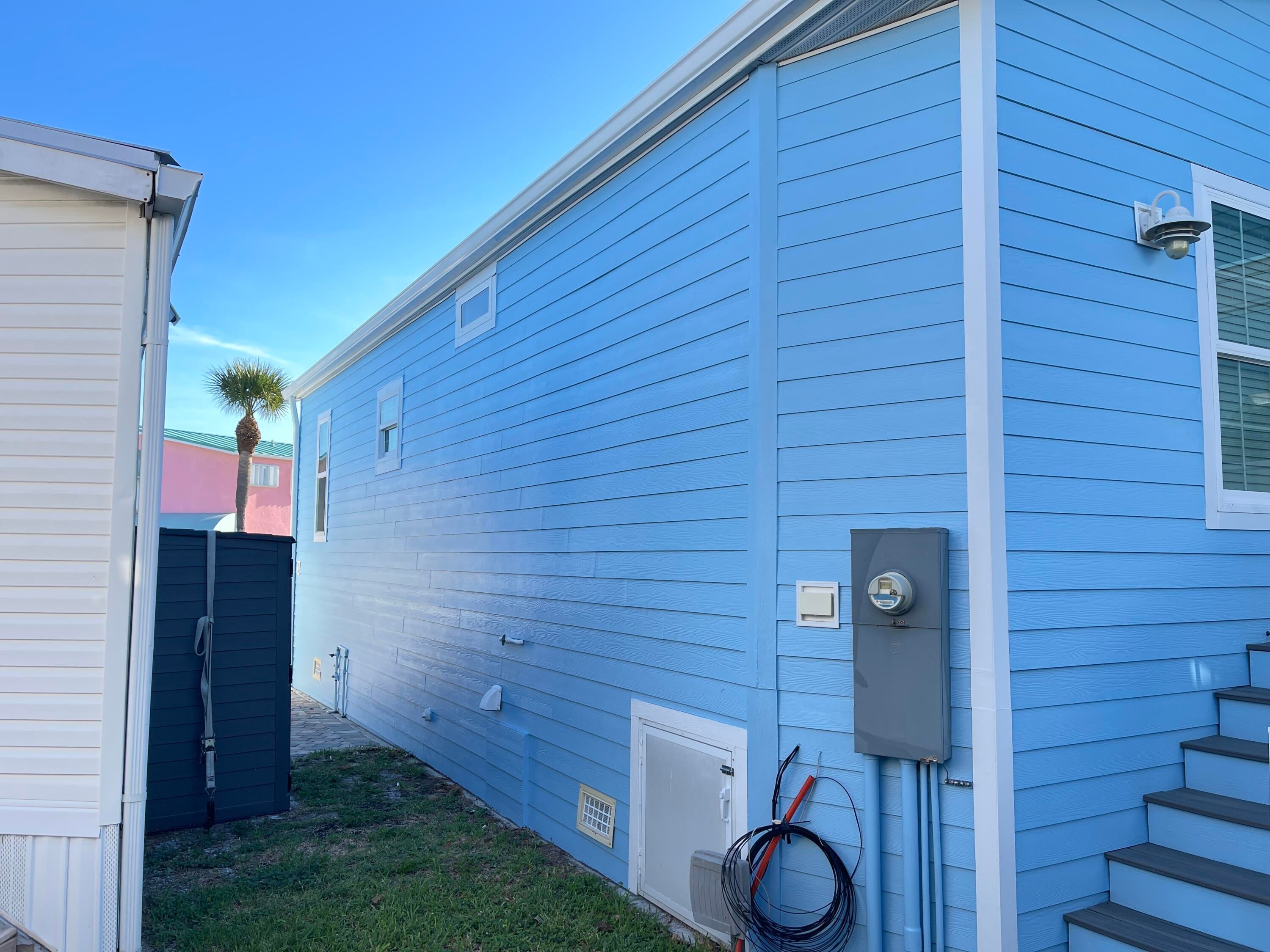 Welcome to Paradise! Freshly Painted !! Located on Nettles Island Resort, a guard-gated river community across the street from the Atlantic Ocean. This 2017 Jacobsen Modular Home features impact-resistant windows and doors along with a Hardie board exterior. A connected porch enhances outdoor living, with clear sightlines to stunning views. Additionally, under-house storage offers ample space for belongings. Turnkey and ready to move your furniture in. Nettles Island offers so many fun activities, including two heated swimming pools--one on the ocean with beach access--tennis, pickleball, horseshoes, line dancing at the beach, a large clubhouse, fitness room, cafe, games for the entire family, library, and over 40 different clubs.