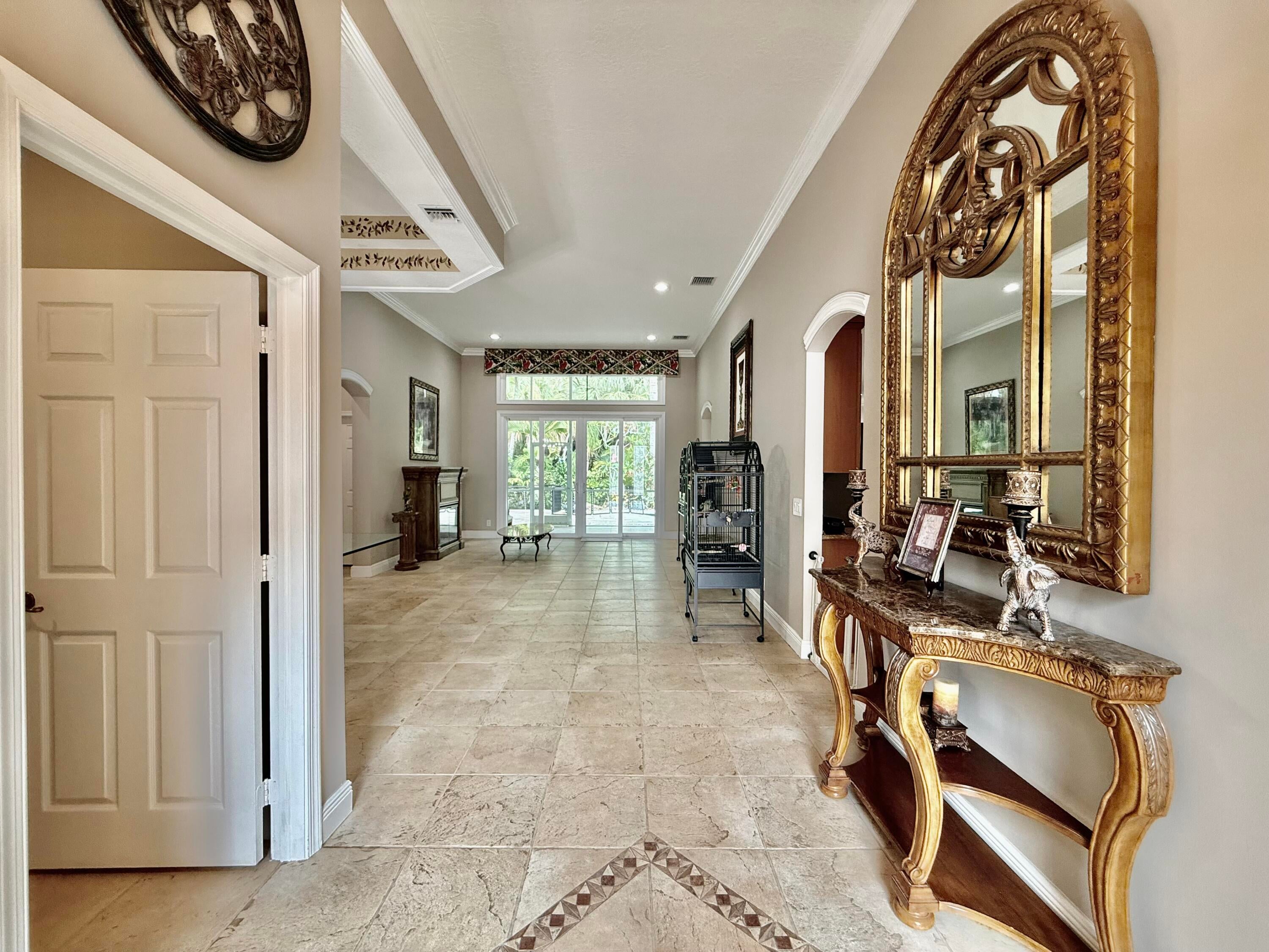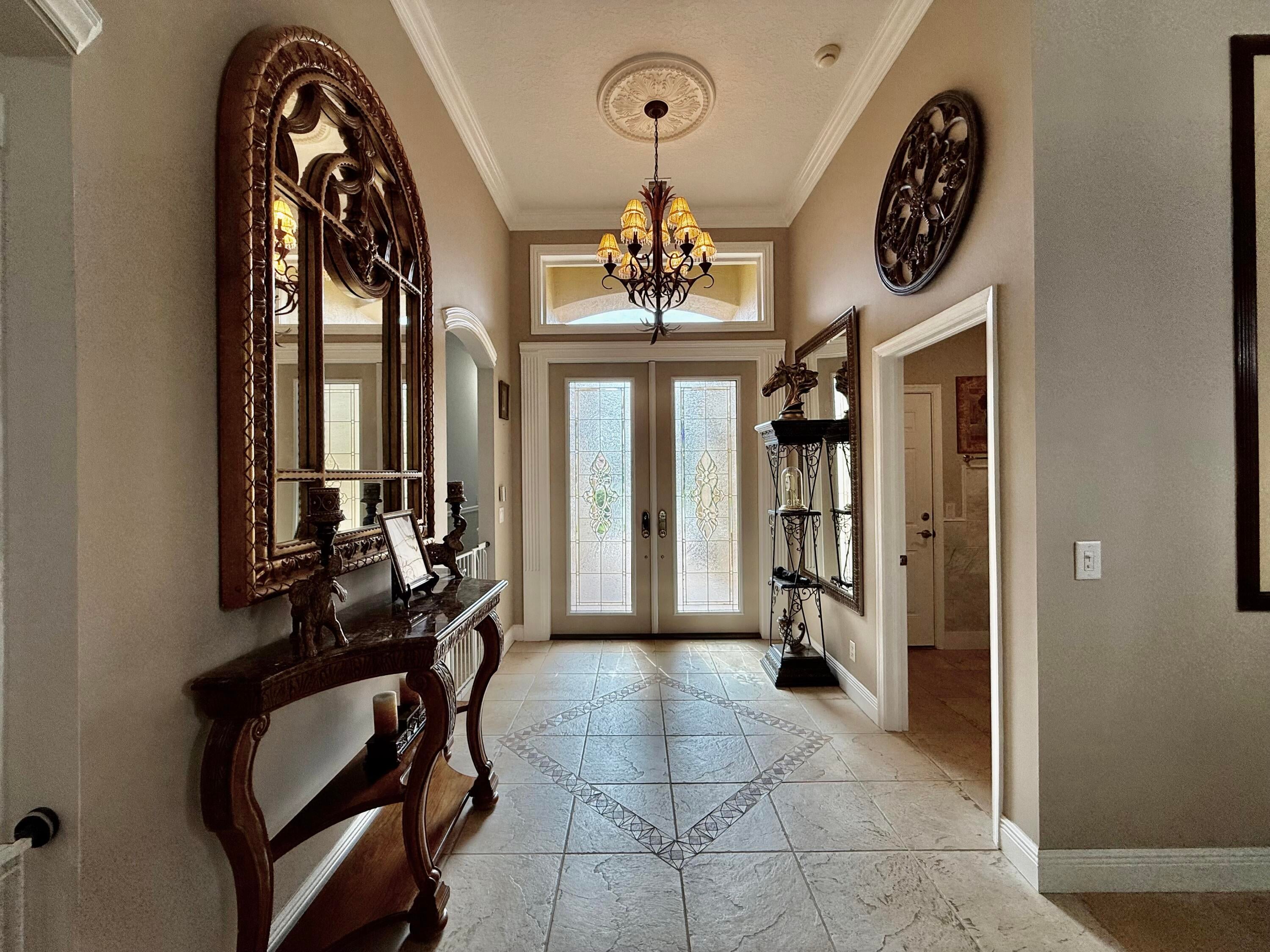 Former Model Pool Home with Preserve Views!Experience luxury living in this exquisite residence on an oversized lot. A grand double-door entry opens to elegant porcelain tile floors, crown molding, and a gourmet kitchen with granite counters, marble backsplash, an oversized island, and stainless steel appliances. The open plan flows seamlessly through formal and casual spaces, all showcasing serene backyard views. The lavish primary suite offers tray ceilings, walk-in closets, and a spa-inspired bath with Jacuzzi tub and separate shower. Step outside to your private tropical retreat with a sparkling freeform pool, lush landscaping, and accent lighting. Community amenities include 24/7 gated security, lawn care, clubhouse, fitness center, Olympic pool, spa, tennis, and much more.