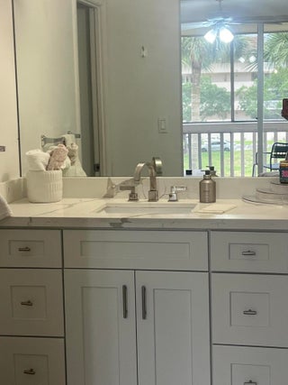Stunning 2BR/2BA condo, 972 sq ft, 2nd fl w/ direct lake view in gated devolpment w/ 3 pools, gym, security, lush greens. HOA: cable/internet/water/trash. Remodeled kit/baths: onyx counters, SS appliances. Lg master w/walk in closet. assigned parking space included.