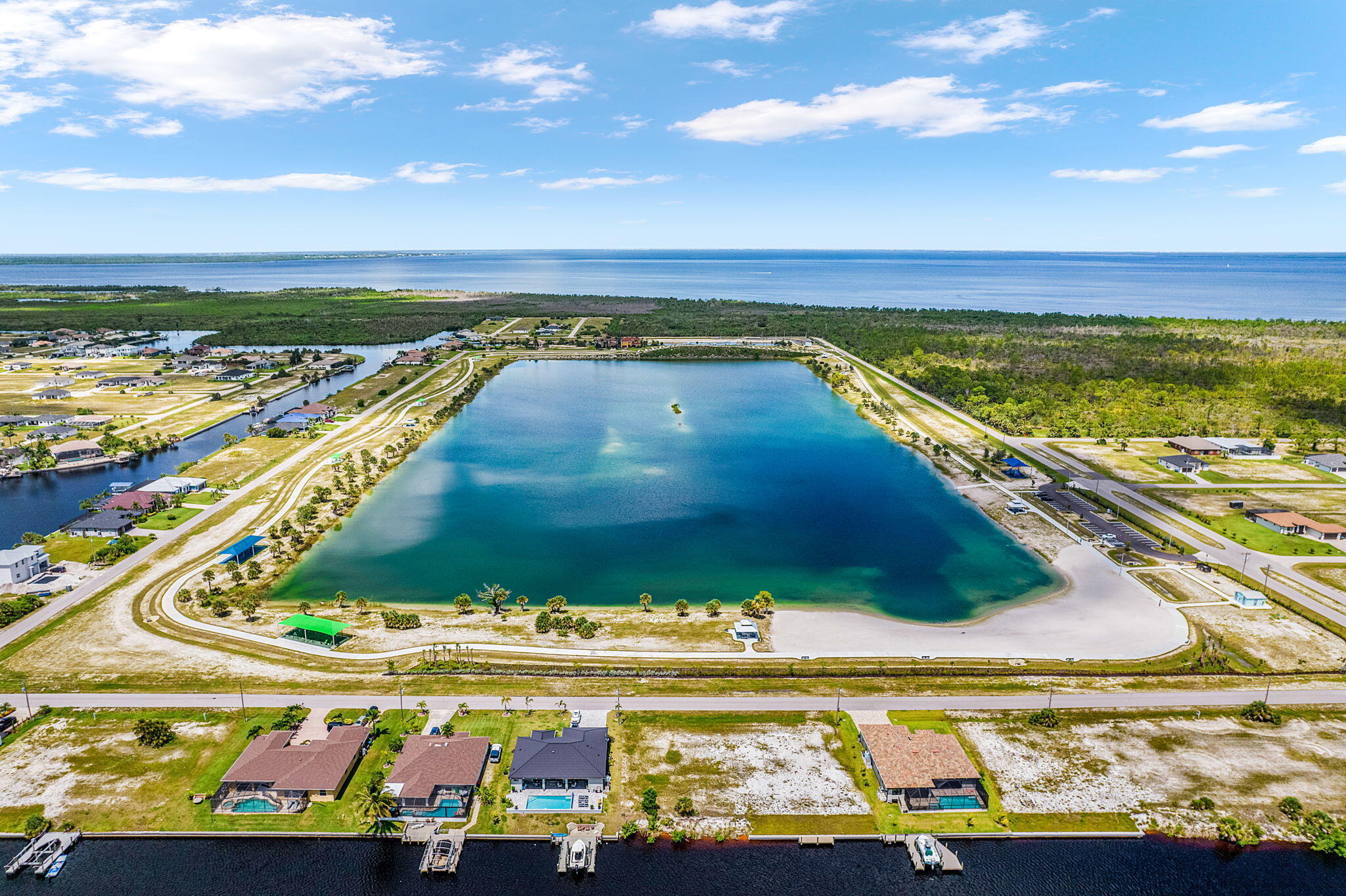 NEW CONSTRUCTION one-of-a-kind custom-designed home, not a builder's model. Featuring 3 bedrooms, 3 bathrooms, and a versatile den or office that can be used as a permitted fourth bedroom. The home overlooks a 260-foot-wide south-facing canal with no bridges to the Gulf. Dock with 2 slips. Inside, the home offers 2,653 square feet of open-concept living with 14ft. soaring ceilings and 10-foot impact sliders that lead to a nearly 800 square foot covered lanai. The outdoor space includes a summer kitchen, bar, and a large fully automated saltwater pool with custom spa and sun shelf, all controllable from your phone. The primary suite features a spa-inspired bath with dual vanities, seven-foot LED backlit mirrors, a soaking tub, and a double-entry his and her shower.Throughout the home you'll find 24 by 48 polished porcelain tiles, a modern fireplace, and a custom tile and wood accent wall. The kitchen includes espresso cabinetry, a ten-foot island, and top-of-the-line Bosch appliances. Every detail has been thoughtfully considered in this exceptiona