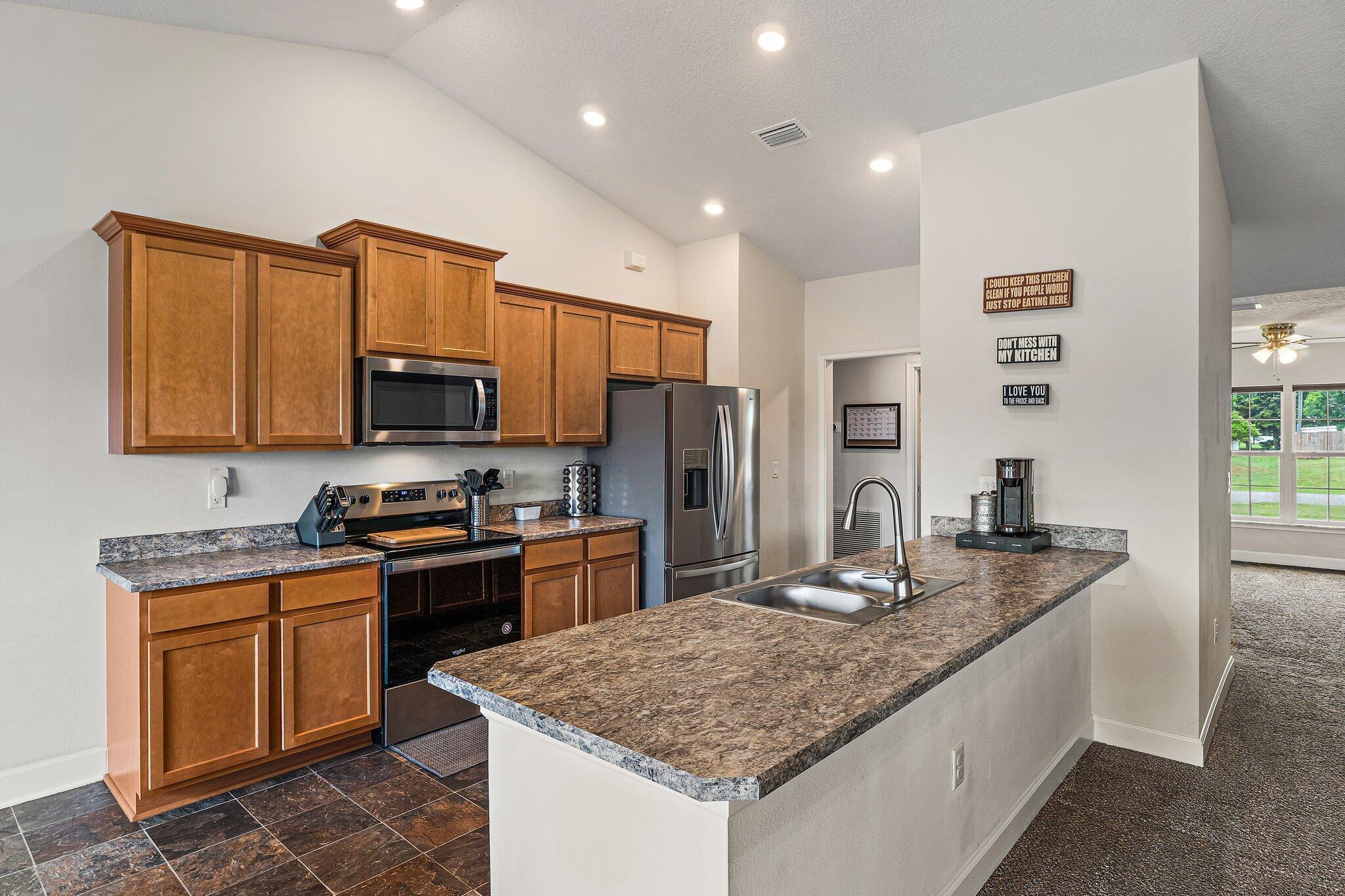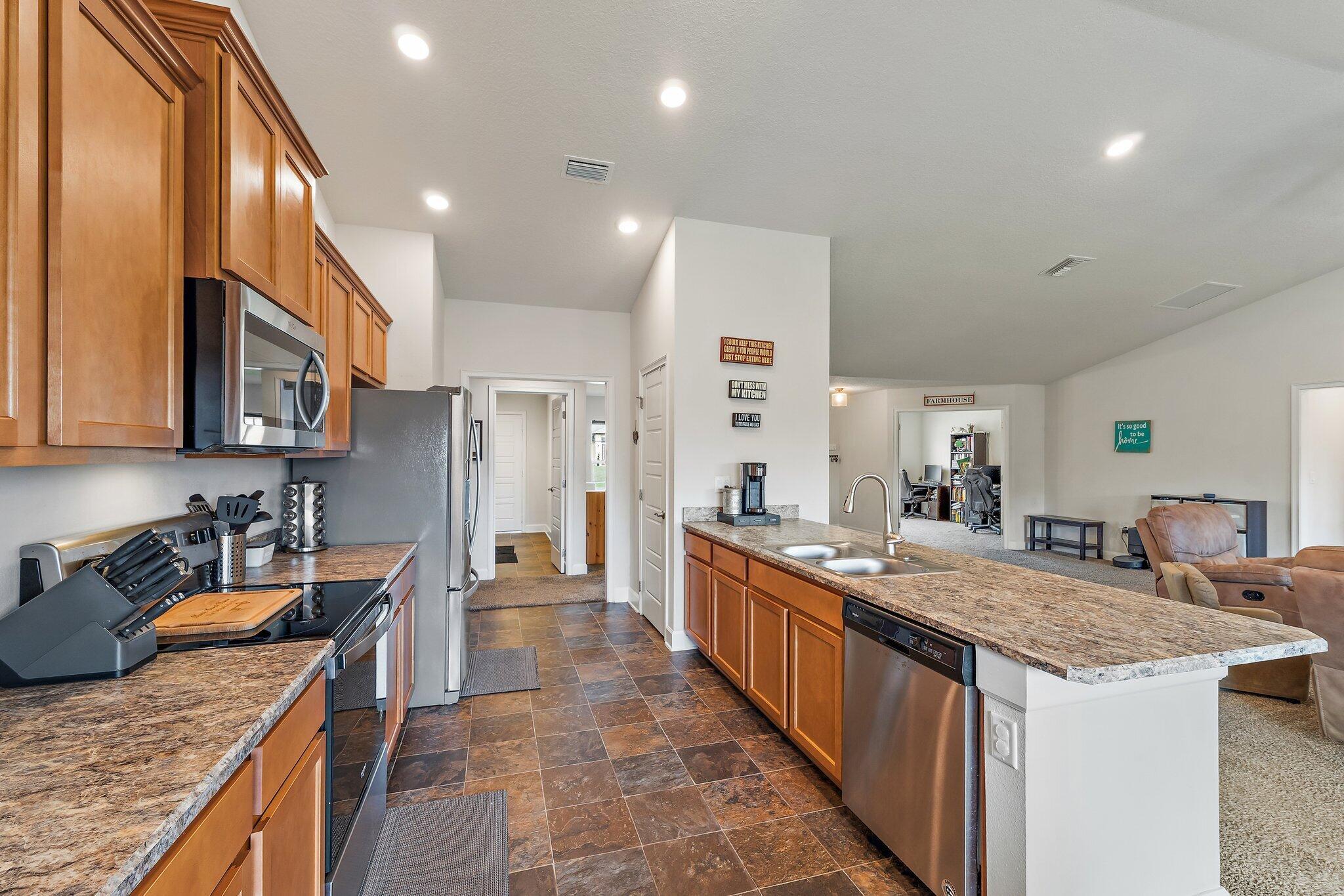 Opportunity awaits with this 2020 newer constructed CBS built home offering over 2,500 sq. ft, 4 bedroom plus office/den, 2 bathroom layout. Inside, the open concept design is filled with natural light featuring a spacious kitchen ideal for gatherings and entertaining. The split floor plan ensures privacy, making it perfect for families or guests. Step outside to your own private oversized fenced-in yard with ample room for a pool, complemented by a large back patio designed for extra entertaining space. With no HOA, you'll enjoy complete flexibility to make this property your own. Tucked away within a quiet family neighborhood yet just minutes from shopping, dining, schools, and major highways.